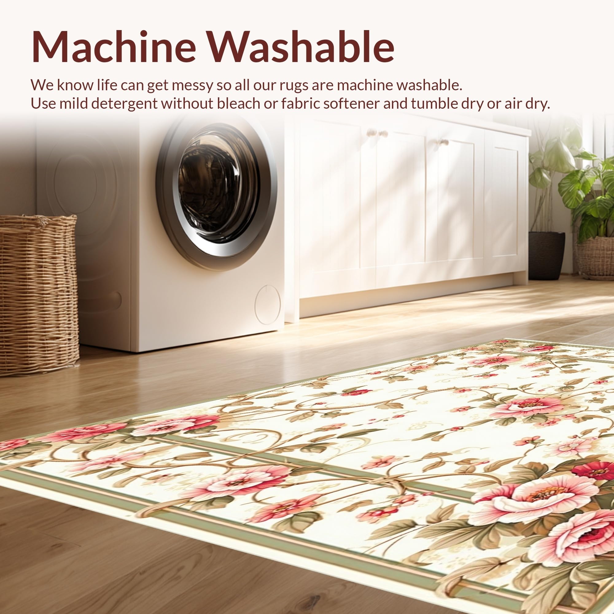 - Machine Washable: Our rugs can be easily thrown in the wash machine.