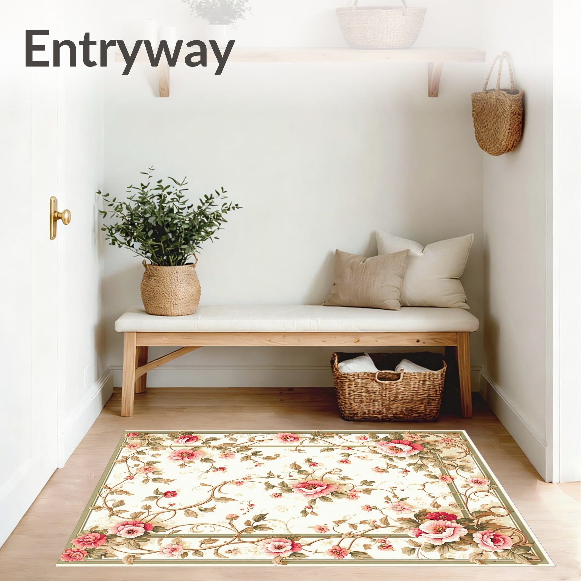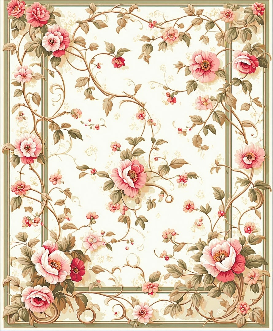 Vintage Floral Boho Pink Green Botanical Motifs Non Slip(Beige)