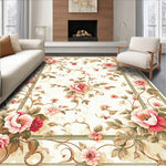 Flatwoven High Traffic Area Rug, Vintage Floral Boho Pink Green Botanical Motifs Non Slip, Non Slip, Stain Resistant, Washable Area Rugs for Living Room, Bedroom (Beige) Overview: