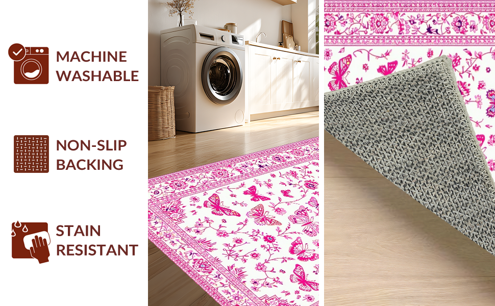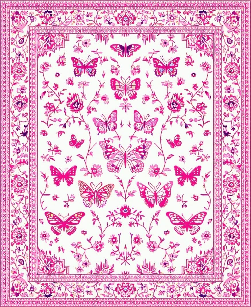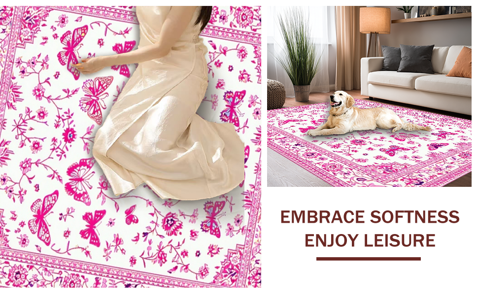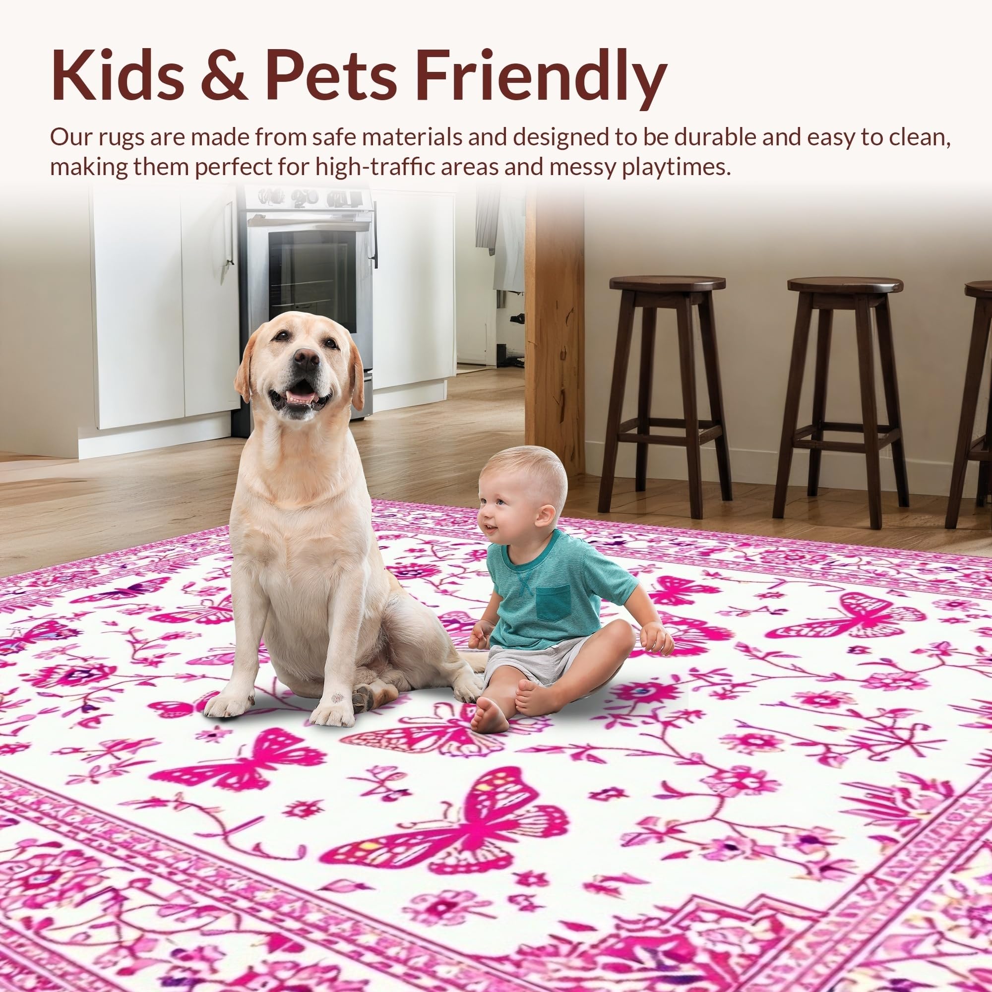 Ultra Soft Area Rug, Non Slip, Stain Resistant, Washable Area Rugs for Living Room, Bedroom, Vintage Floral Butterfly Medley(White) Overview: