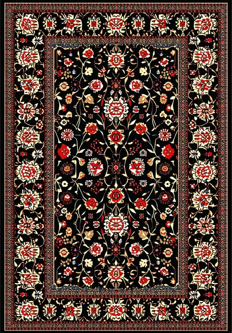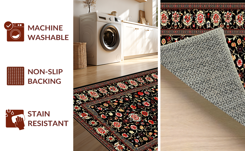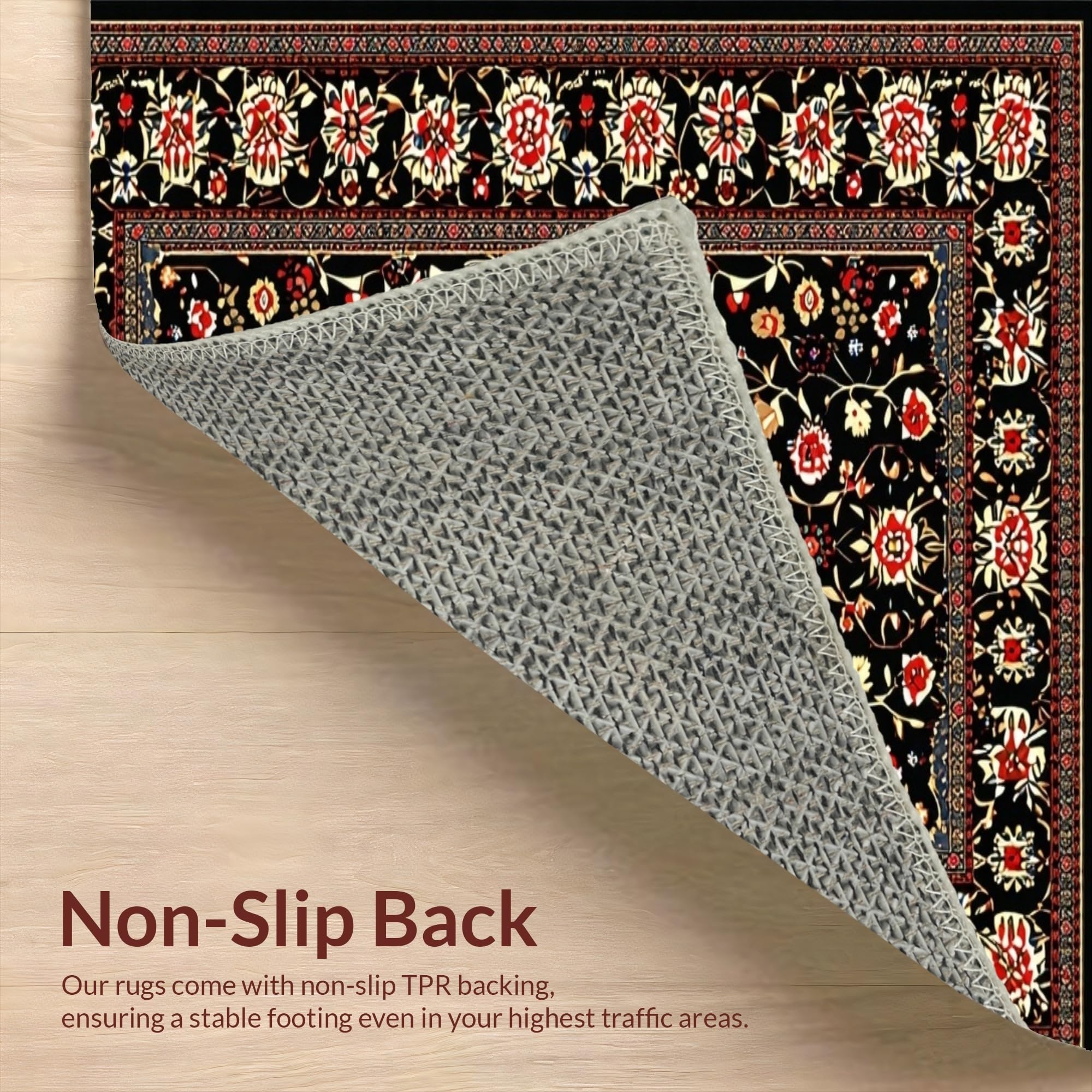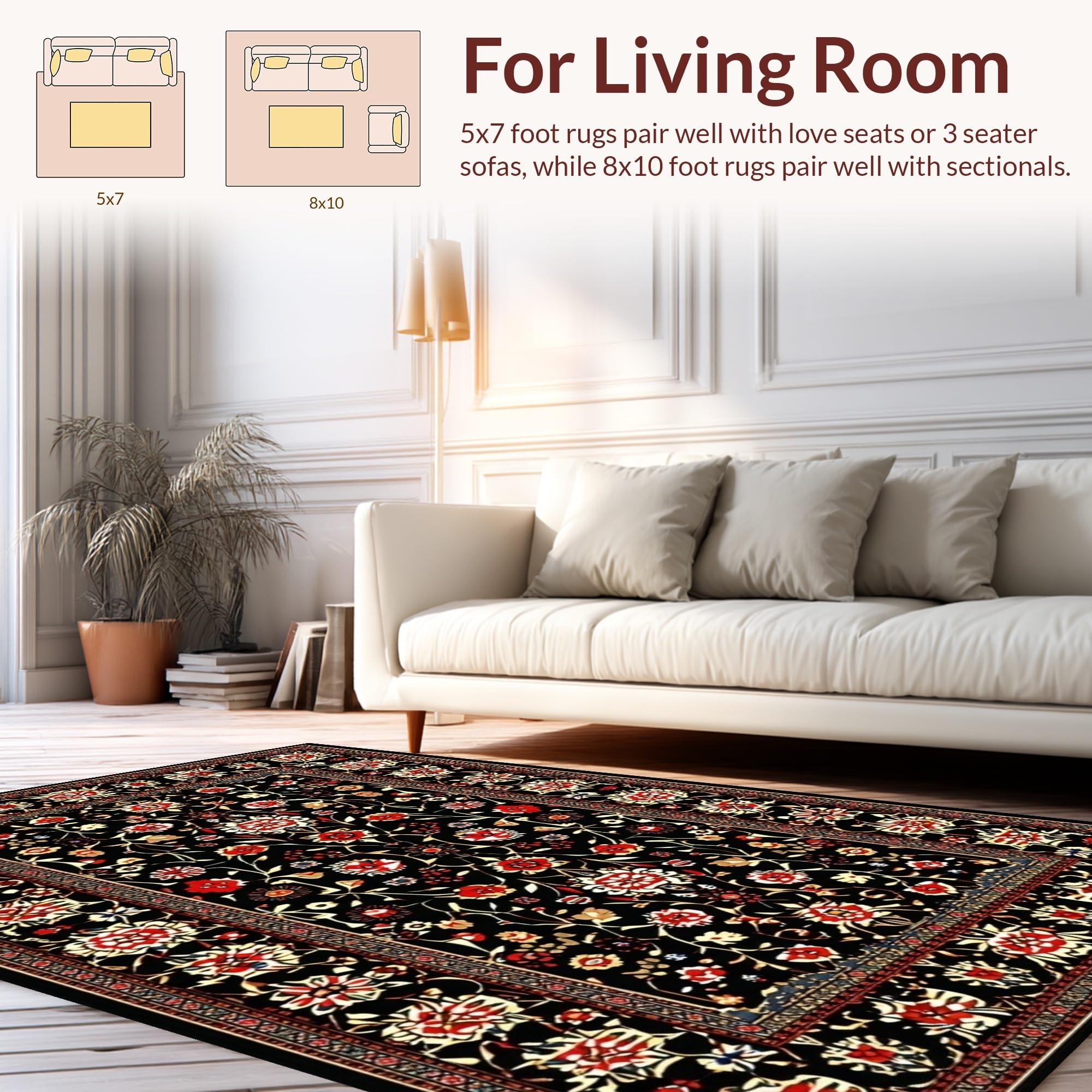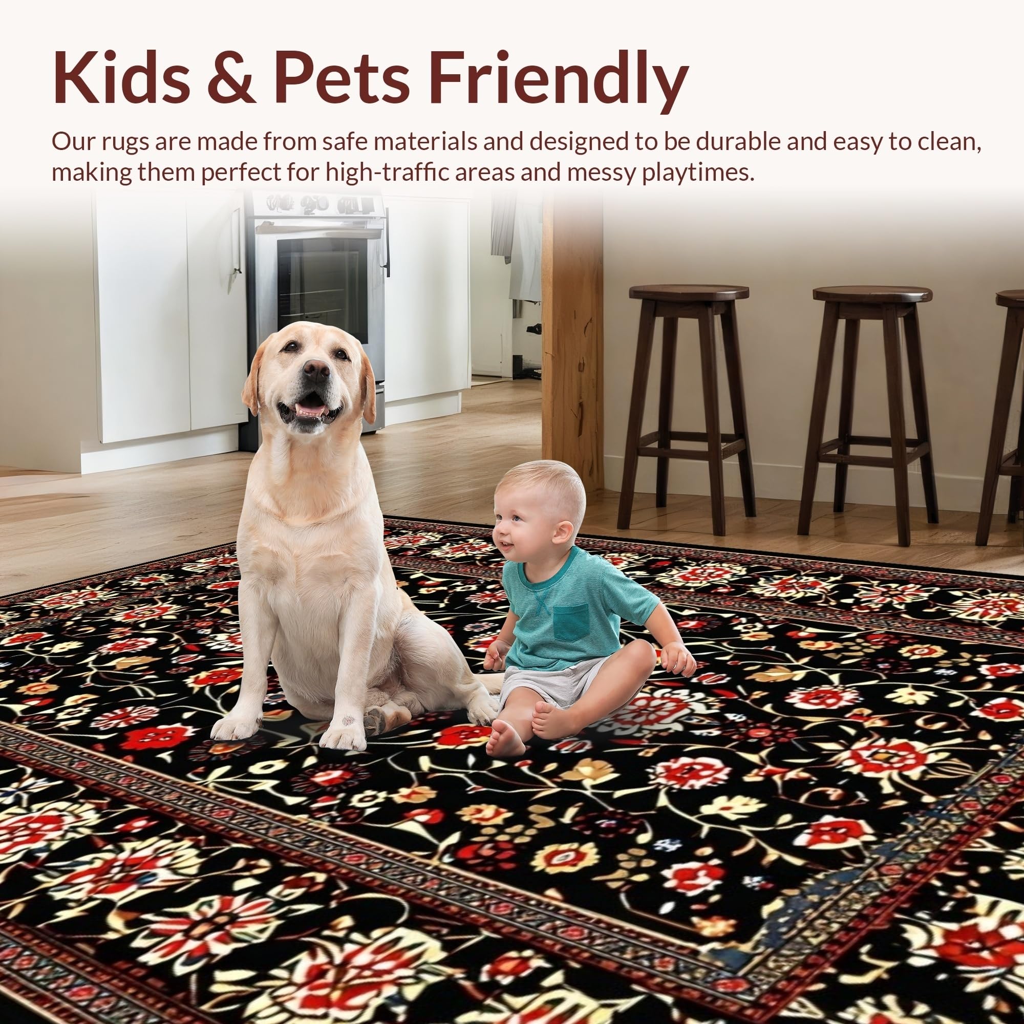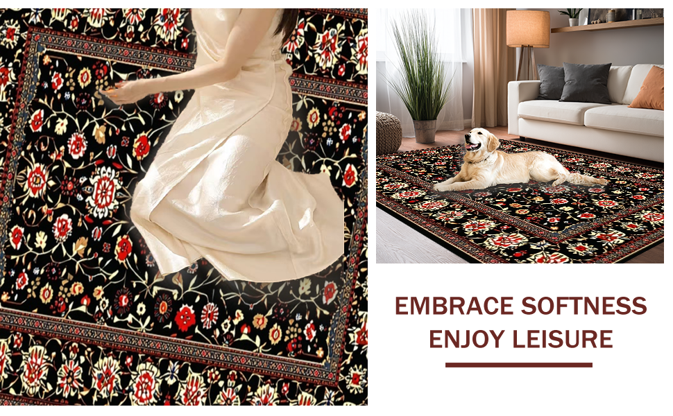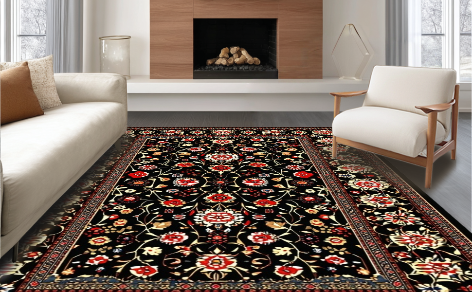 Ultra Soft Area Rug, Non Slip, Stain Resistant, Washable Area Rugs for Living Room, Bedroom, Vintage Floral Elegance in Black(Black) Overview: