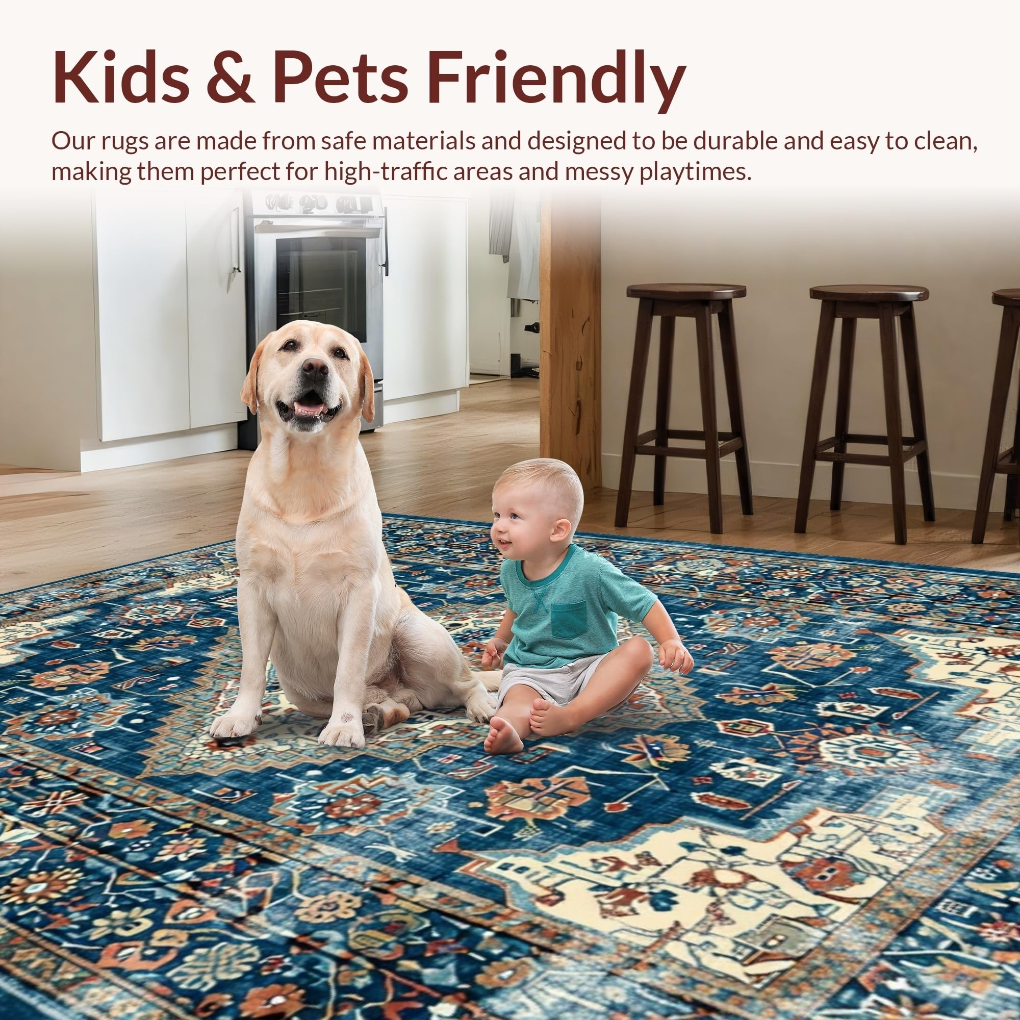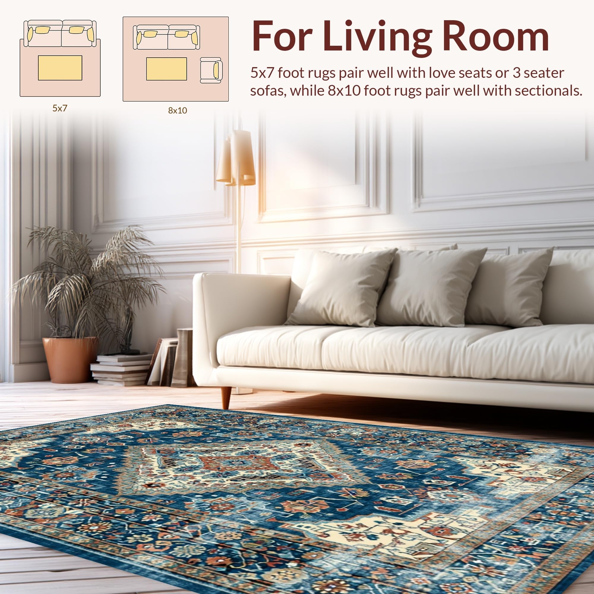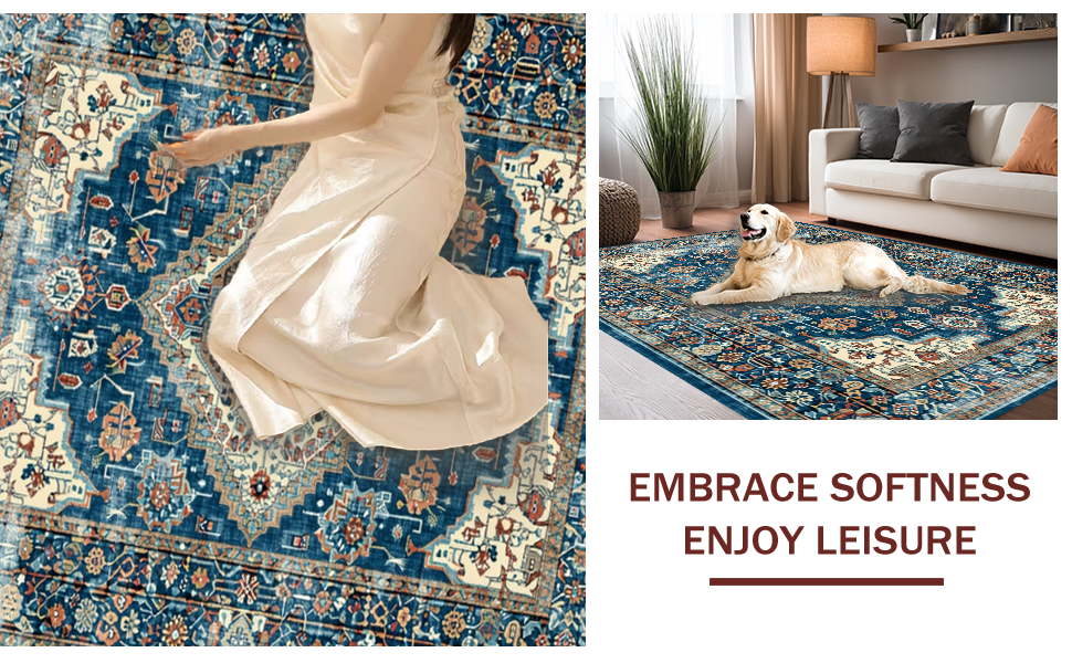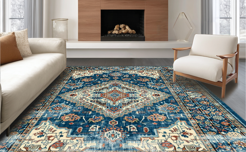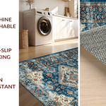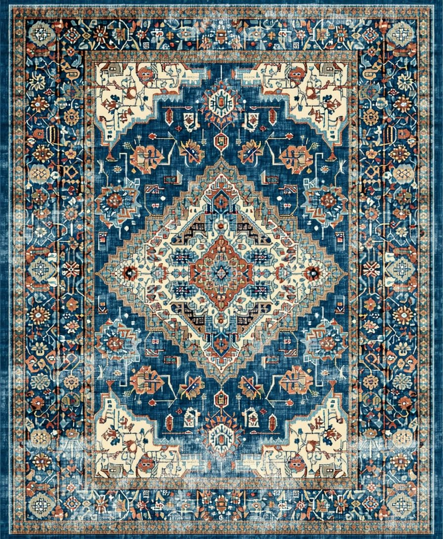 Ultra Soft Area Rug, Non Slip, Stain Resistant, Washable Area Rugs for Living Room, Bedroom, Vintage Floral Elegance in Blue(Blue) Overview: