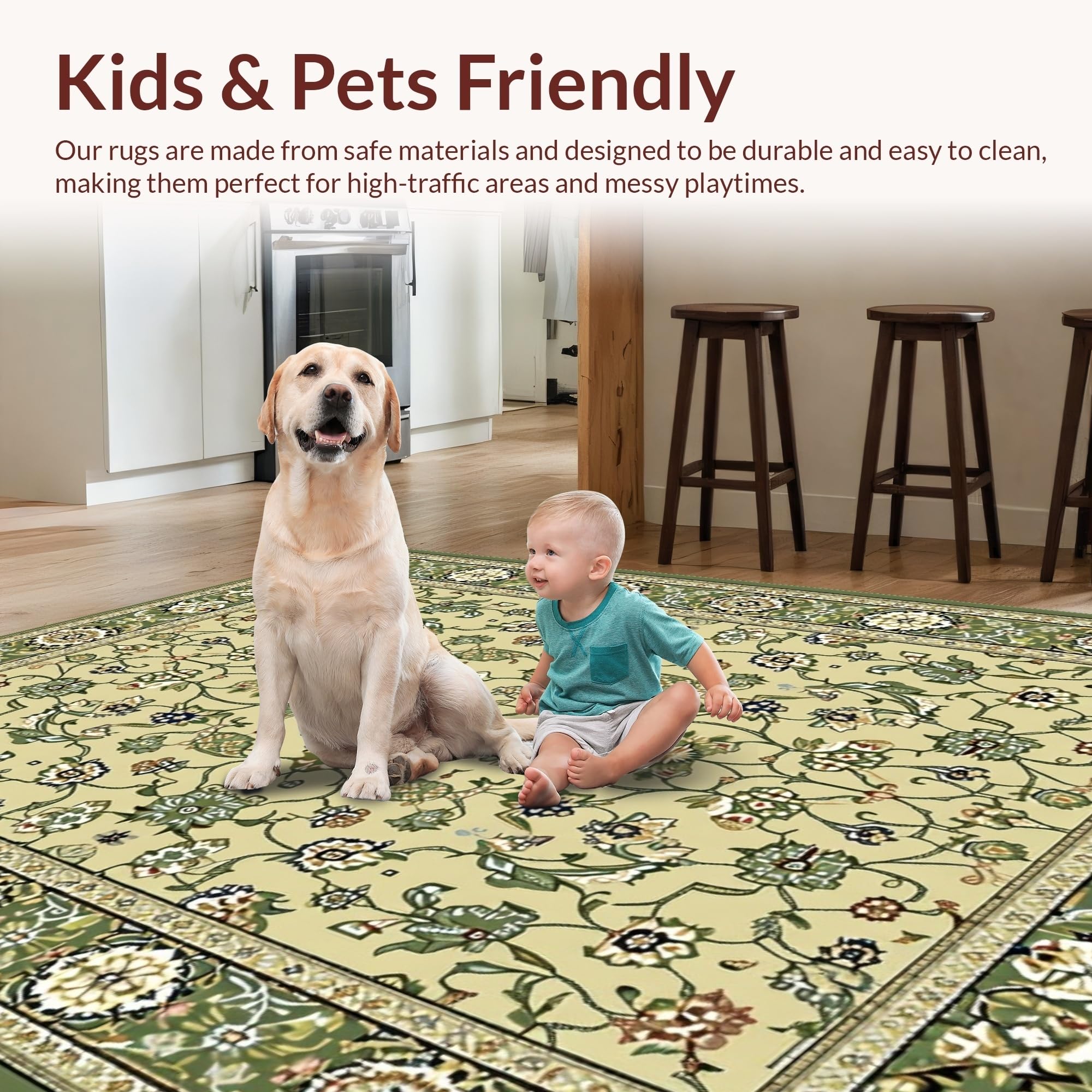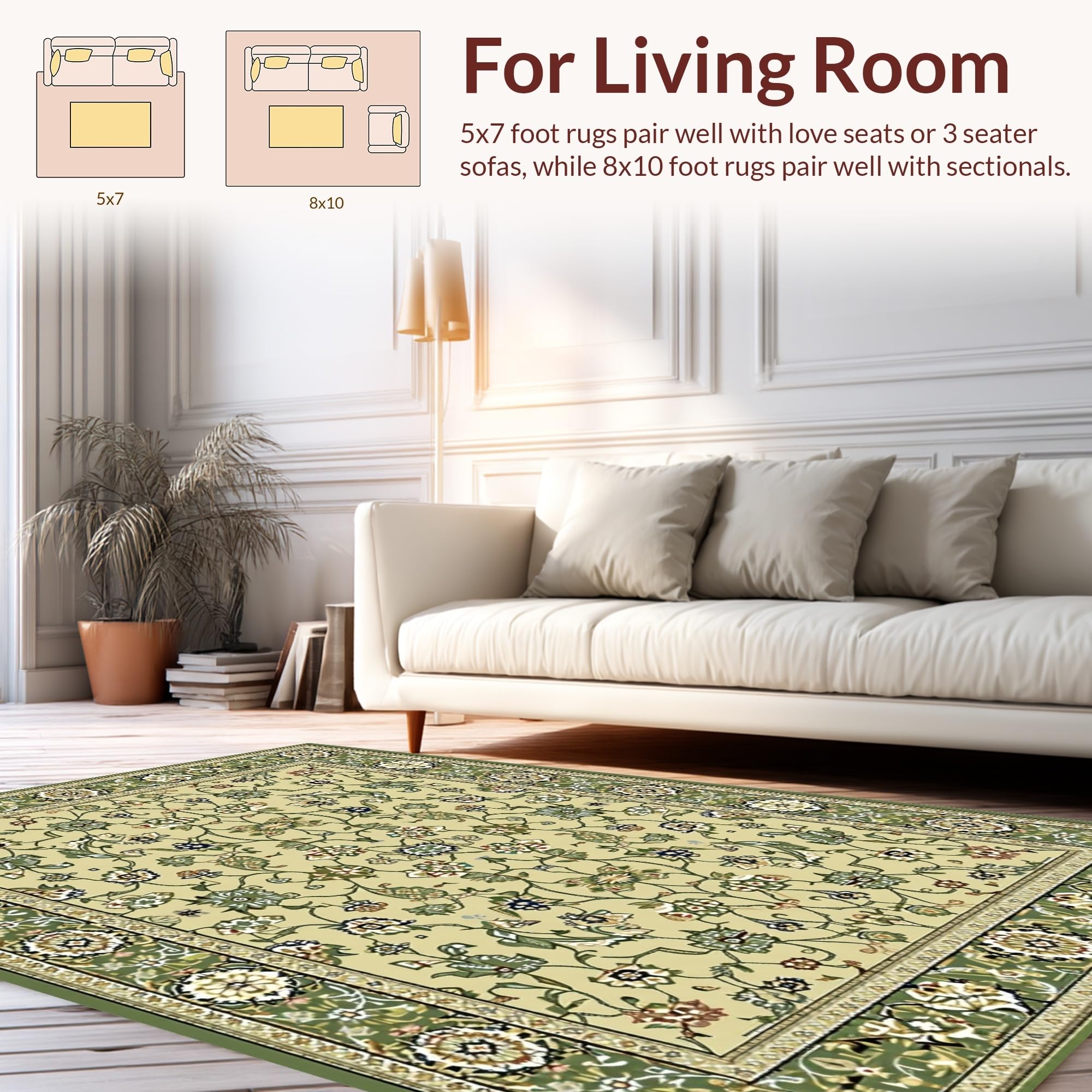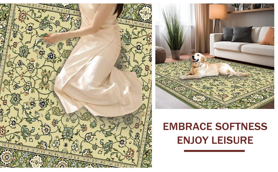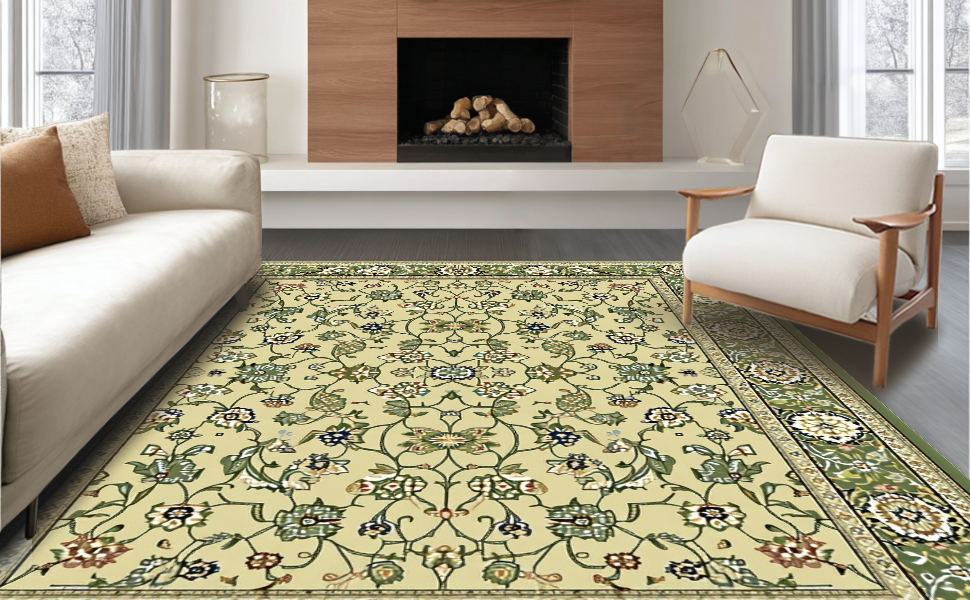 Ultra Soft Area Rug, Non Slip, Stain Resistant, Washable Area Rugs for Living Room, Bedroom, Vintage Floral Elegance Palette(Beige) Overview: