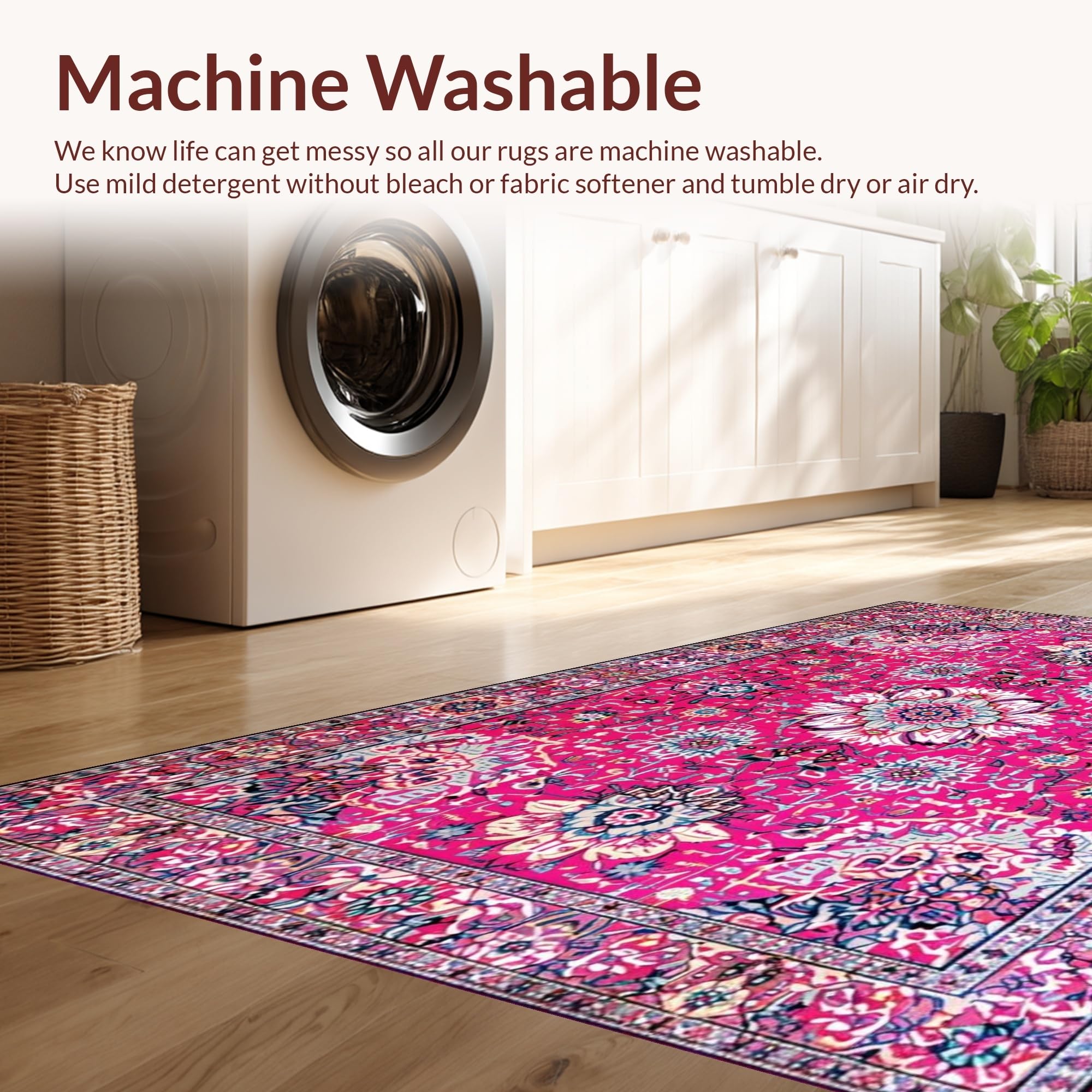 - Machine Washable: Our rugs can be easily thrown in the wash machine.