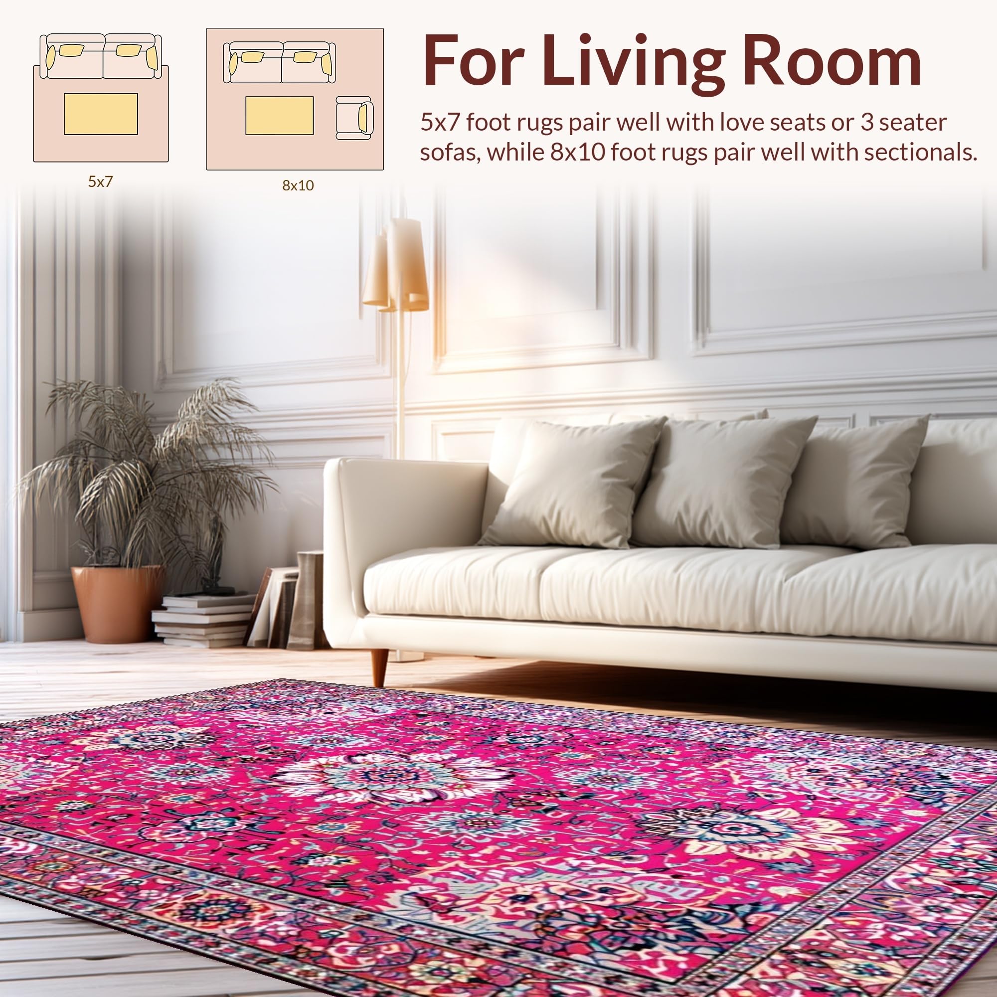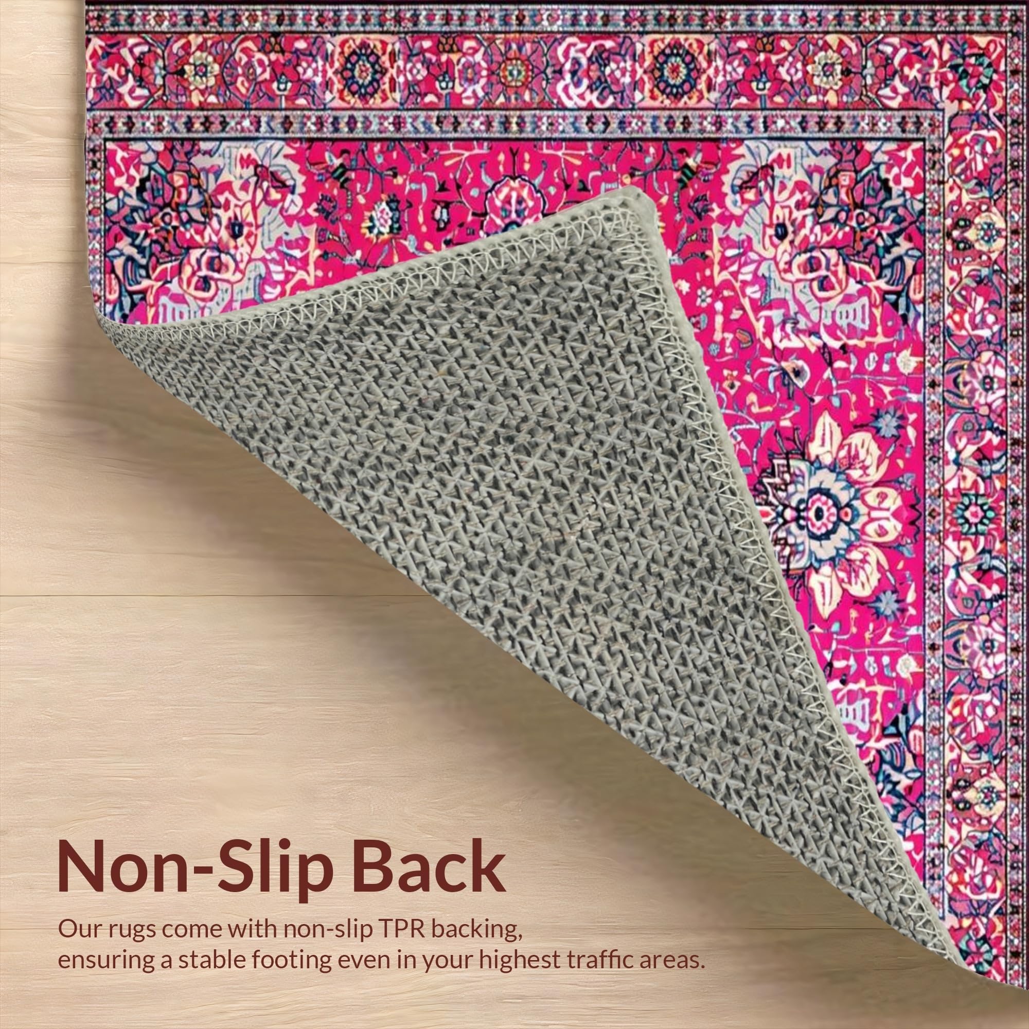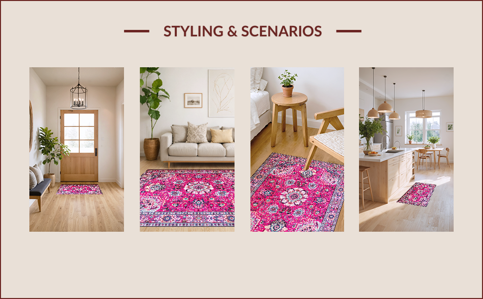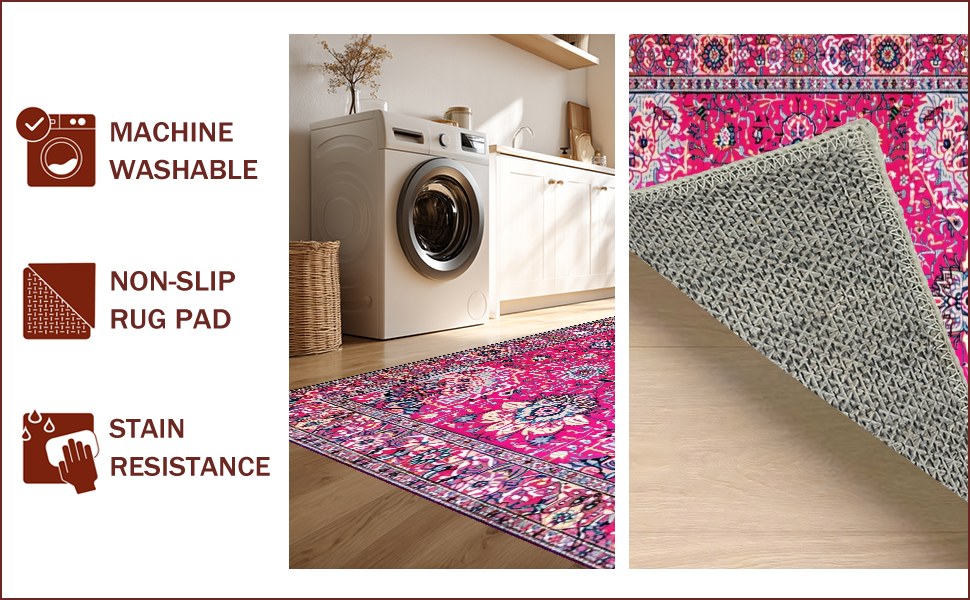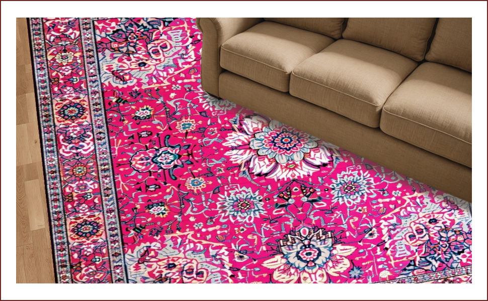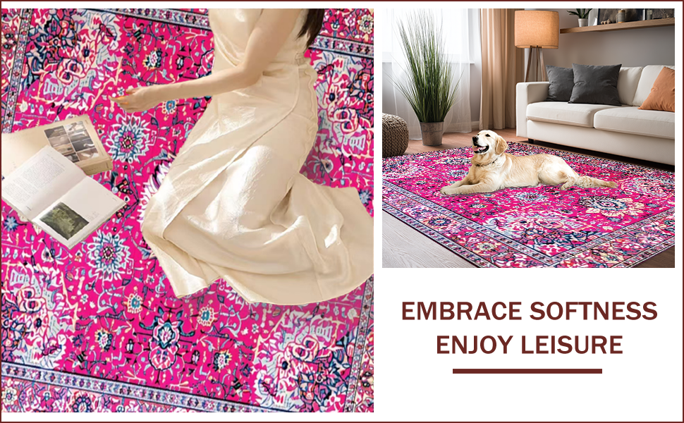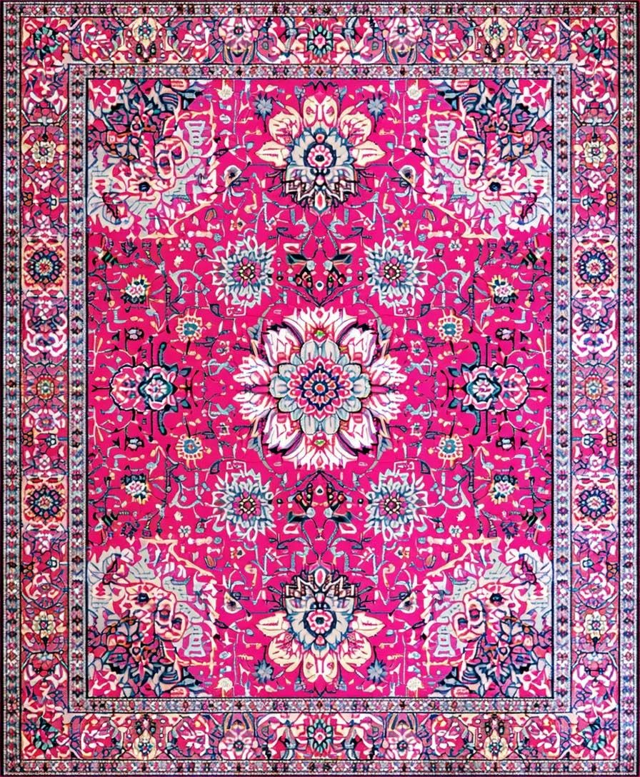Ultra Soft Area Rug, Non Slip, Stain Resistant, Washable Area Rugs for Living Room, Bedroom, Vintage Floral Elegance Statement(Pink) Overview: