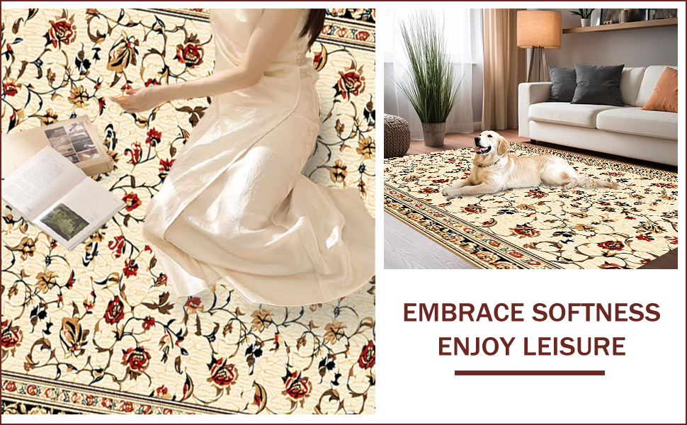 Ultra Soft Area Rug, Non Slip, Stain Resistant, Washable Area Rugs for Living Room, Bedroom, Vintage Floral Light Brown Living Room Rug(Beige) Overview: