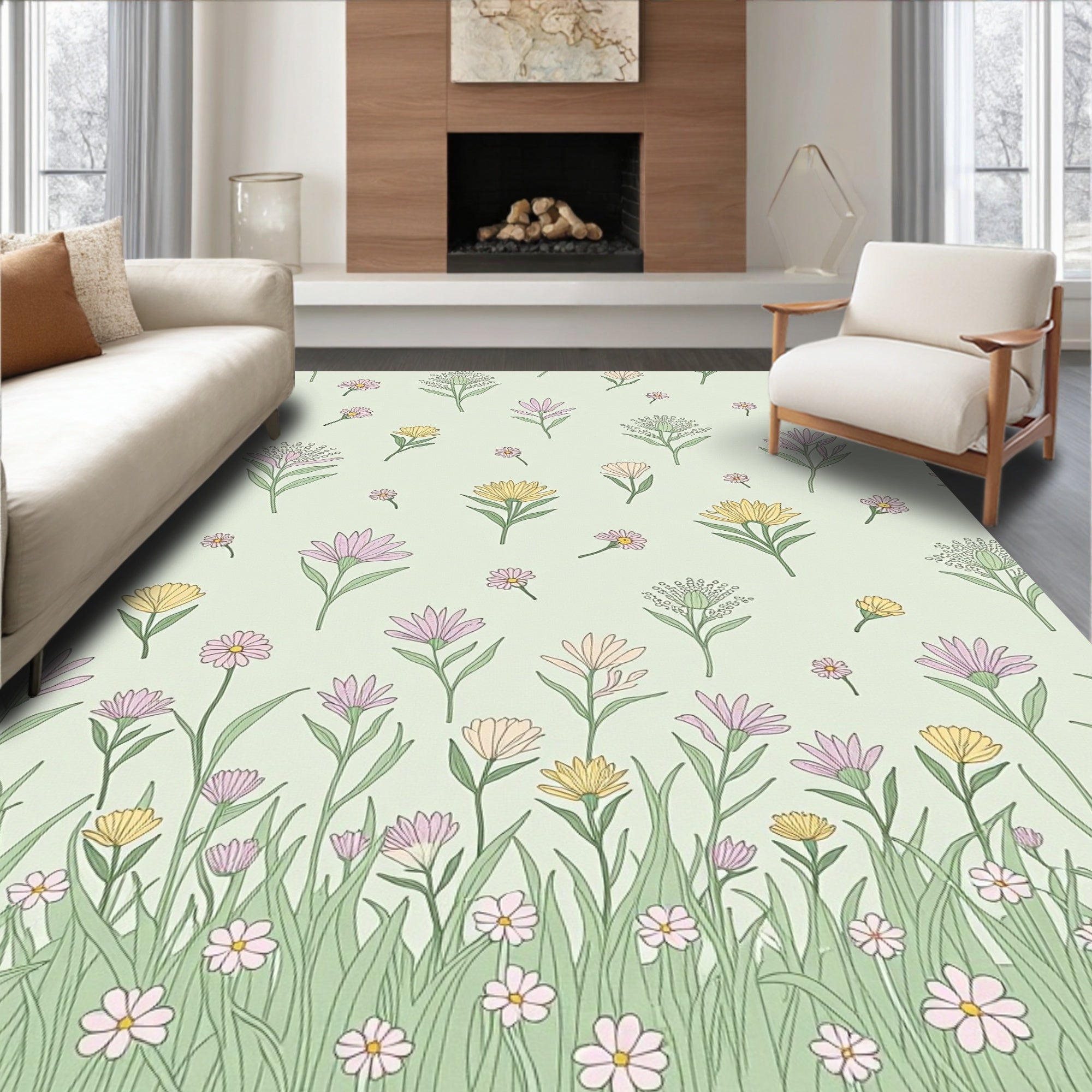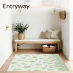 Flatwoven High Traffic Area Rug, Vintage Floral Meadow Tapestry Design, Non Slip, Stain Resistant, Washable Area Rugs for Living Room, Bedroom (Green) Overview: