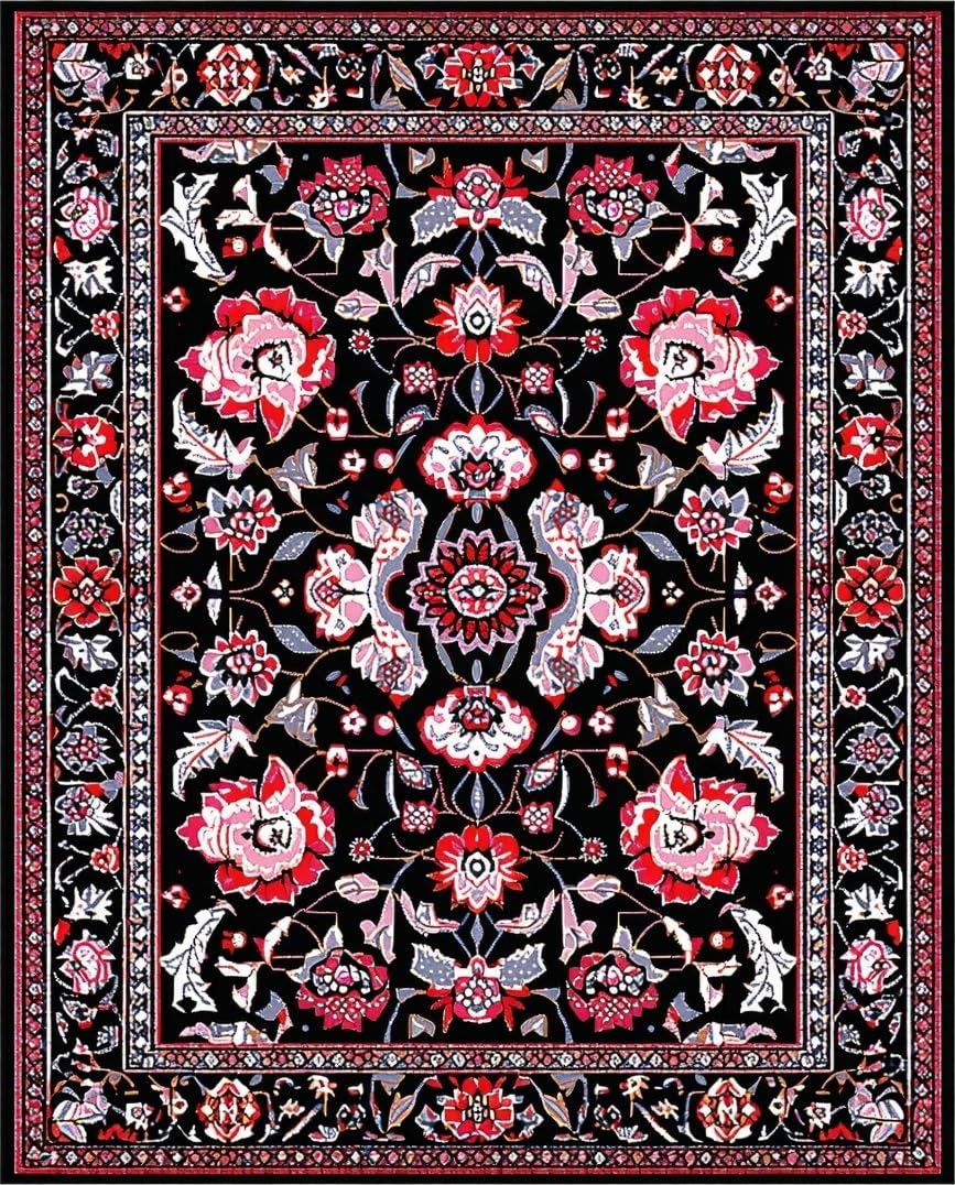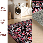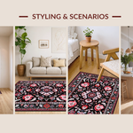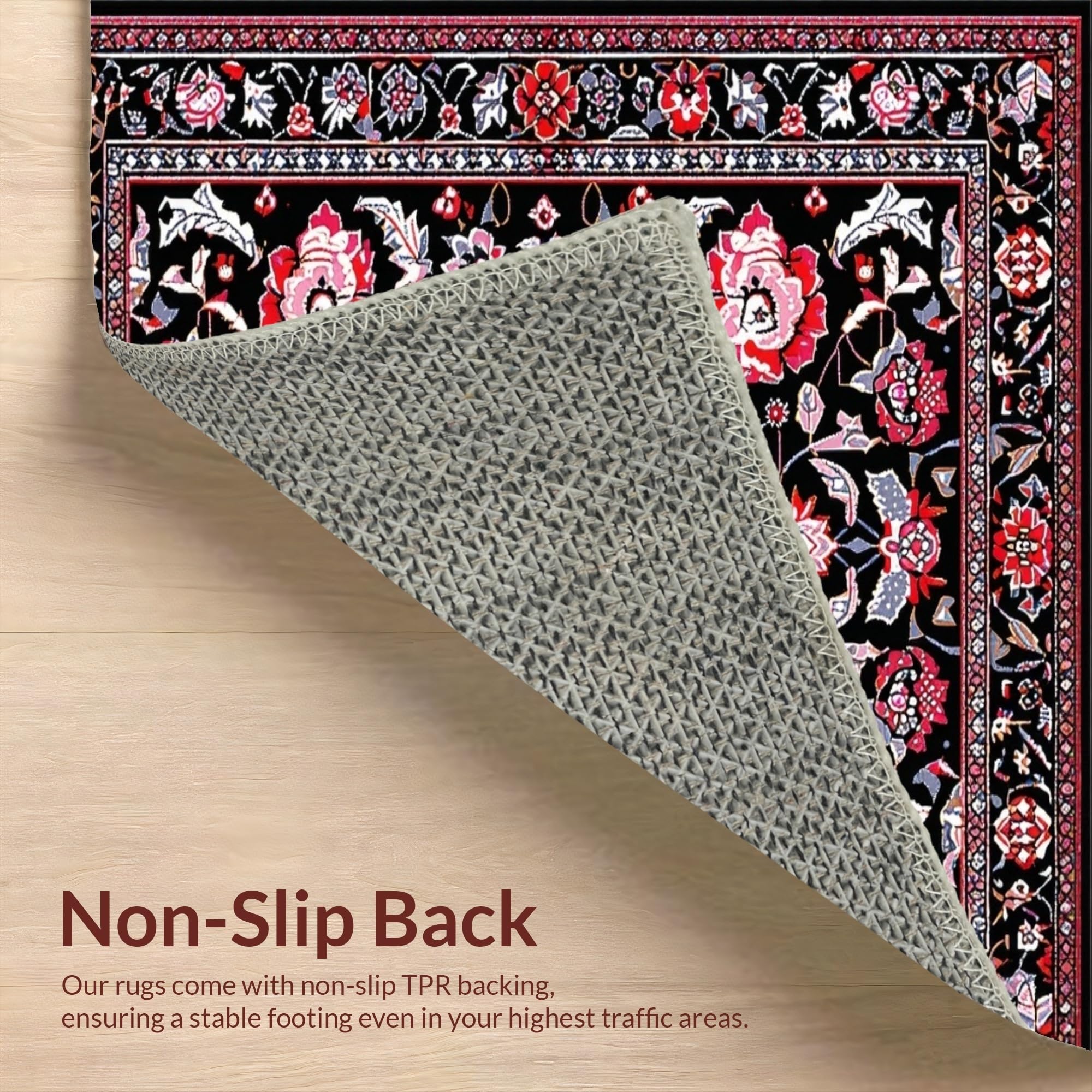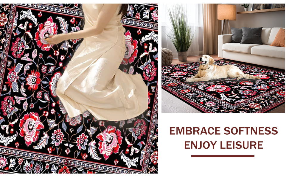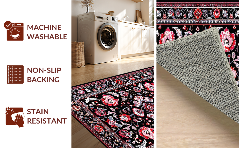 Ultra Soft Area Rug, Non Slip, Stain Resistant, Washable Area Rugs for Living Room, Bedroom, Vintage Floral Medallion Design(Black) Overview: