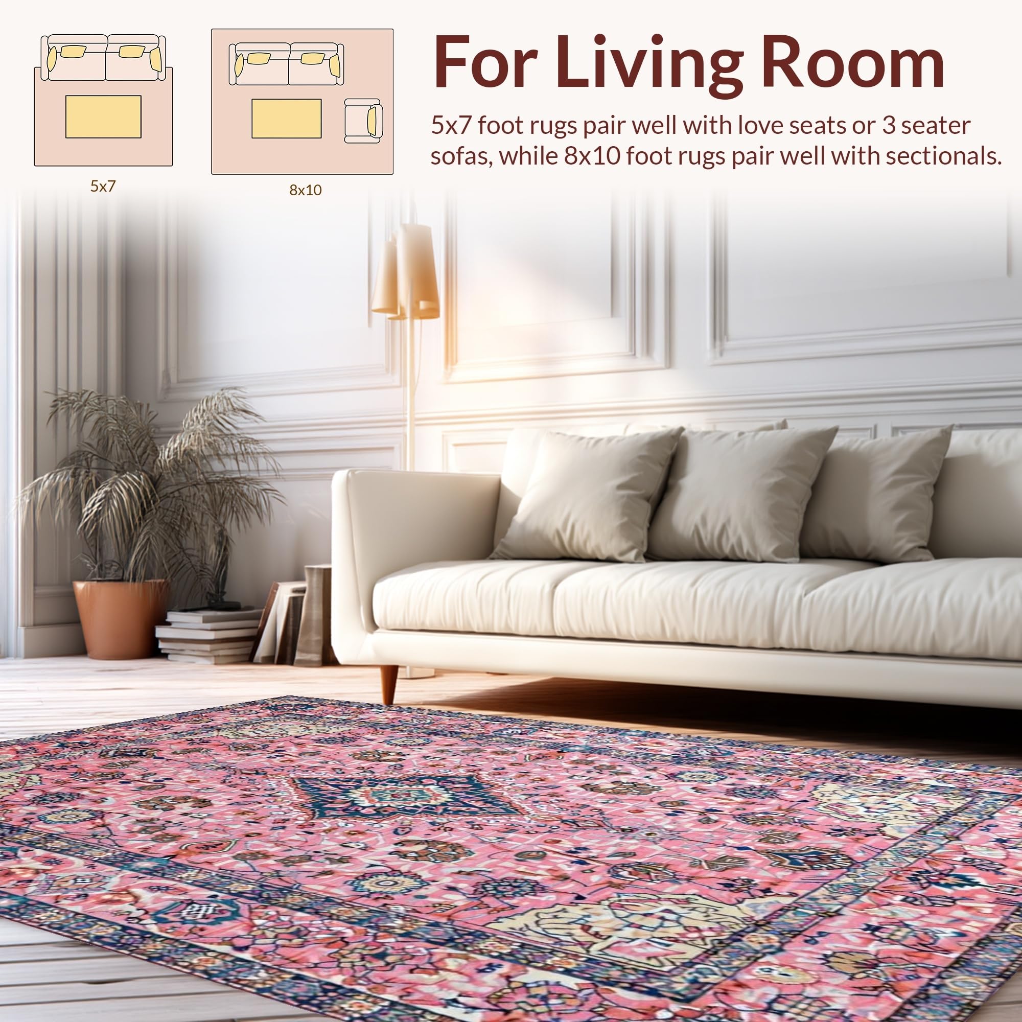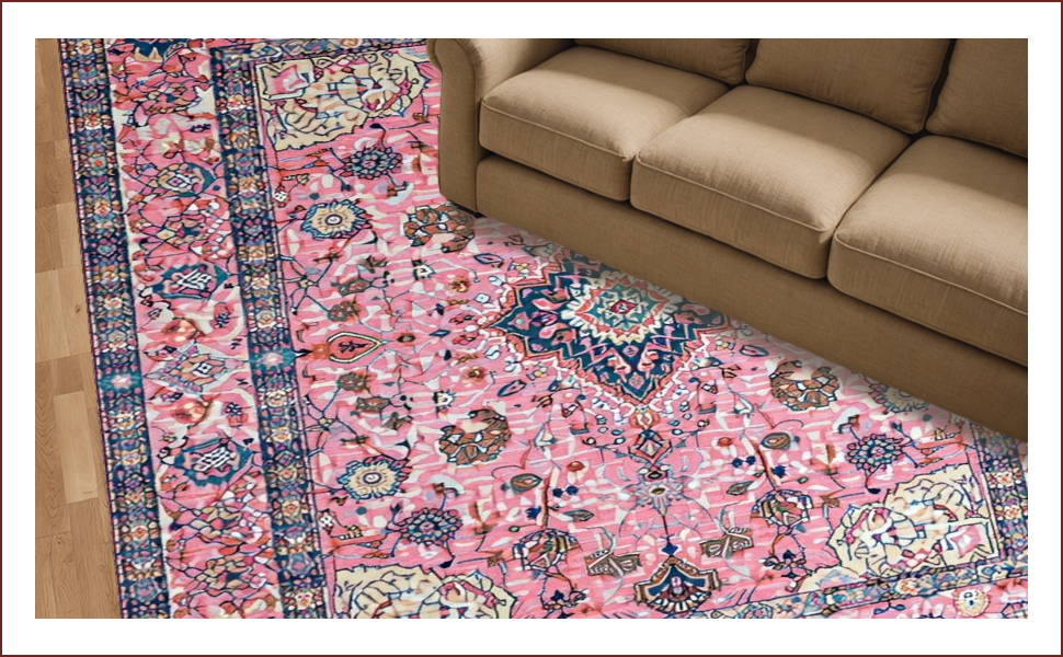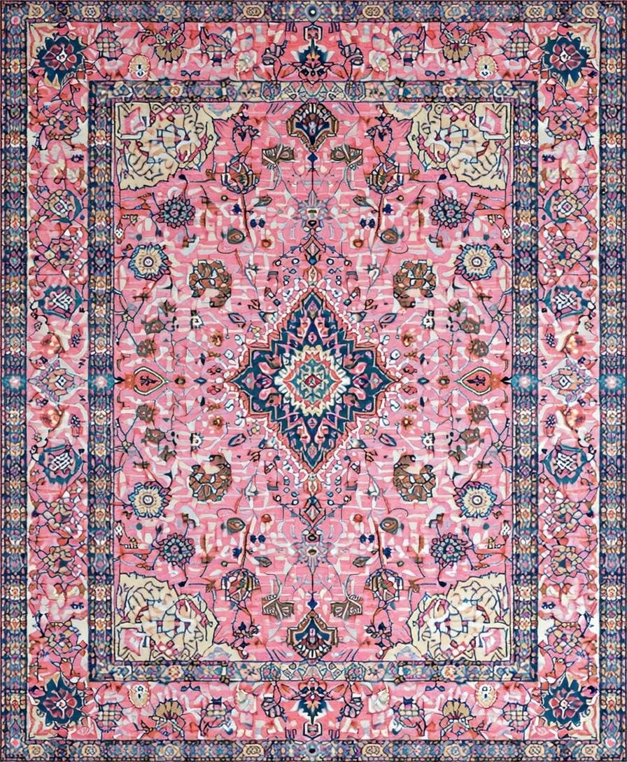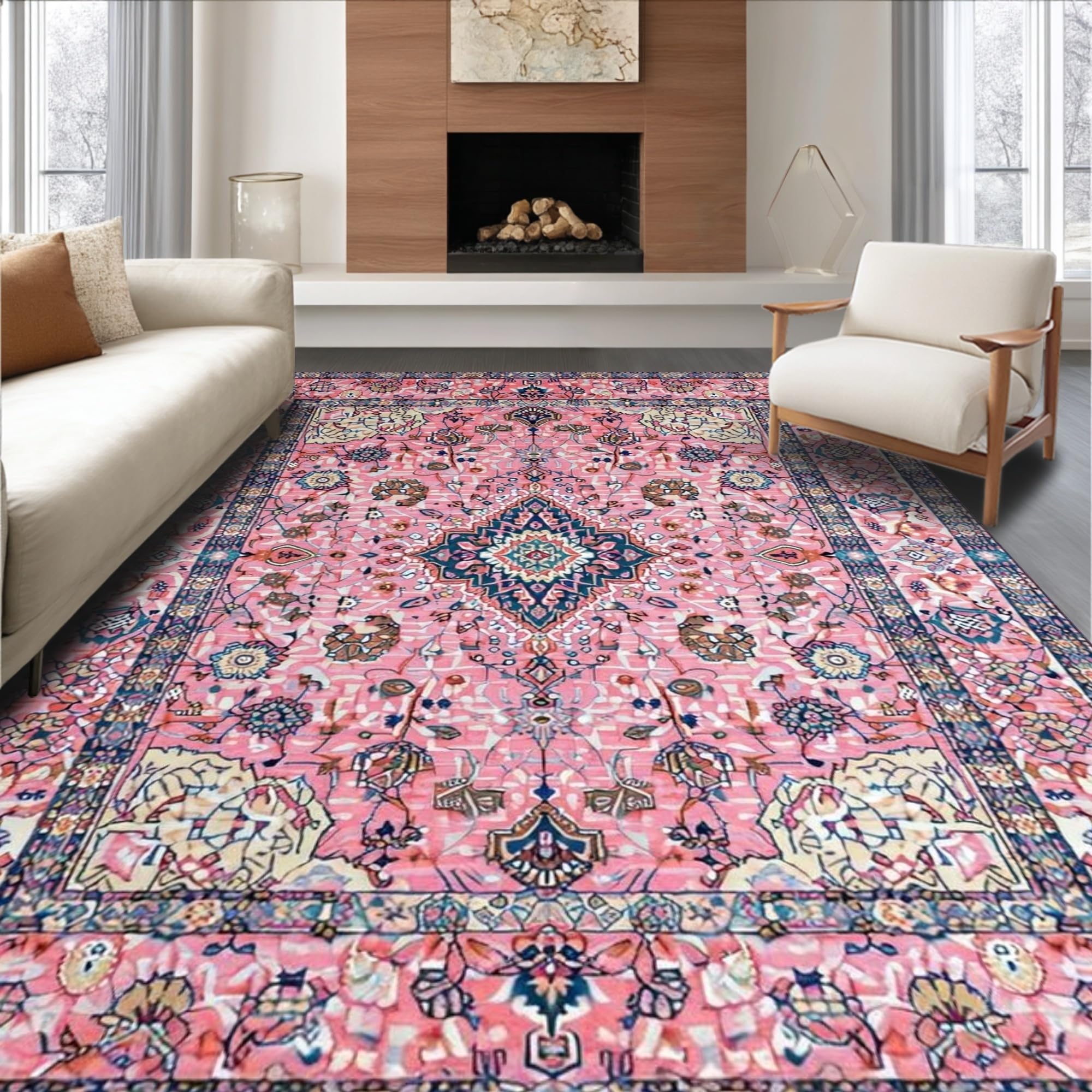 Ultra Soft Area Rug, Non Slip, Stain Resistant, Washable Area Rugs for Living Room, Bedroom, Vintage Floral Medallion Elegance(Pink) Overview: