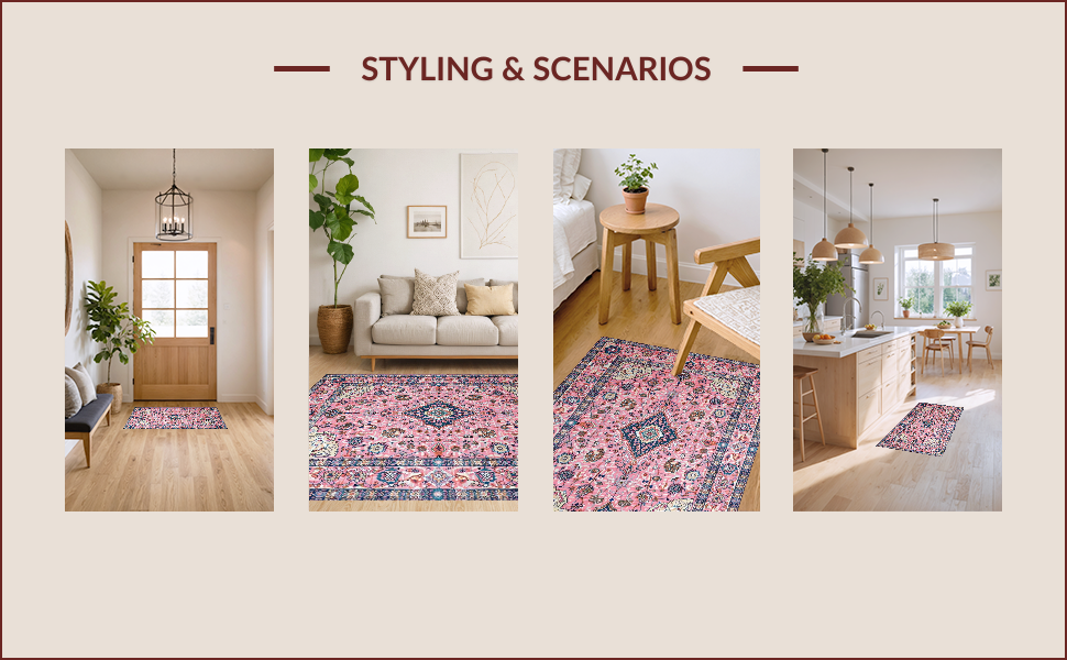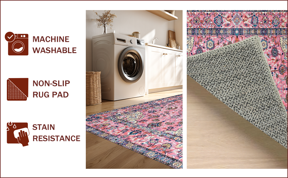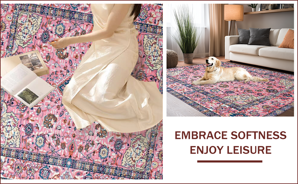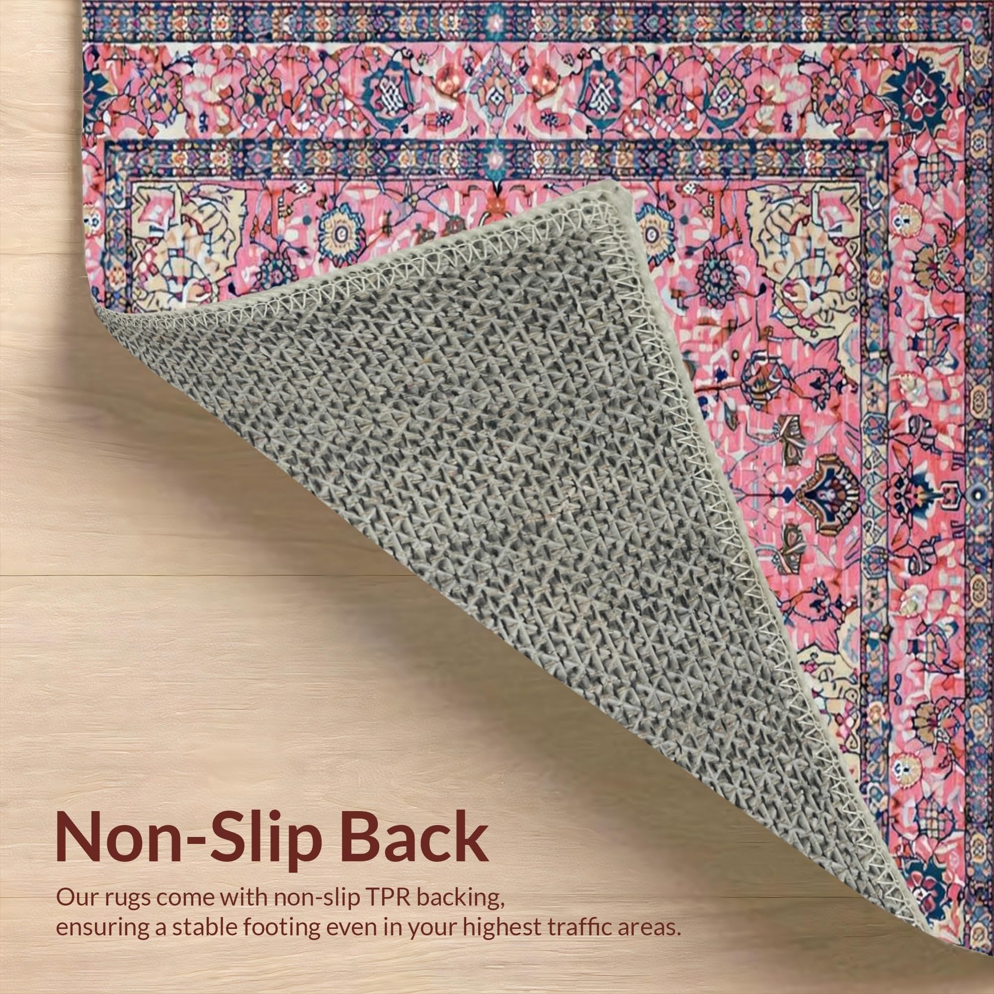 Ultra Soft Area Rug, Non Slip, Stain Resistant, Washable Area Rugs for Living Room, Bedroom, Vintage Floral Medallion Elegance(Pink) Overview:
