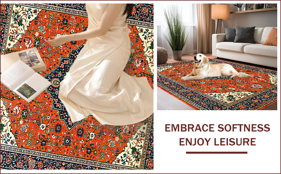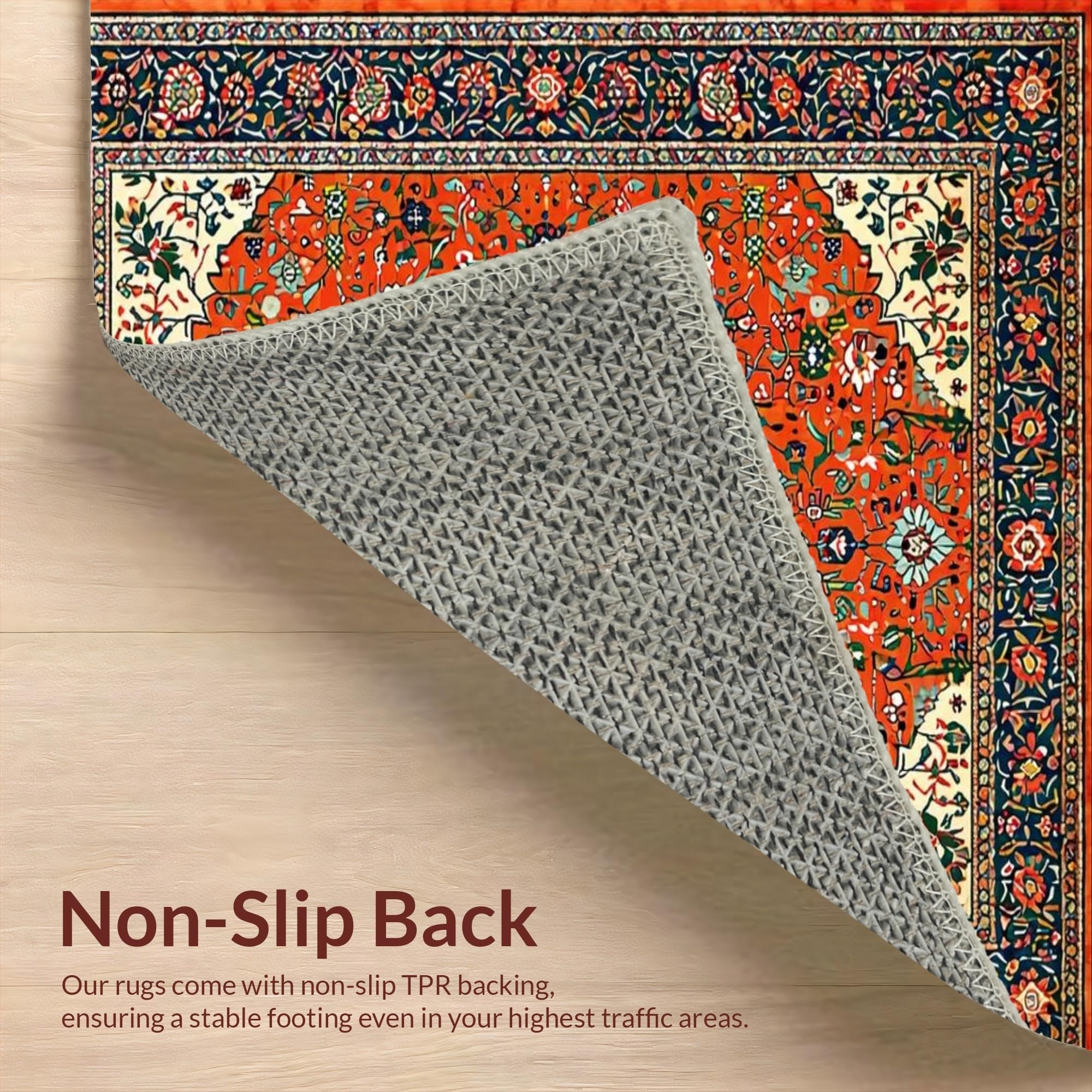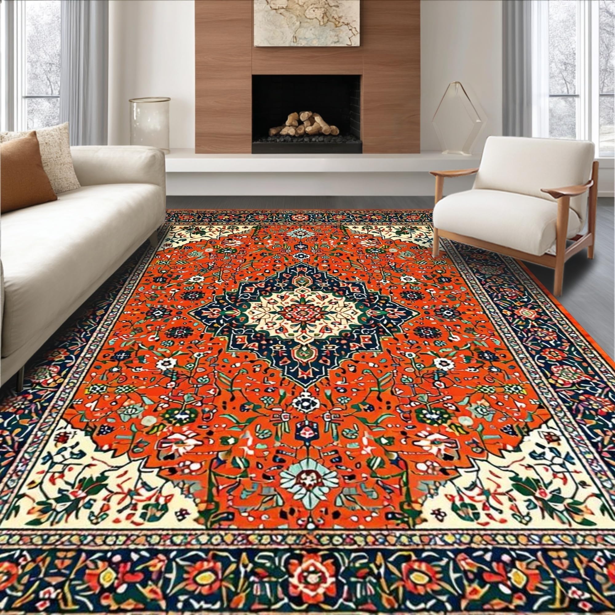 Ultra Soft Area Rug, Non Slip, Stain Resistant, Washable Area Rugs for Living Room, Bedroom, Vintage Floral Medallion Motif(Red) Overview: