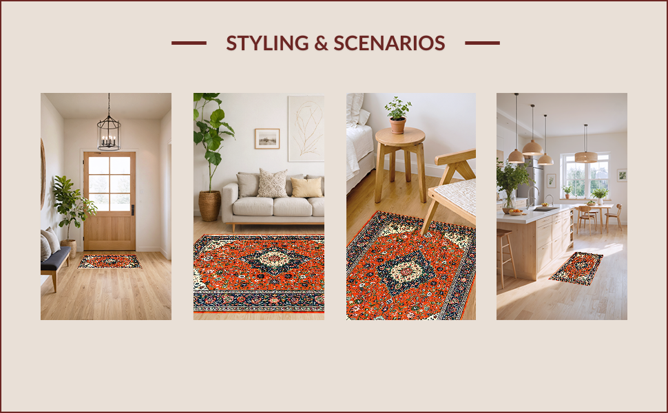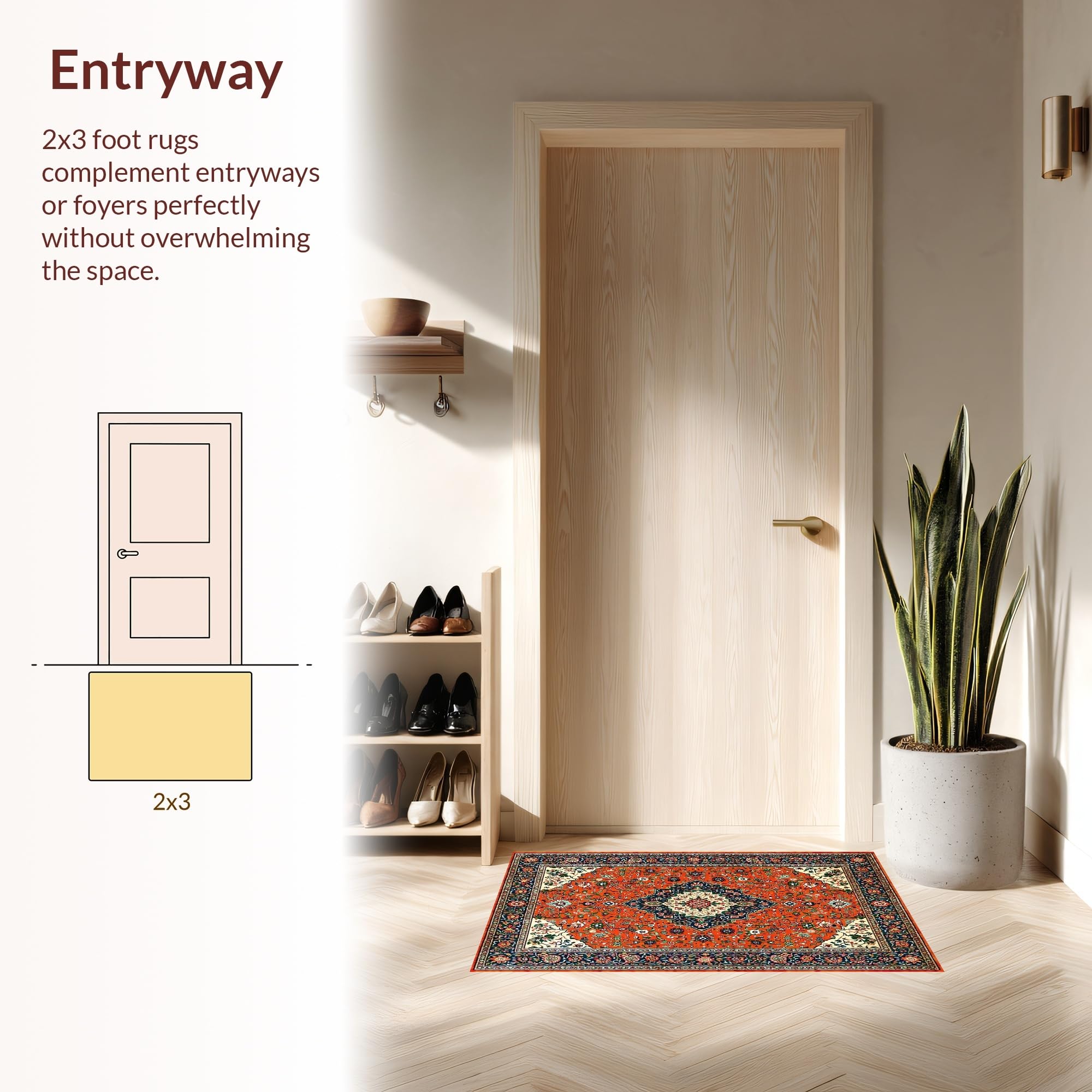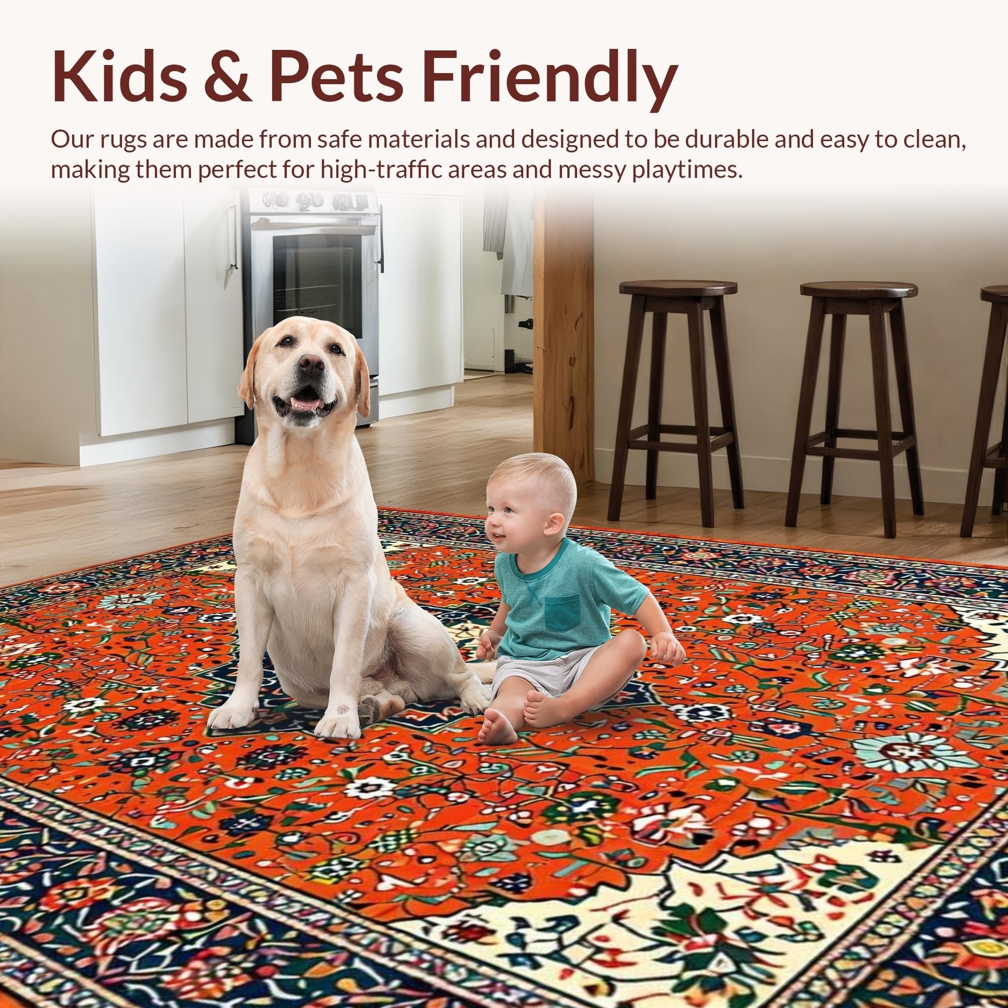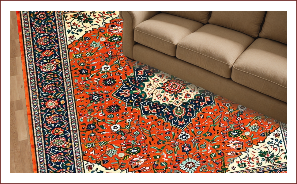Ultra Soft Area Rug, Non Slip, Stain Resistant, Washable Area Rugs for Living Room, Bedroom, Vintage Floral Medallion Motif(Red) Overview: