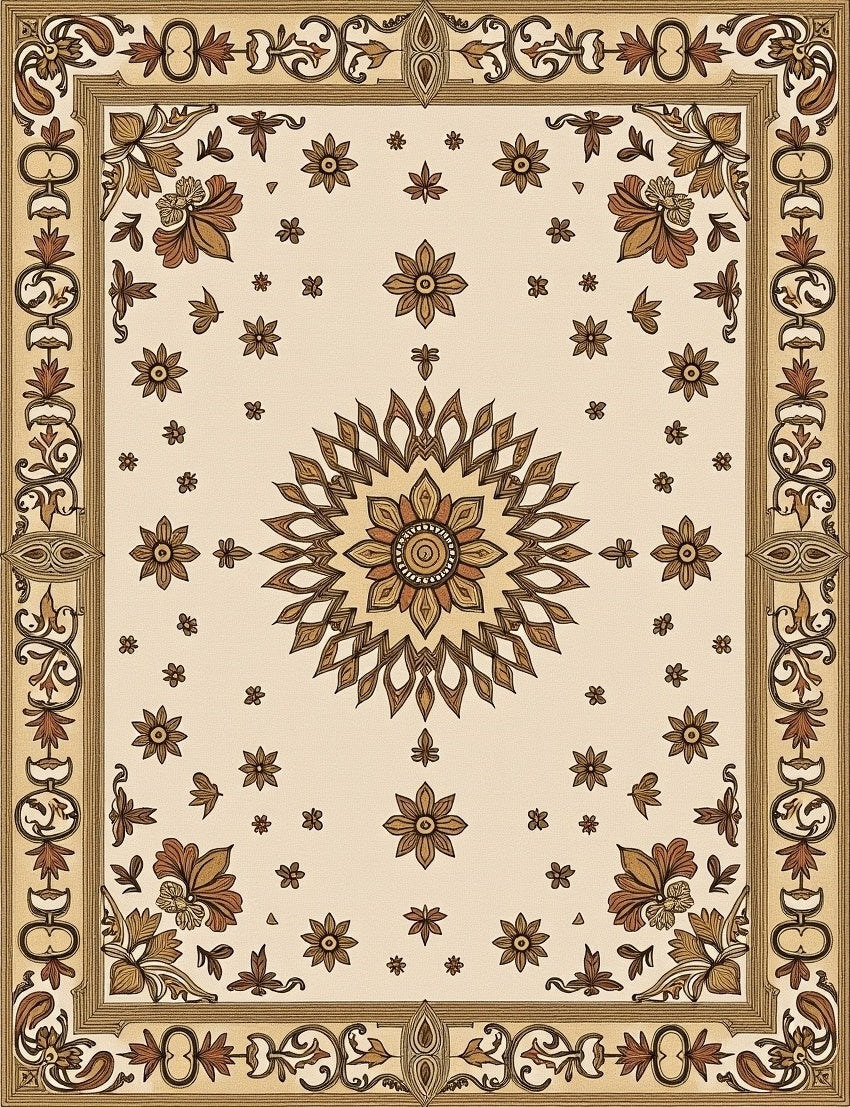 Vintage Floral Medallion Tapestry Distressed Traditional(Beige)