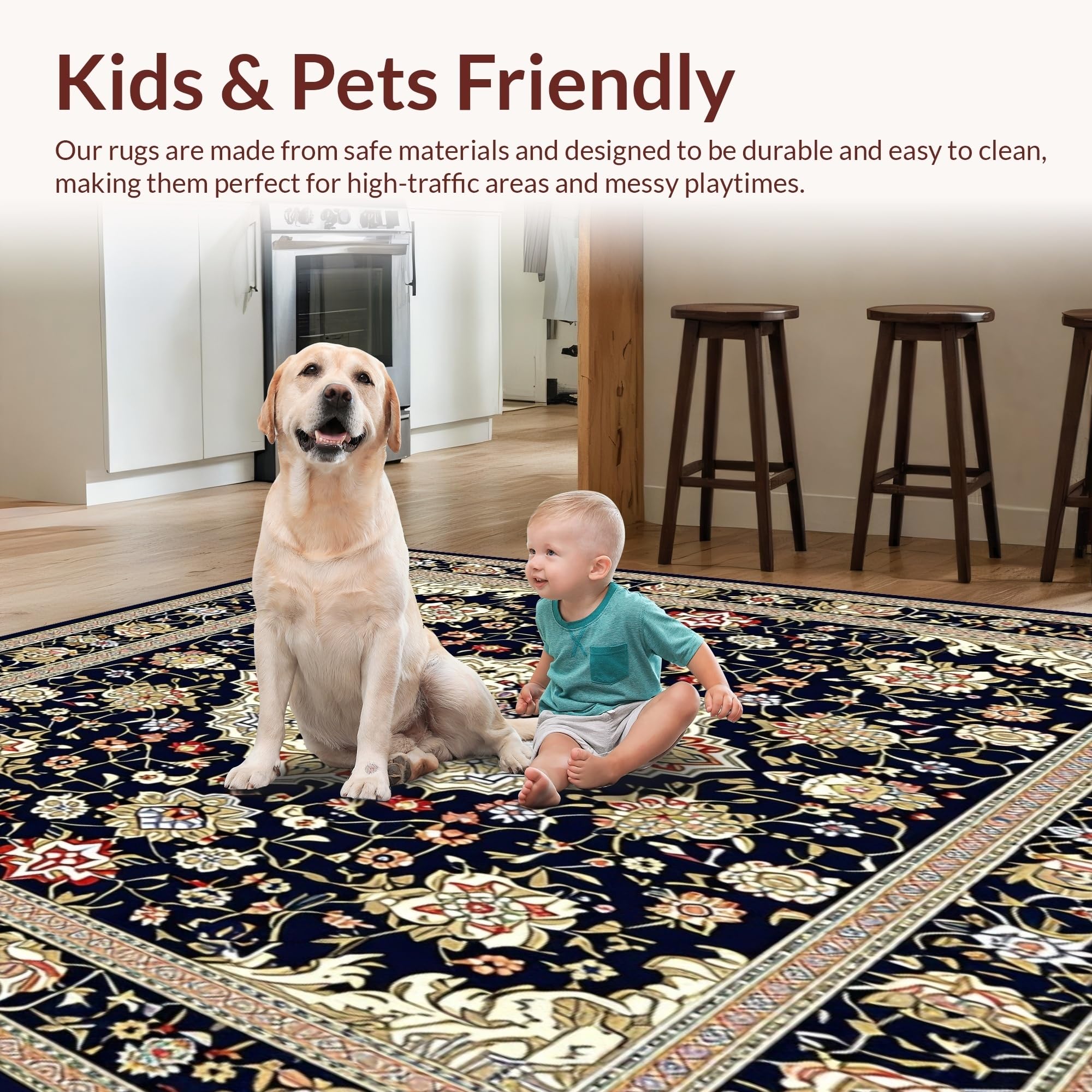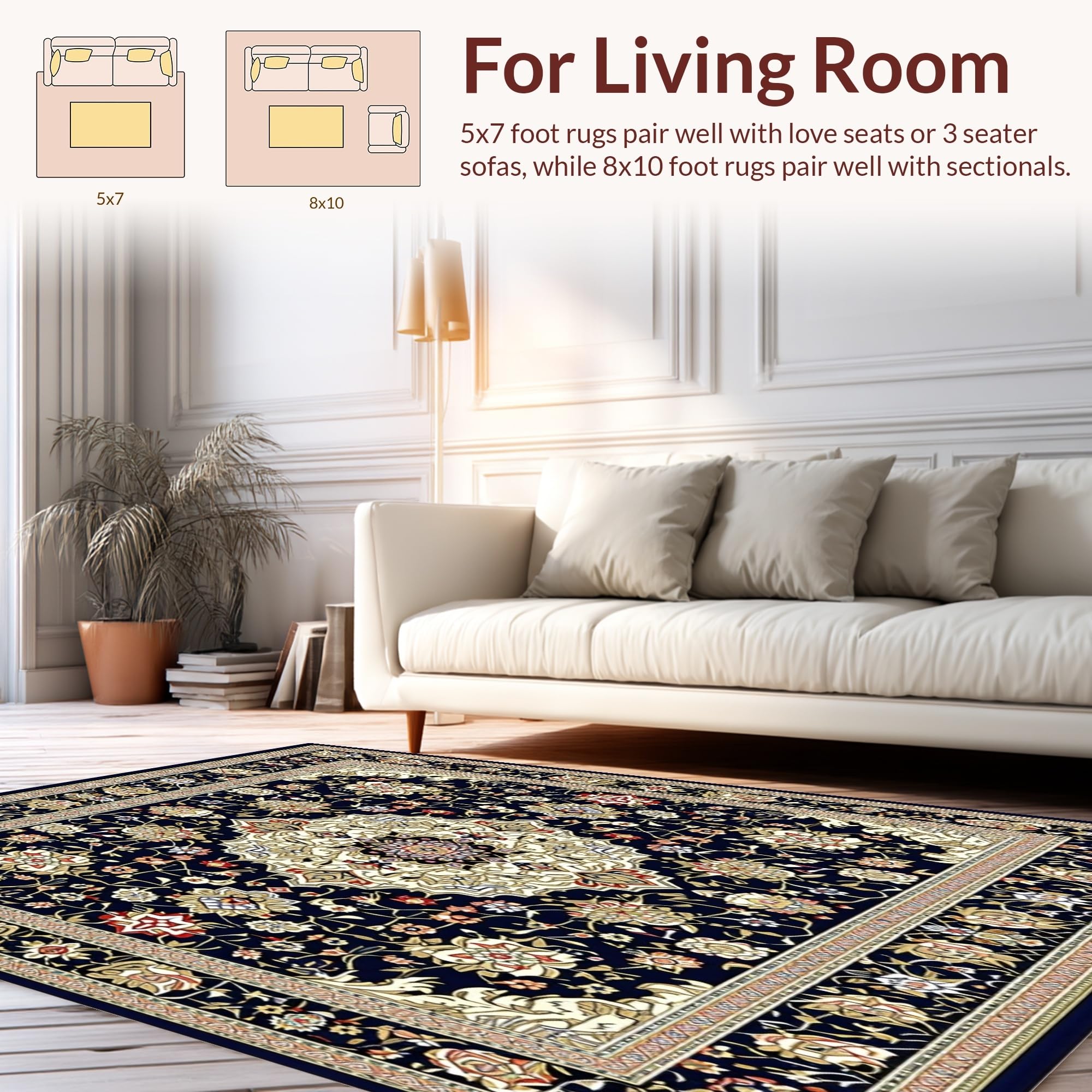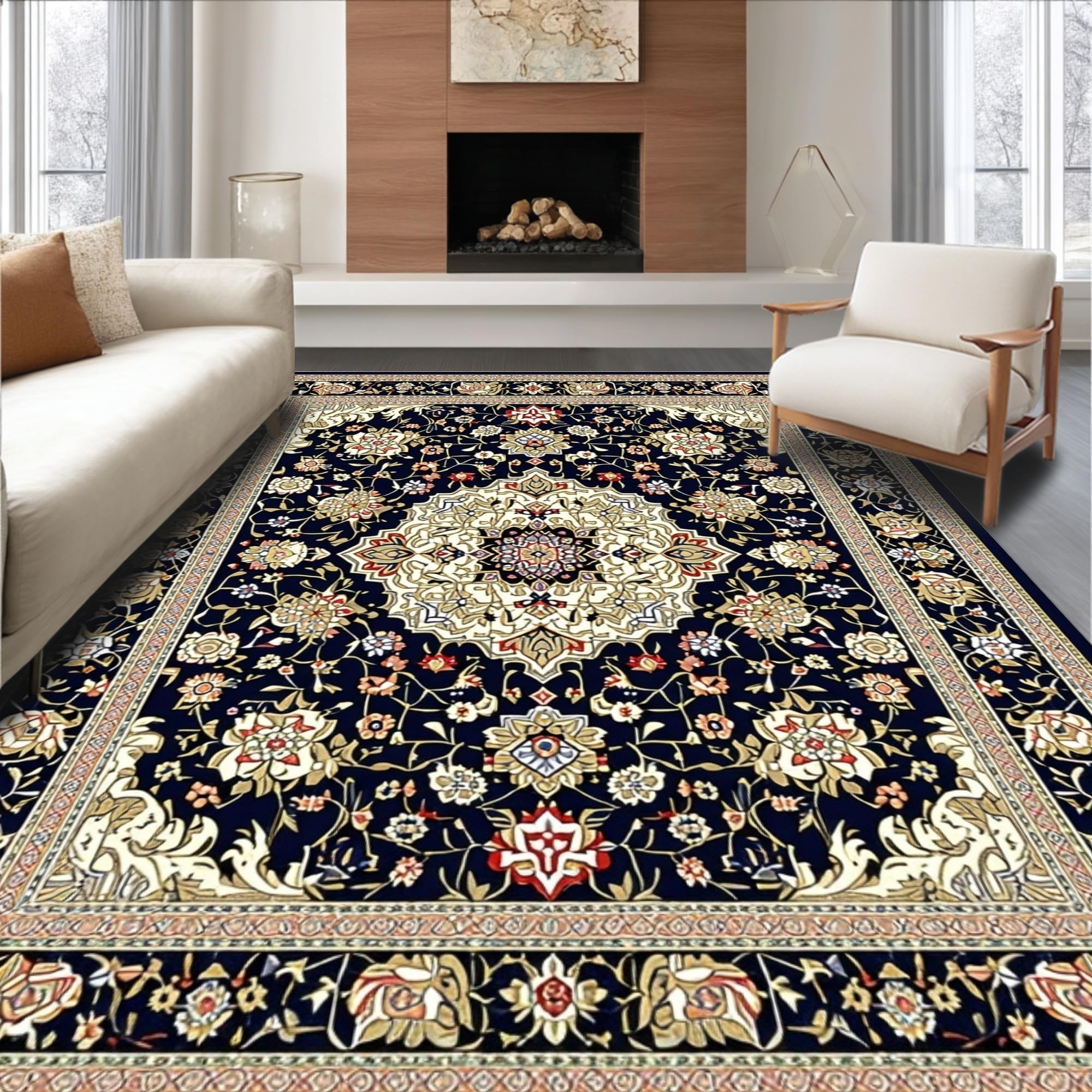 Ultra Soft Area Rug, Non Slip, Stain Resistant, Washable Area Rugs for Living Room, Bedroom, Vintage Floral Medallion Traditional(Black) Overview: