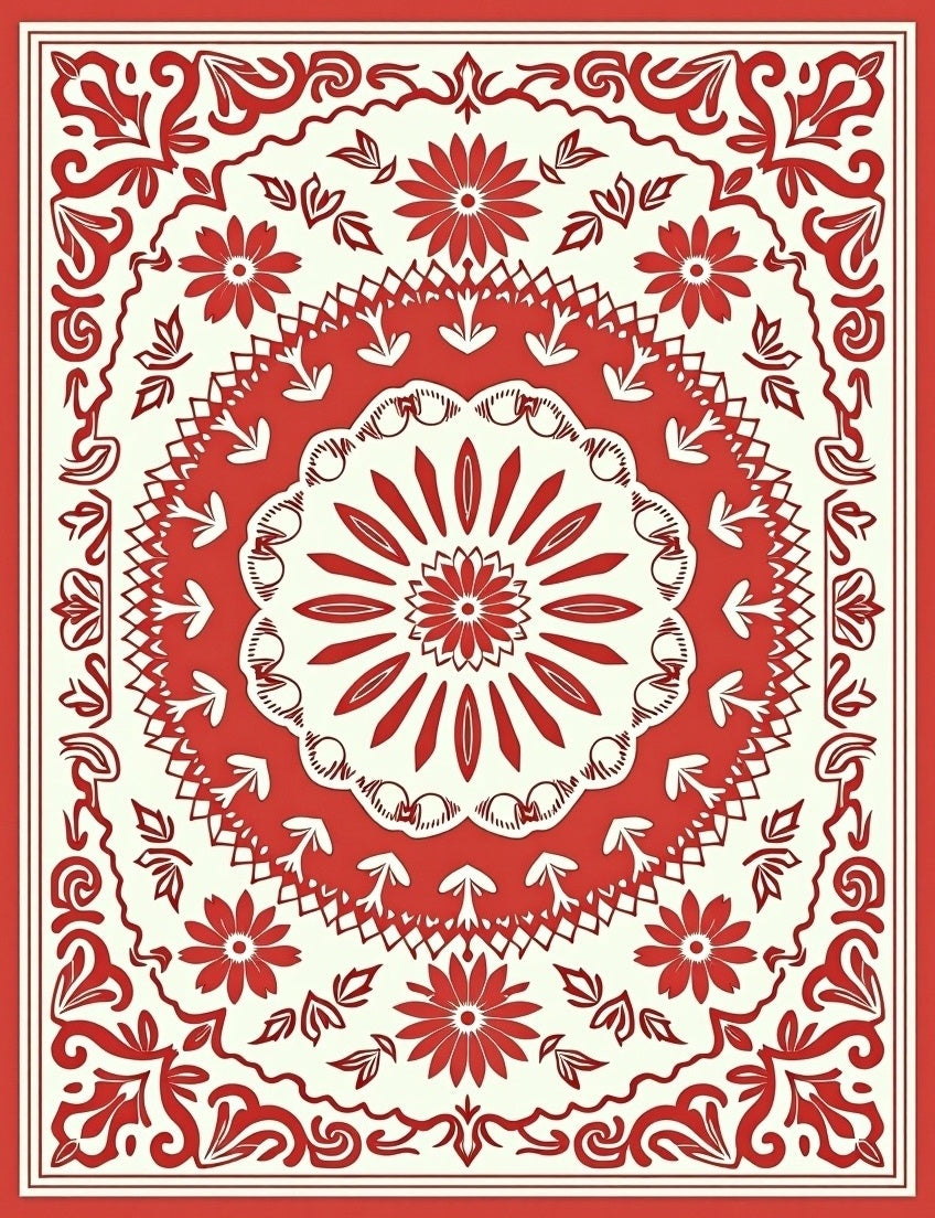 Vintage Floral Medallion with Classic Botanical Embellishments(Red)