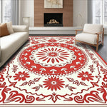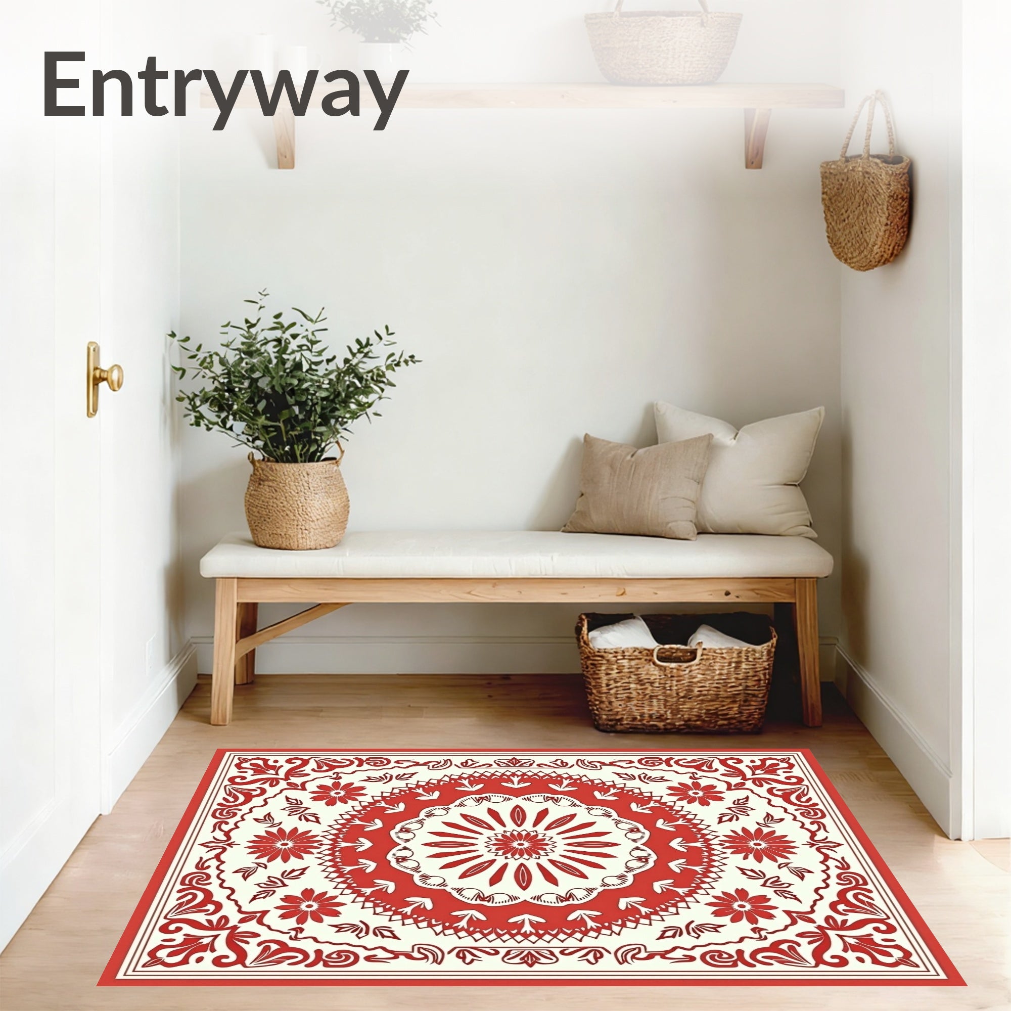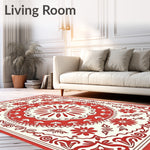 Ultra Soft Area Rug, Non Slip, Stain Resistant, Washable Area Rugs for Living Room, Bedroom, Vintage Floral Medallion with Classic Botanical Embellishments(Red) Overview: