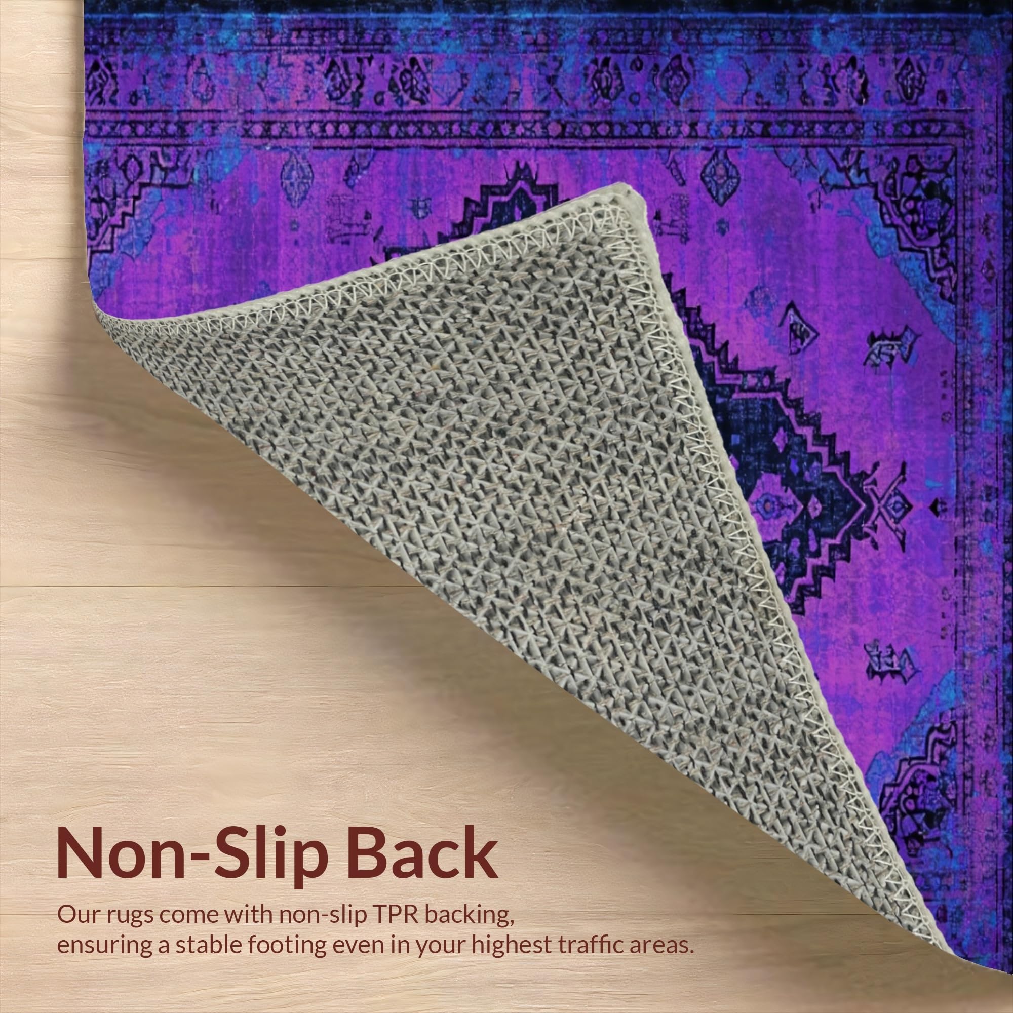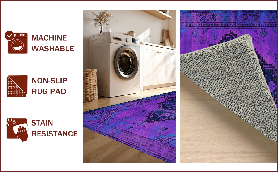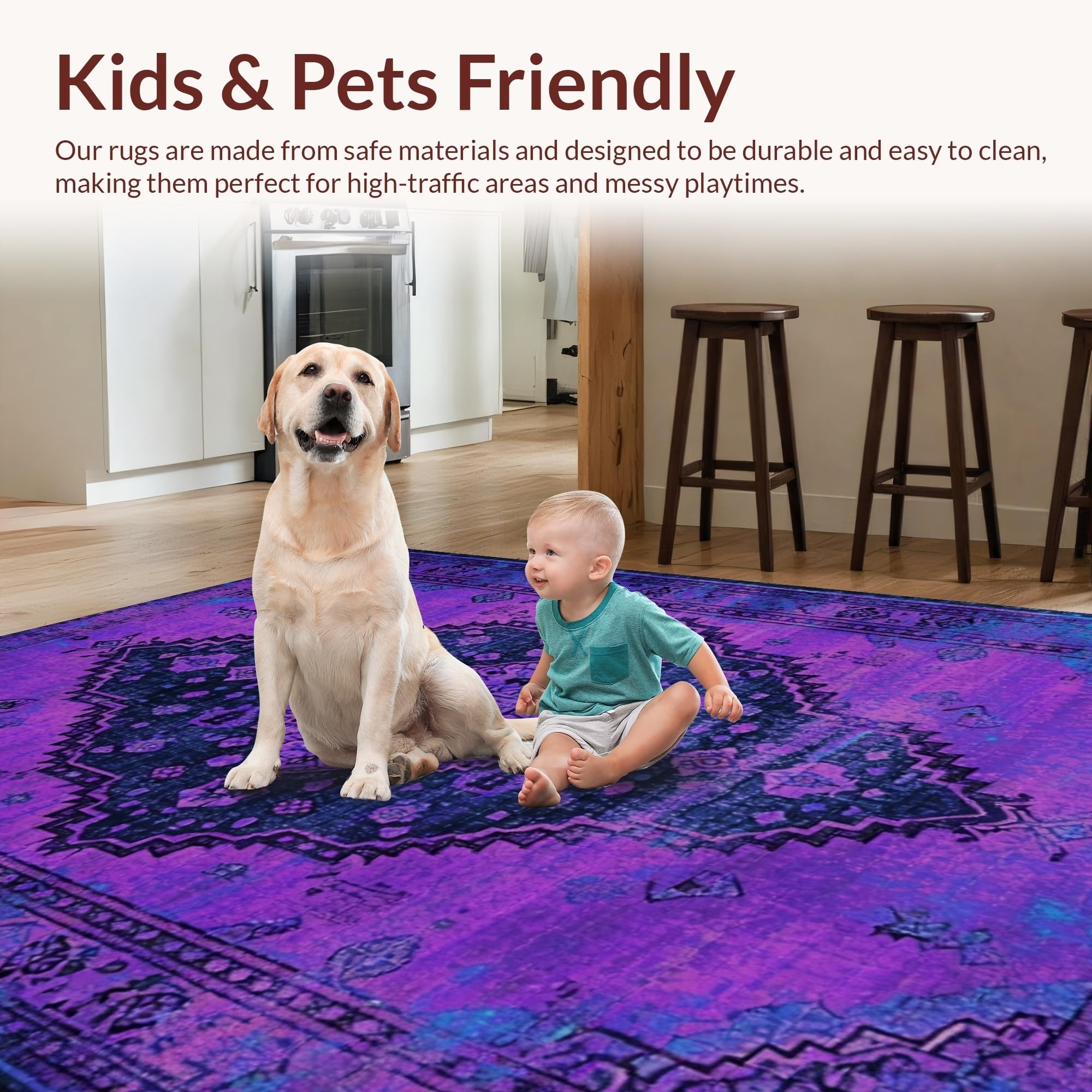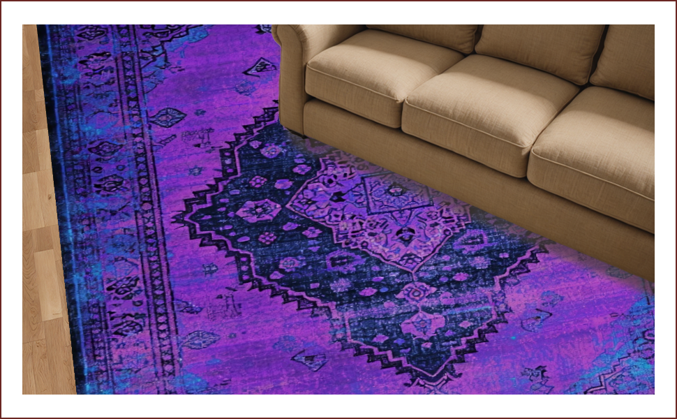 Ultra Soft Area Rug, Non Slip, Stain Resistant, Washable Area Rugs for Living Room, Bedroom, Vintage Floral Overlay Artistry(Purple) Overview: