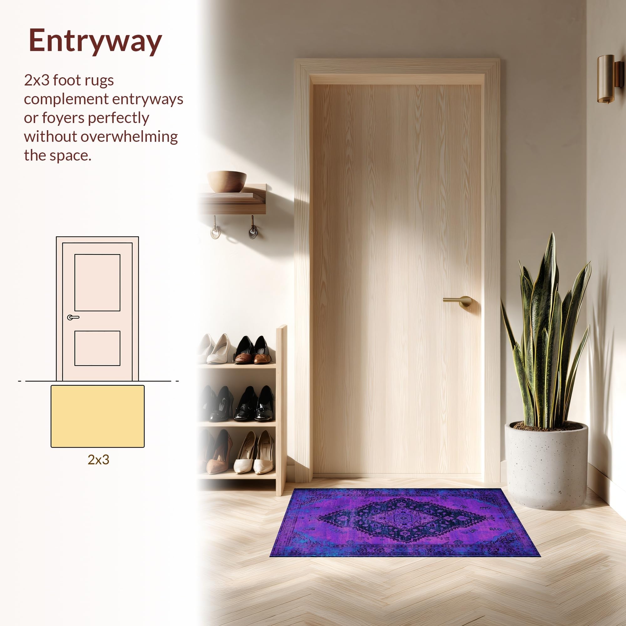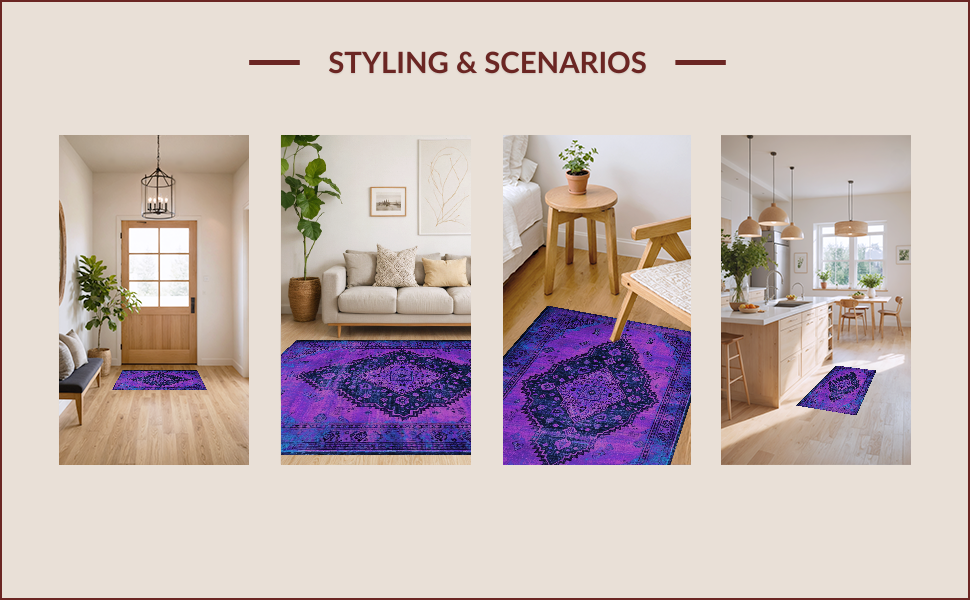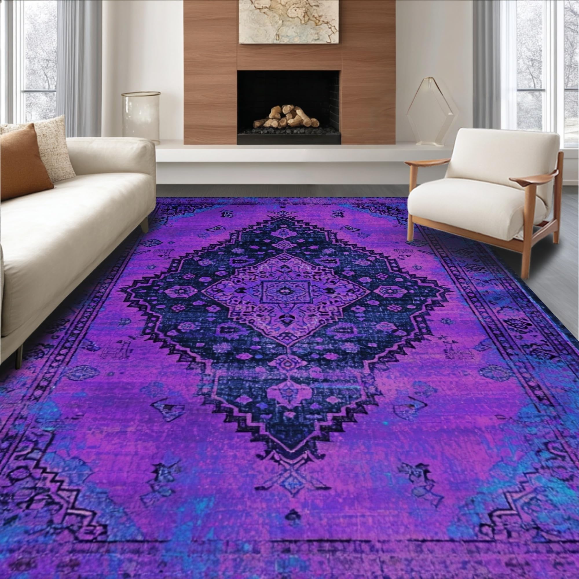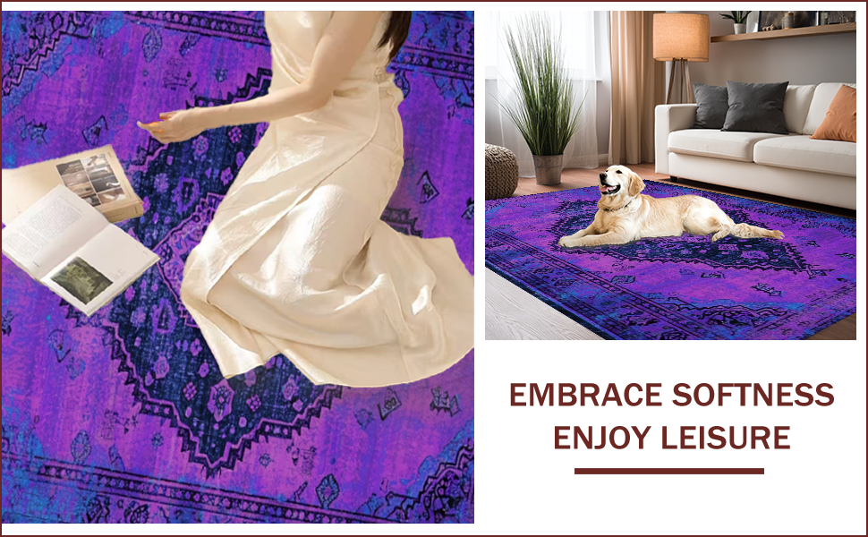 Ultra Soft Area Rug, Non Slip, Stain Resistant, Washable Area Rugs for Living Room, Bedroom, Vintage Floral Overlay Artistry(Purple) Overview: