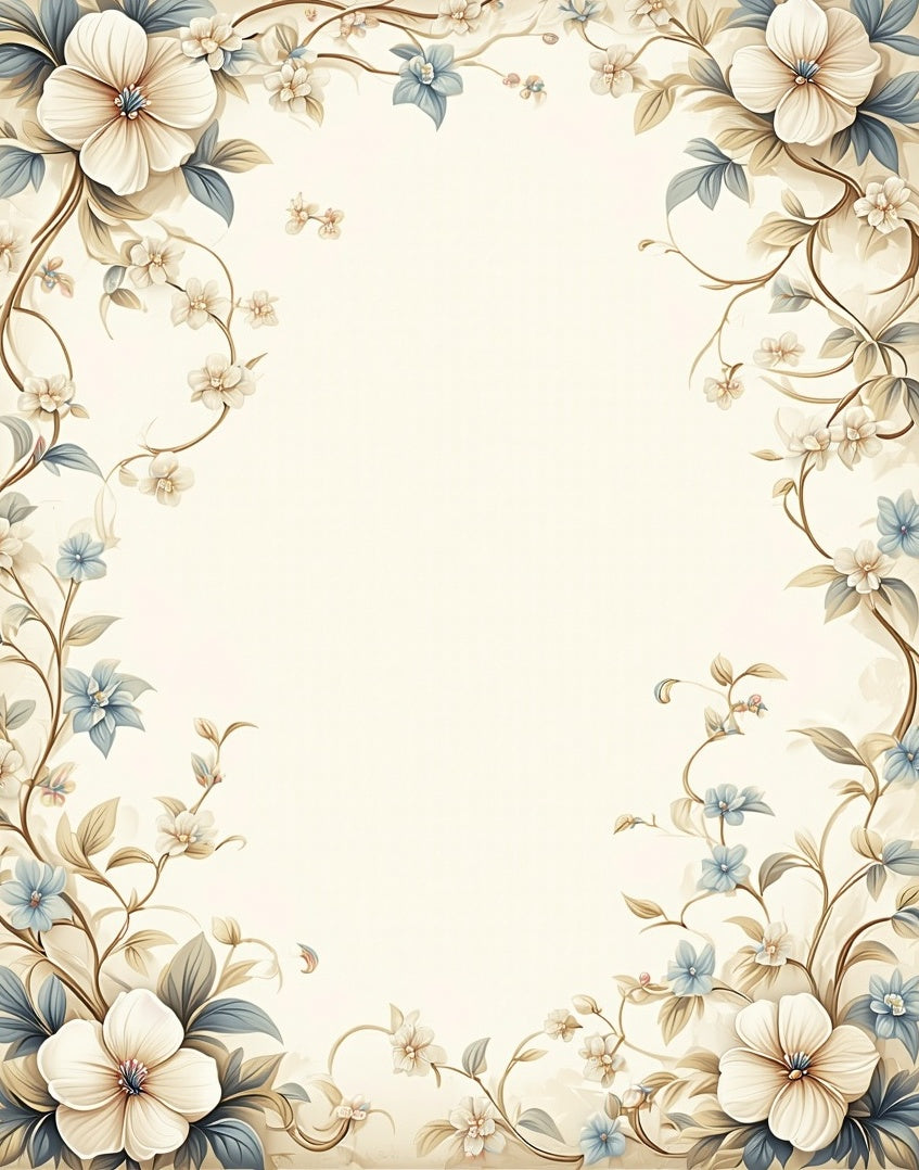 Vintage Floral Patterned with Beige Blossoms and Leafy Accents(Beige)
