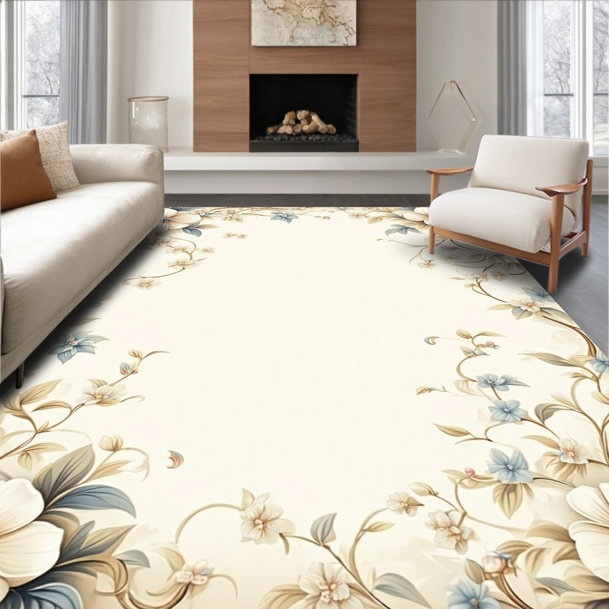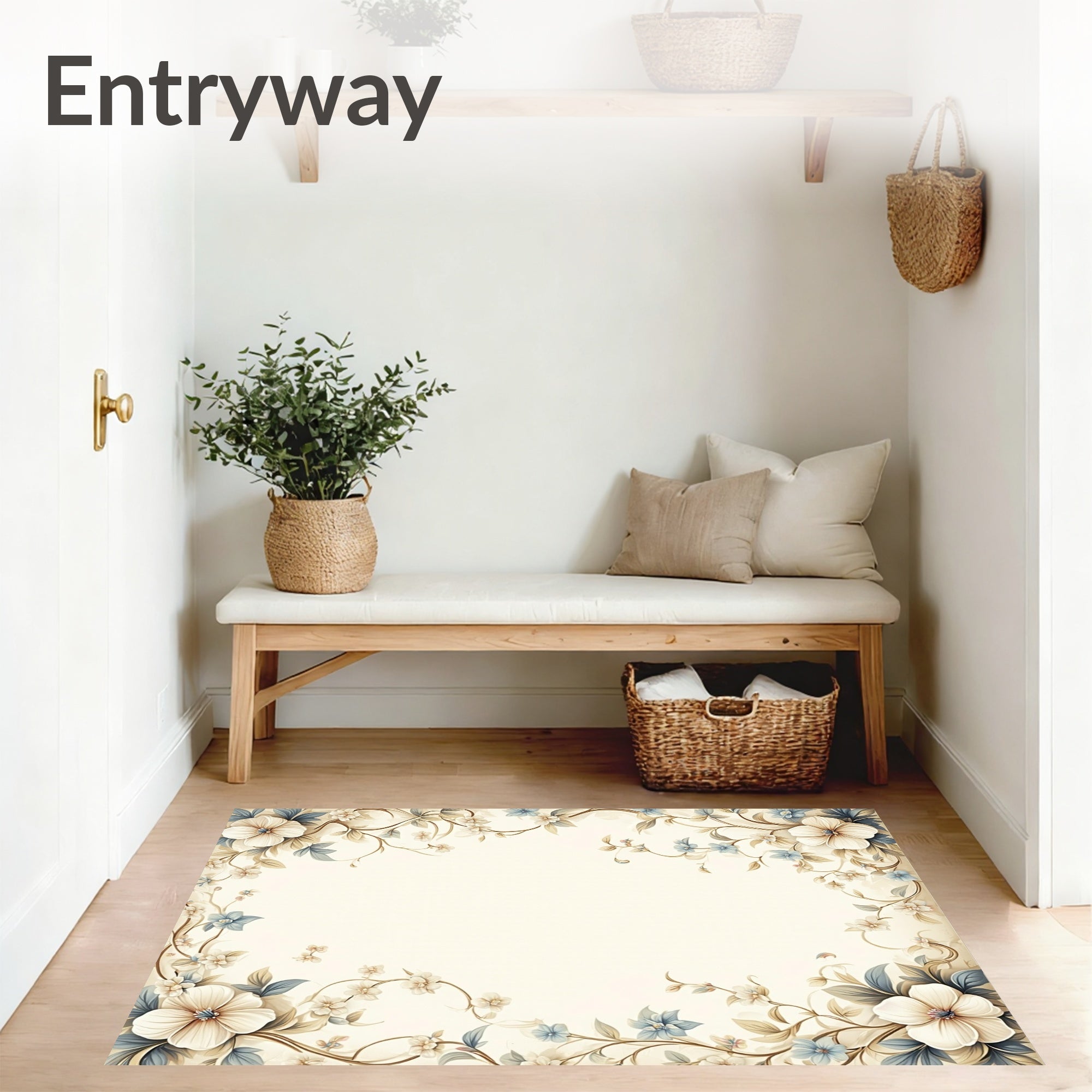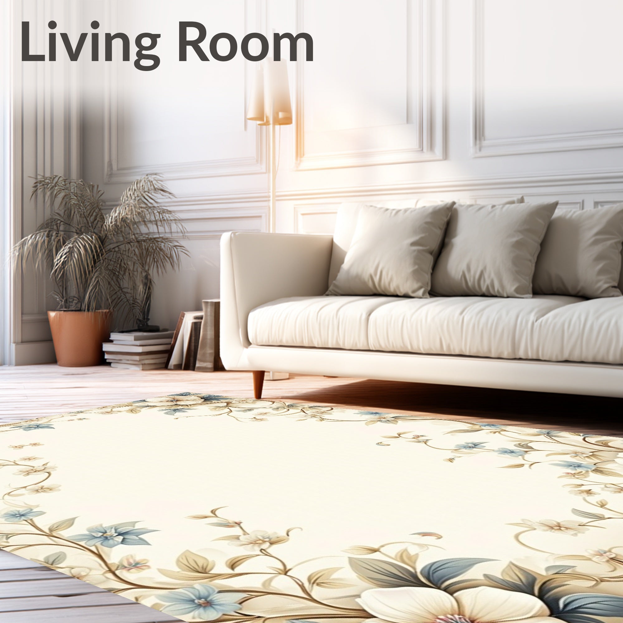 Flatwoven High Traffic Area Rug, Vintage Floral Patterned with Beige Blossoms and Leafy Accents, Non Slip, Stain Resistant, Washable Area Rugs for Living Room, Bedroom (Beige) Overview: