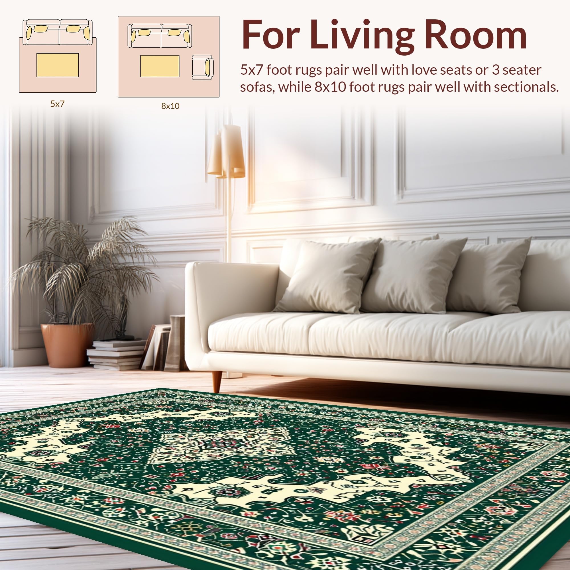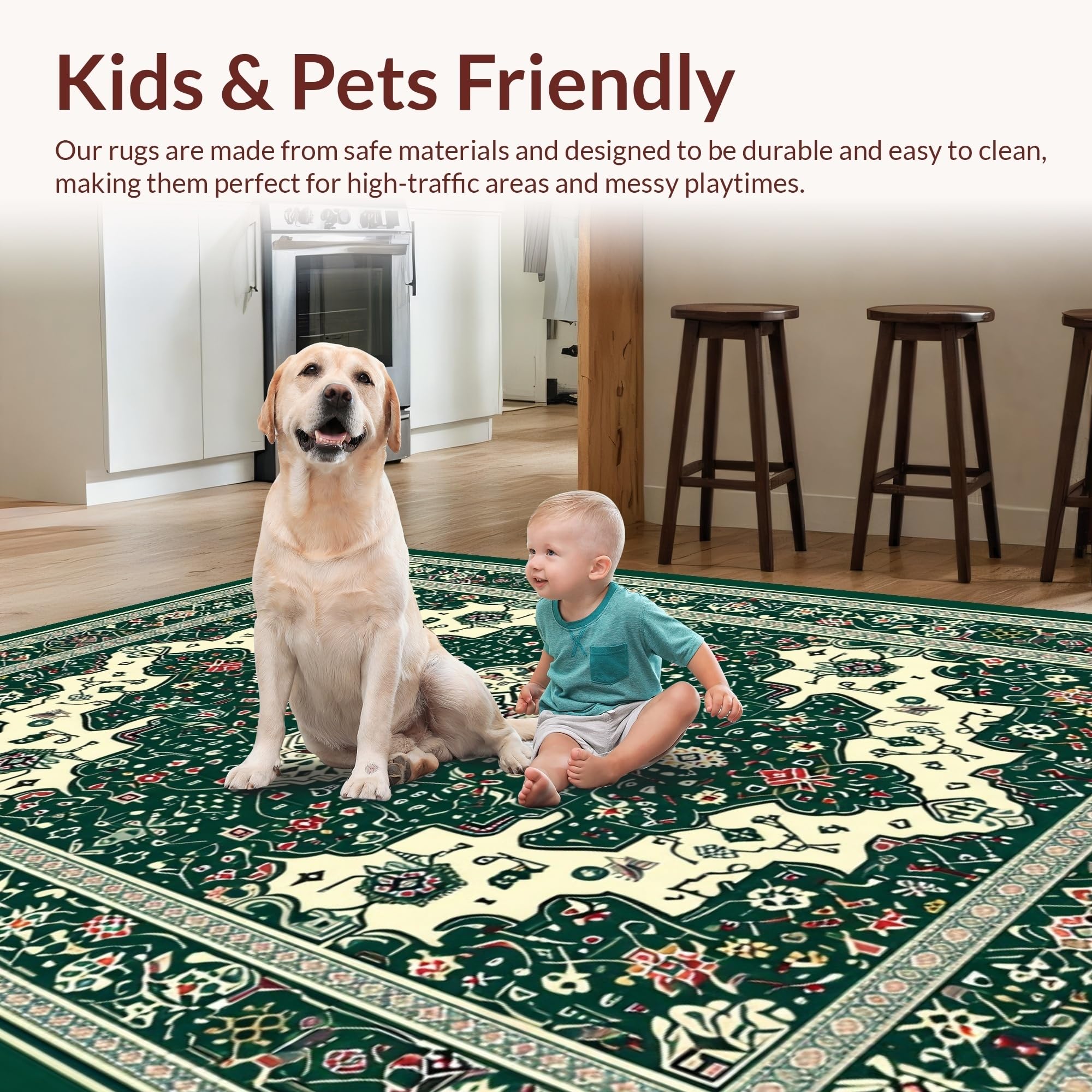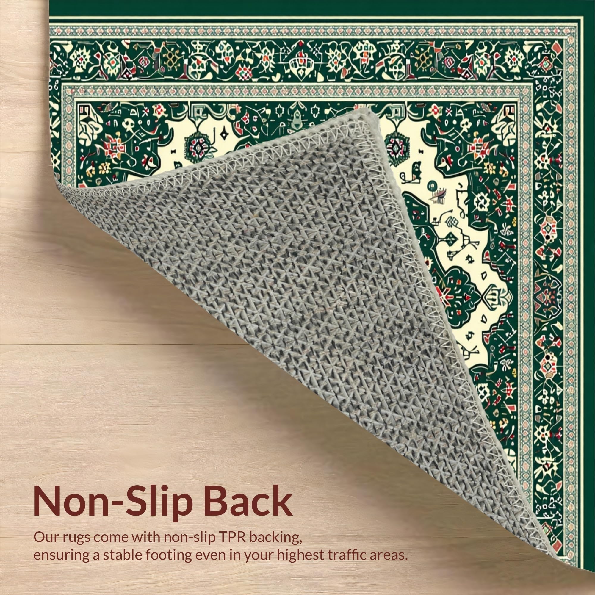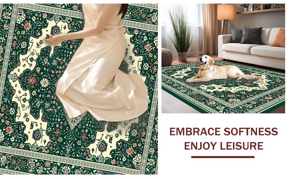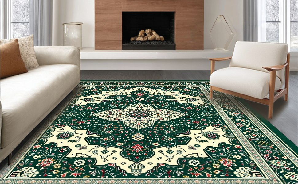 Ultra Soft Area Rug, Non Slip, Stain Resistant, Washable Area Rugs for Living Room, Bedroom, Vintage Floral Tiled Design(Green) Overview: