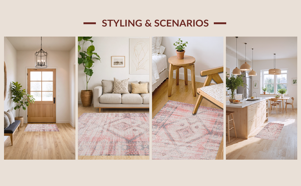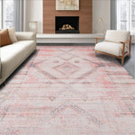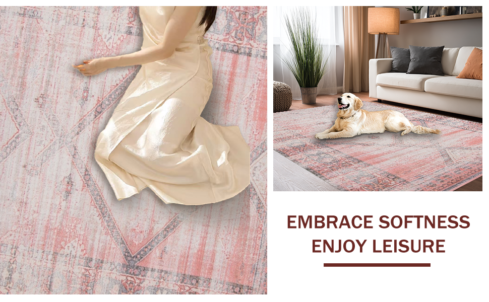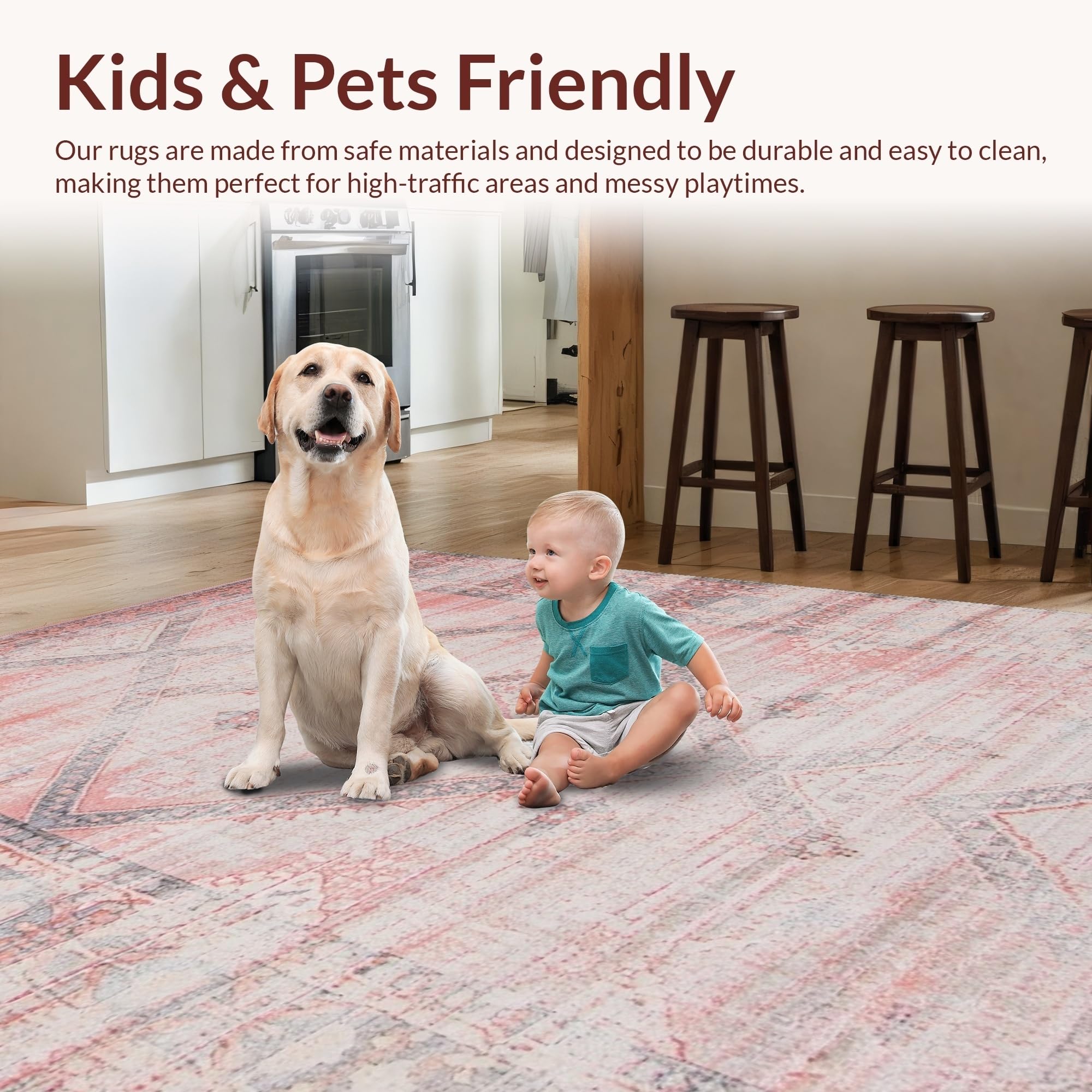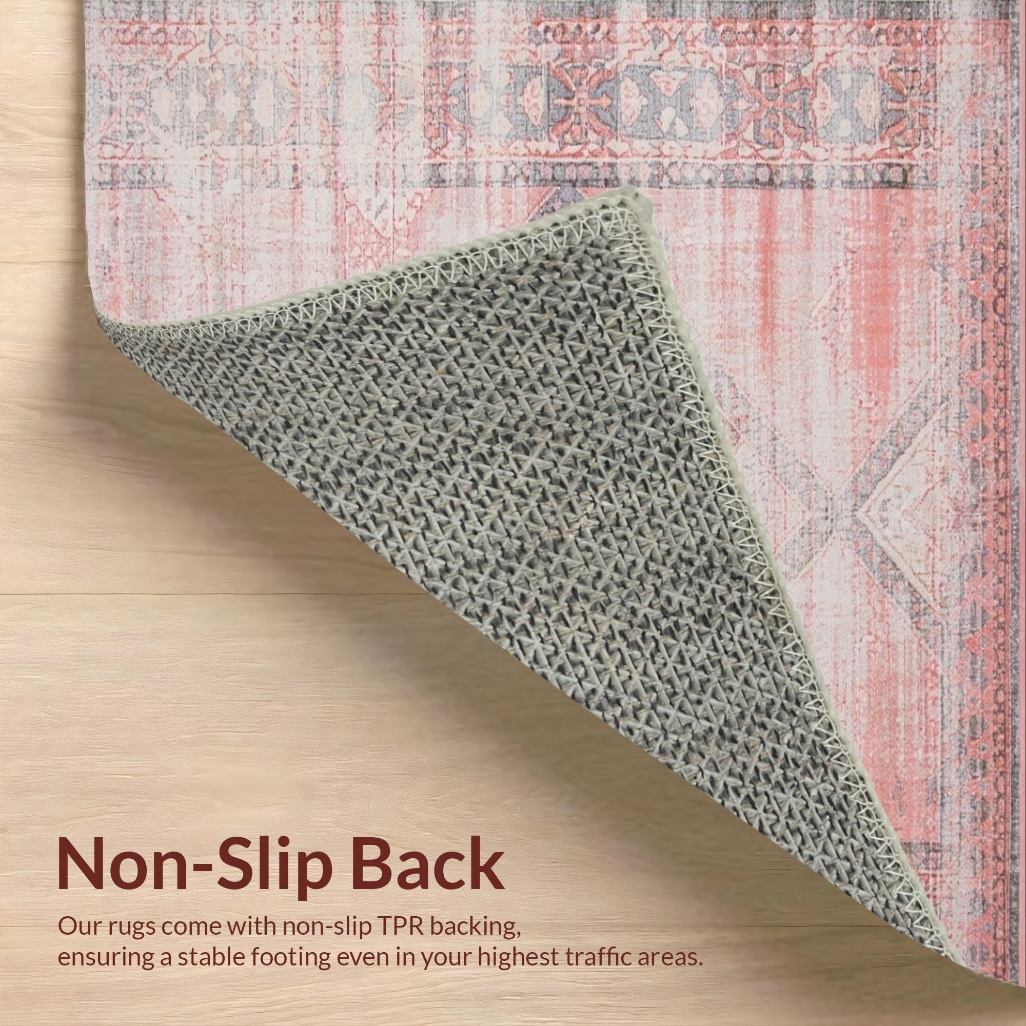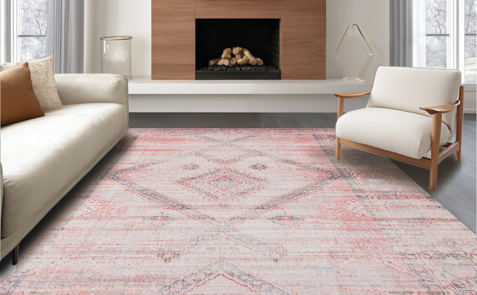 Ultra Soft Area Rug, Non Slip, Stain Resistant, Washable Area Rugs for Living Room, Bedroom, Vintage Floral Tiled Elegance(Pink) Overview:
