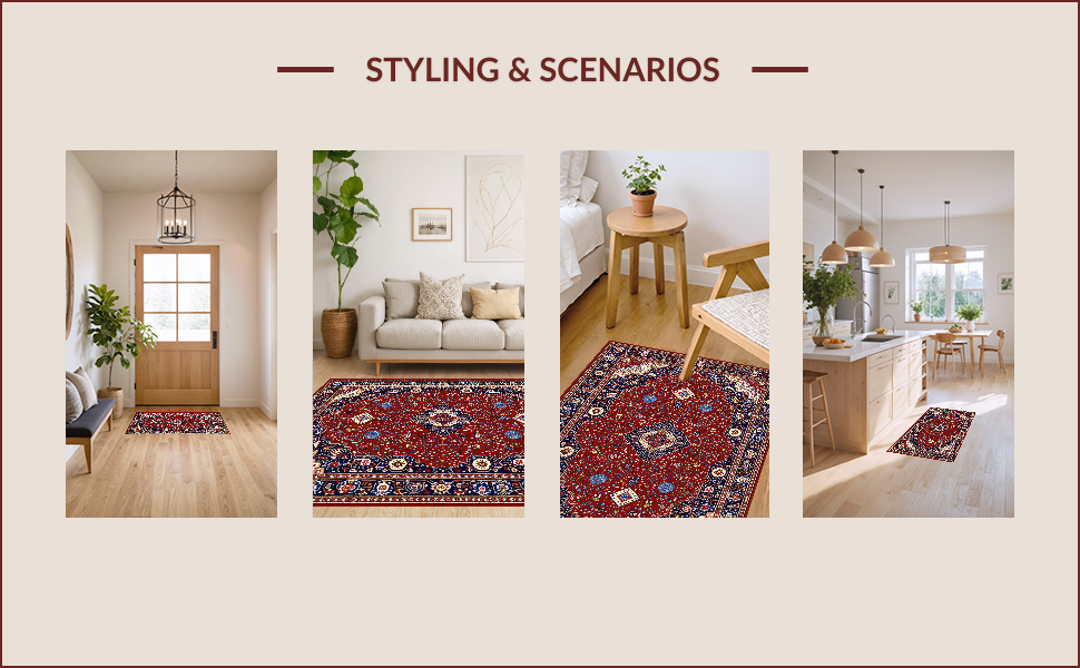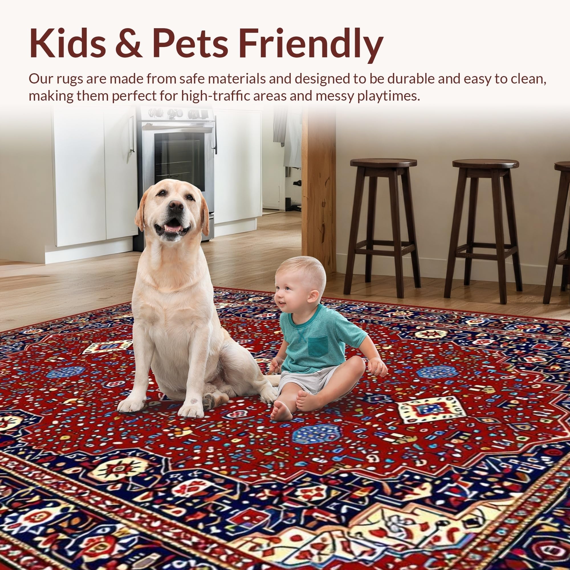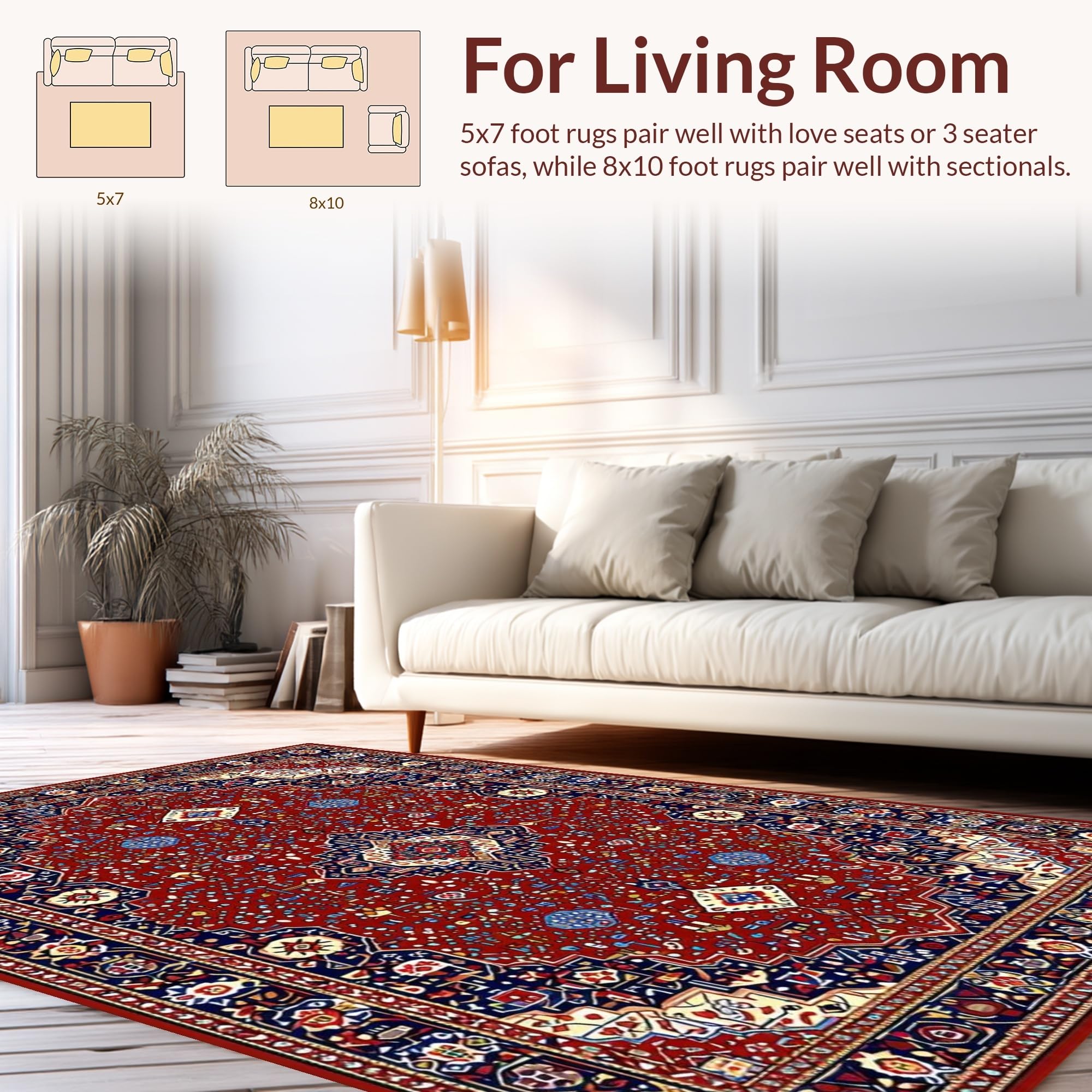 Ultra Soft Area Rug, Non Slip, Stain Resistant, Washable Area Rugs for Living Room, Bedroom, Vintage Floral Trellis Arrangement(Red) Overview: