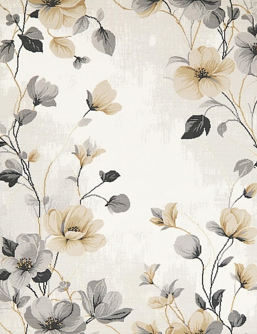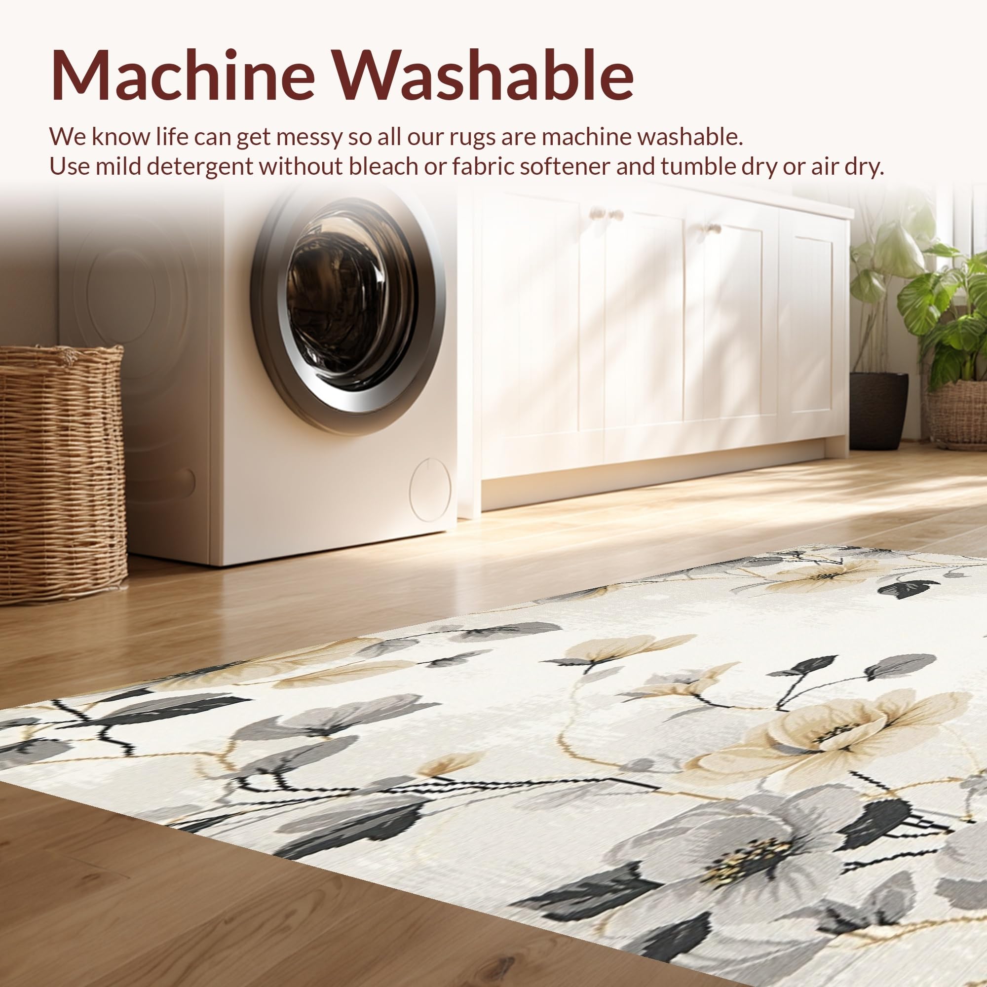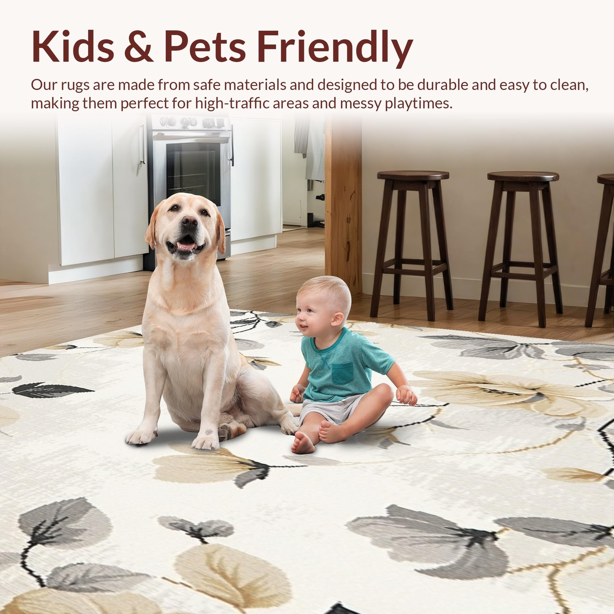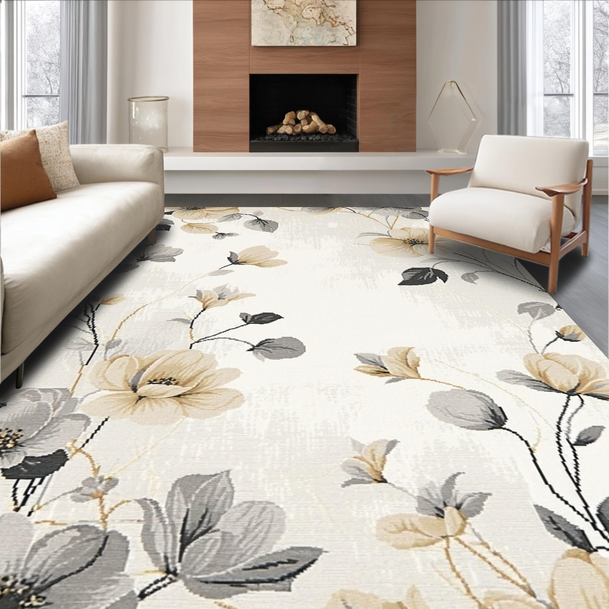 Ultra Soft Area Rug, Non Slip, Stain Resistant, Washable Area Rugs for Living Room, Bedroom, Vintage Floral with Smoky Gray and Warm Beige Abstract Petals(Beige) Overview: