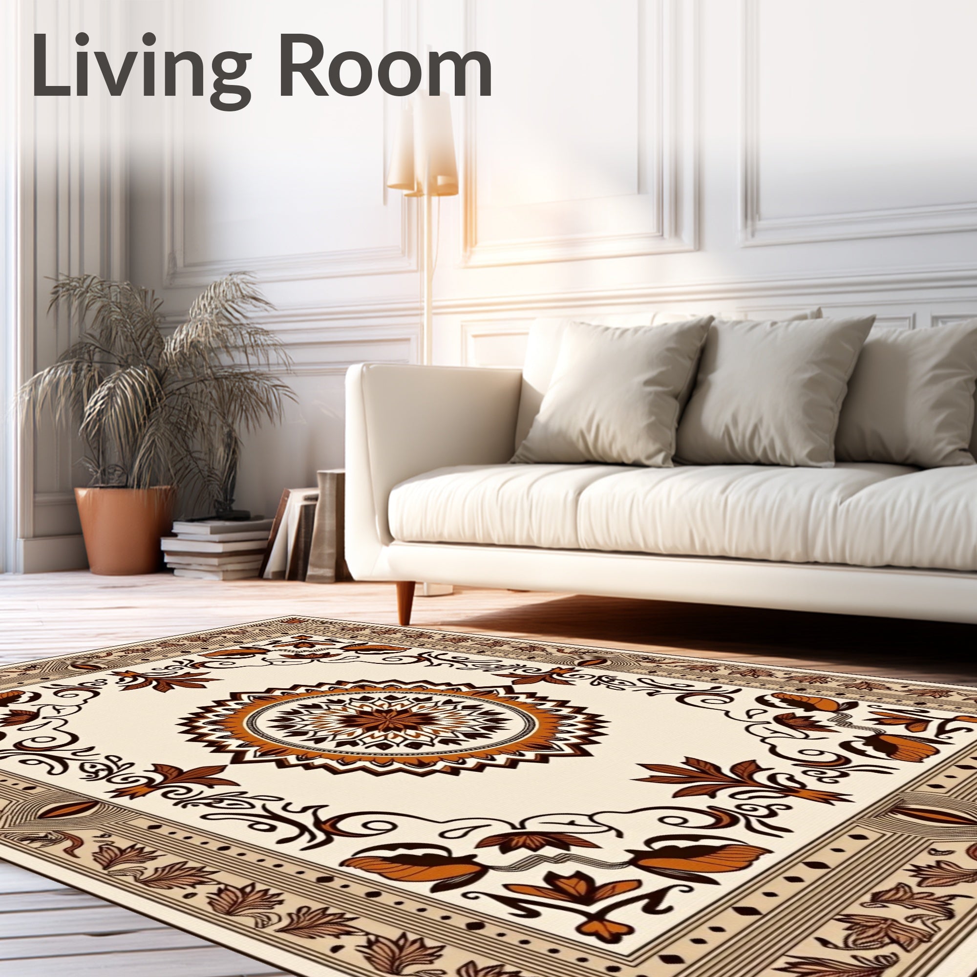 Ultra Soft Area Rug, Non Slip, Stain Resistant, Washable Area Rugs for Living Room, Bedroom, Vintage Garden Blooms Botanical Medallion Accent Design(Ivory) Overview: