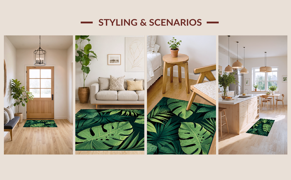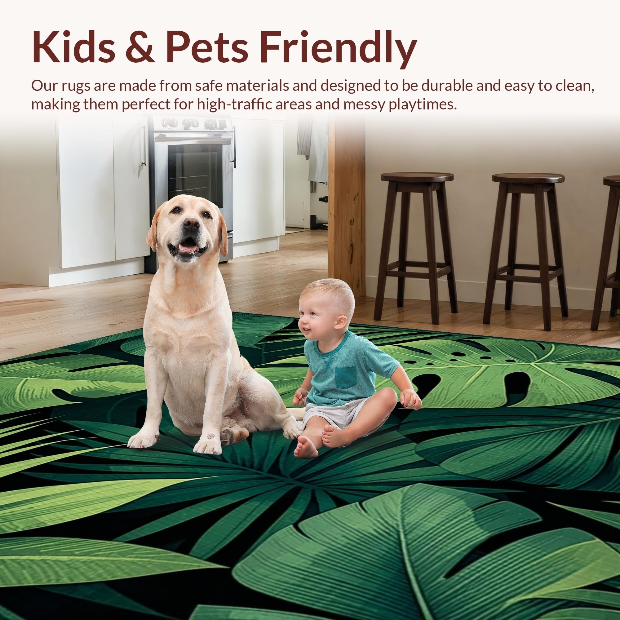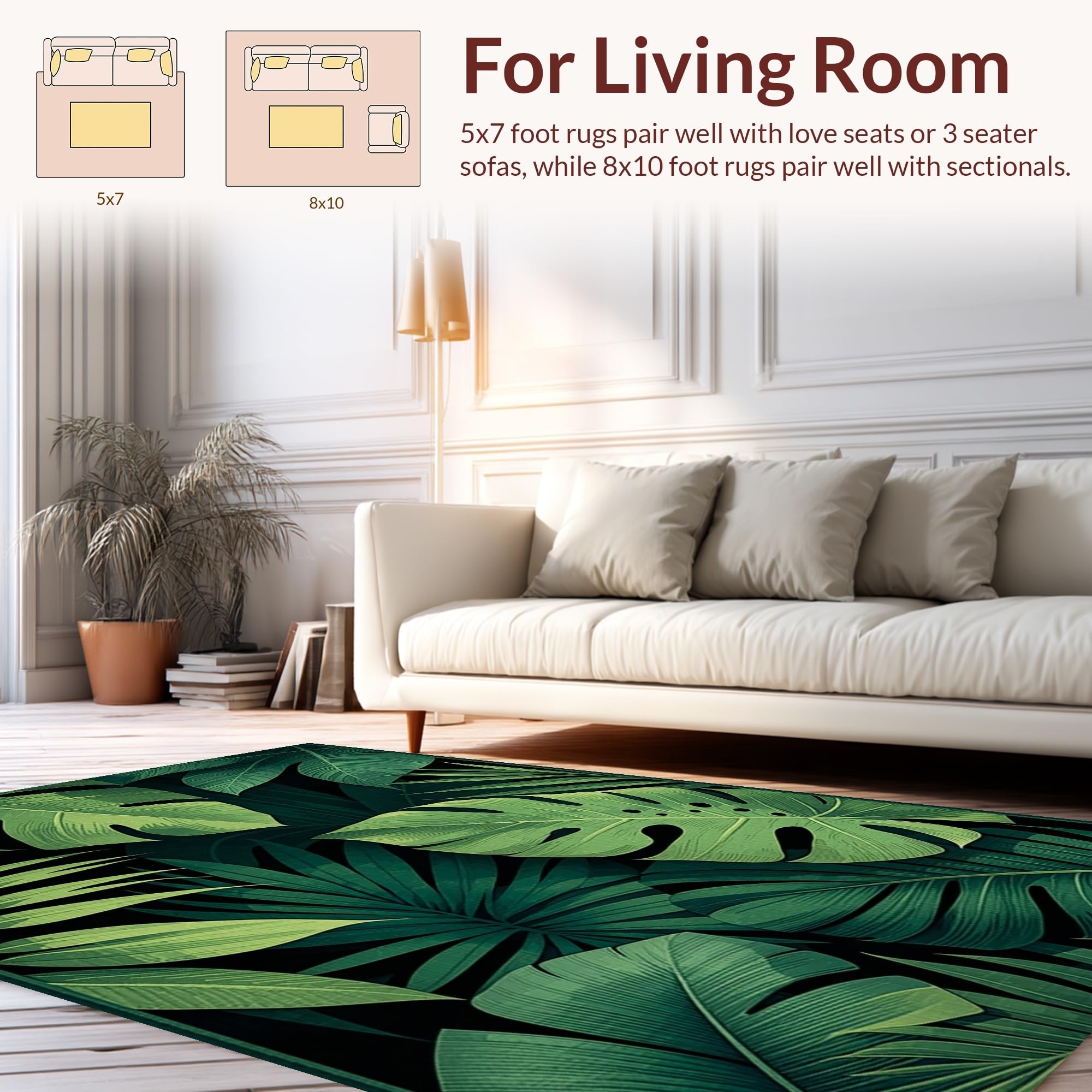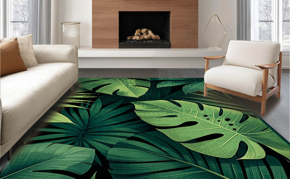 Ultra Soft Area Rug, Non Slip, Stain Resistant, Washable Area Rugs for Living Room, Bedroom, Vintage Green Floral Aesthetic(Green) Overview: