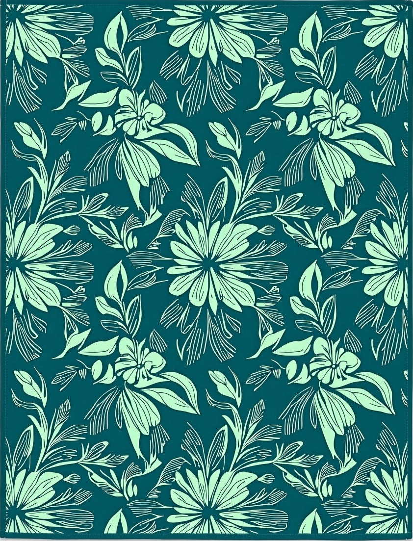 Vintage Hawaiian Floral Patterned Strip with Exotic Leaf Accents(Blue)
