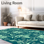 Flatwoven High Traffic Area Rug, Vintage Hawaiian Floral Patterned Strip with Exotic Leaf Accents, Non Slip, Stain Resistant, Washable Area Rugs for Living Room, Bedroom (Blue) Overview: