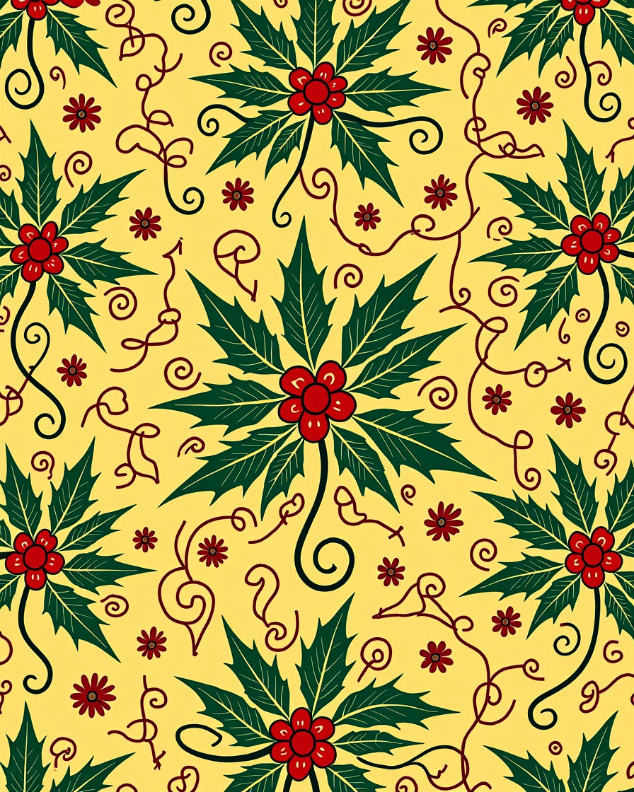 Vintage Holiday Holly Leaf With Elegant Festive Motifs(Yellow)