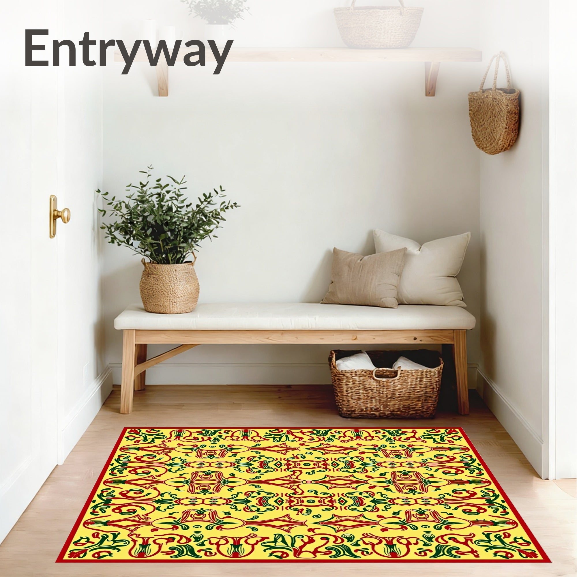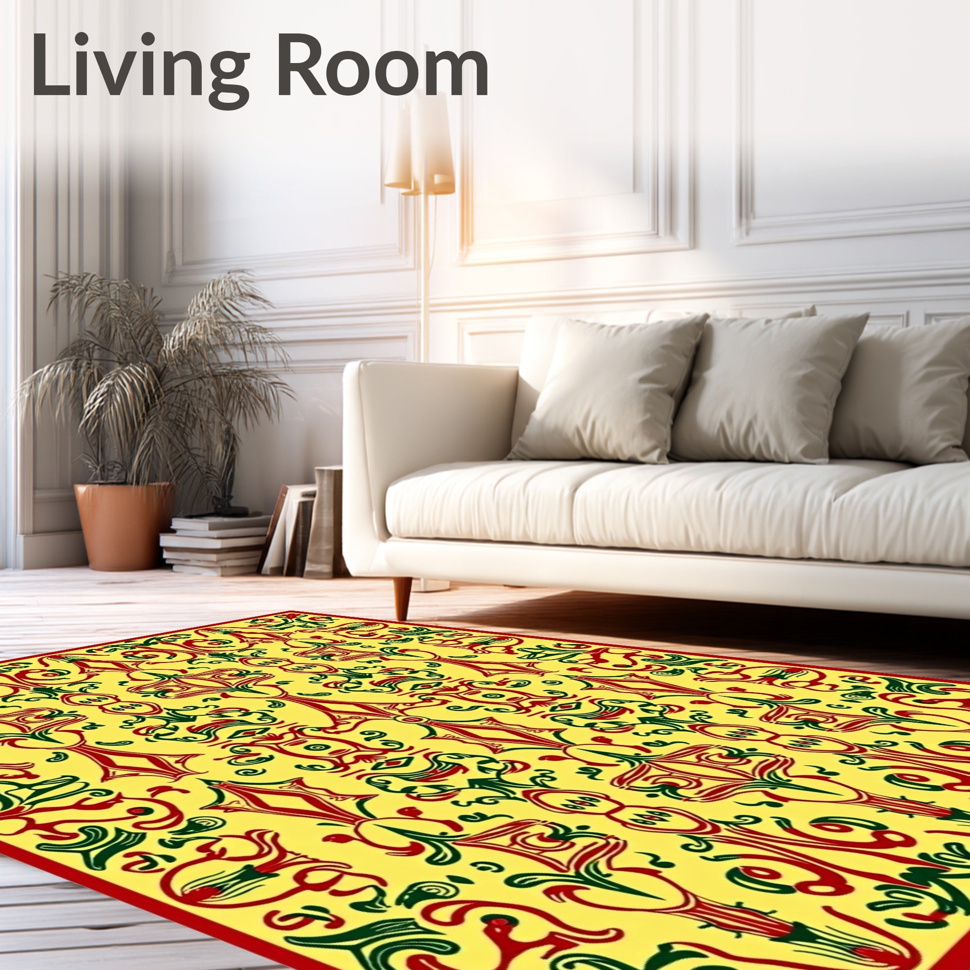 Ultra Soft Area Rug, Non Slip, Stain Resistant, Washable Area Rugs for Living Room, Bedroom, Vintage Holiday Horn Festive Accent(Yellow) Overview: