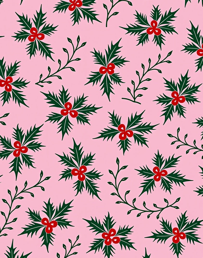 Vintage Holly Berry Wreath with Traditional Botanical Design(Pink)