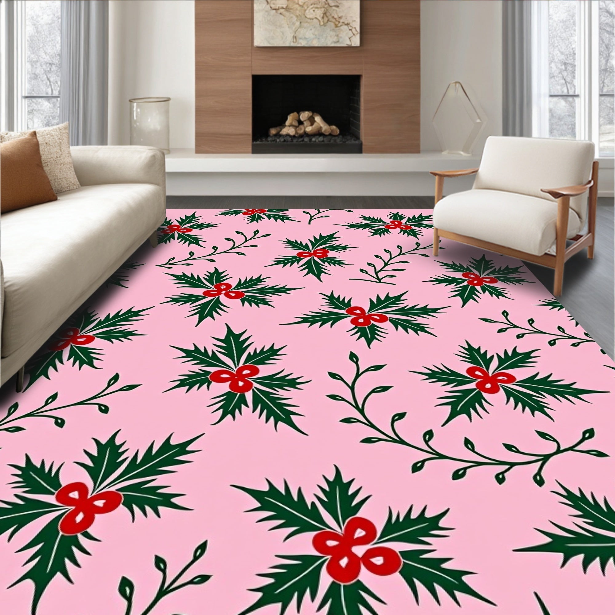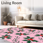 Flatwoven High Traffic Area Rug, Vintage Holly Berry Wreath with Traditional Botanical Design, Non Slip, Stain Resistant, Washable Area Rugs for Living Room, Bedroom (Pink) Overview: