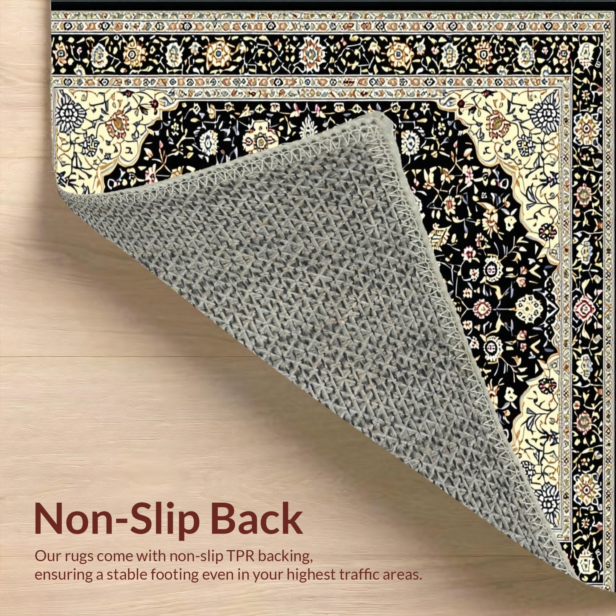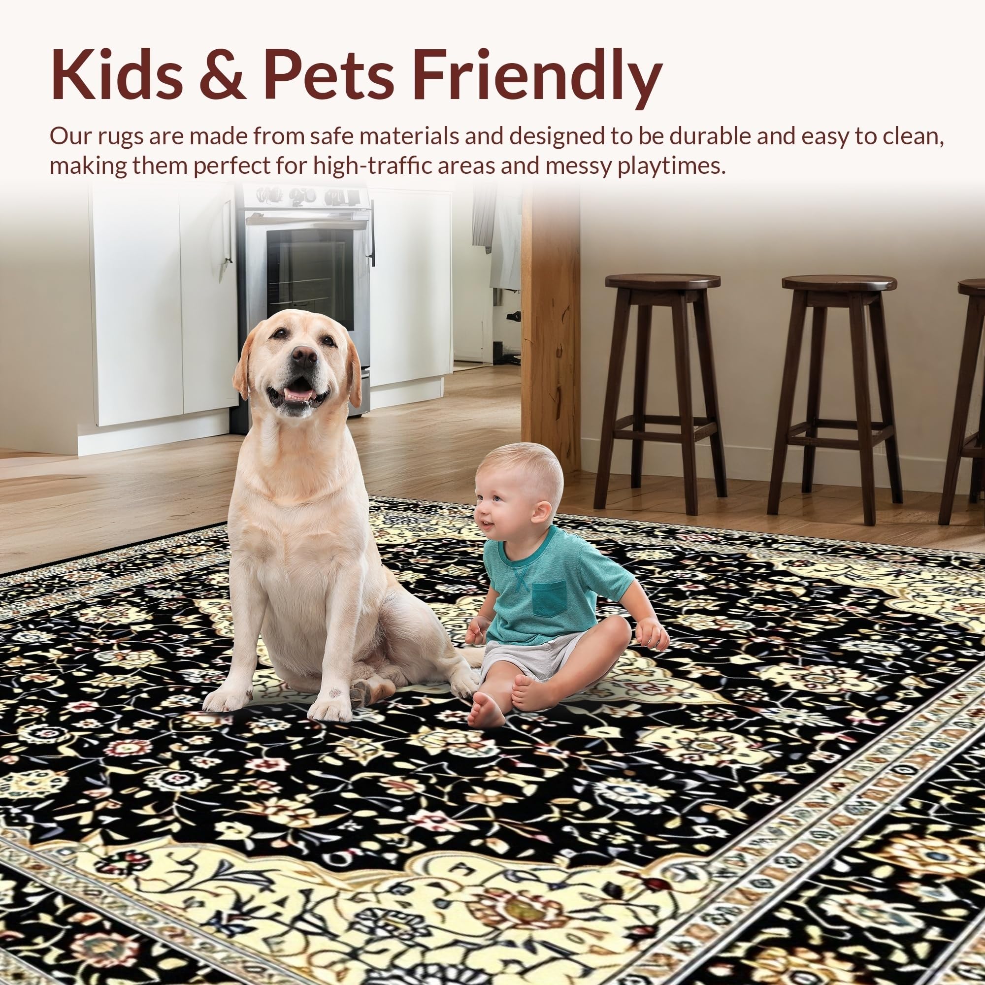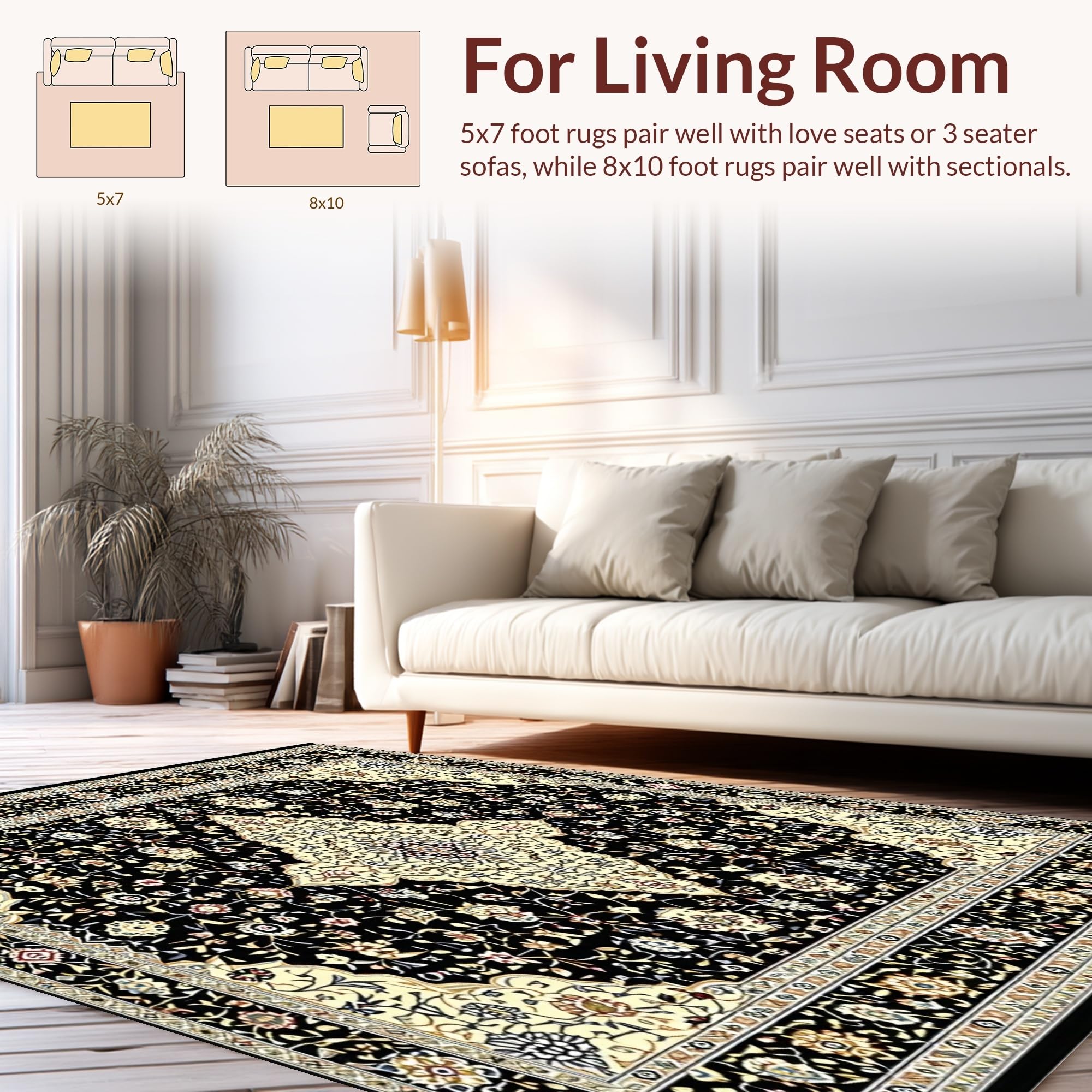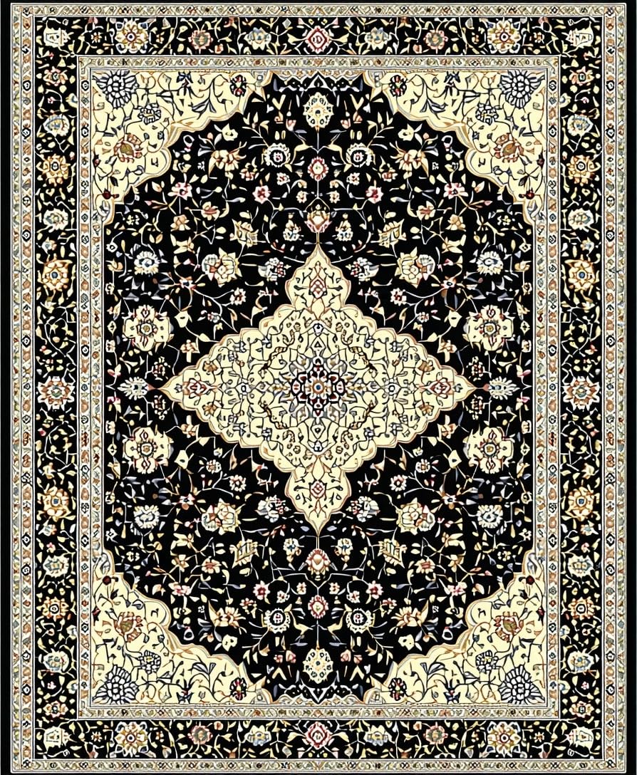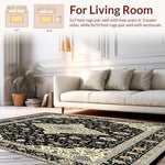 Ultra Soft Area Rug, Non Slip, Stain Resistant, Washable Area Rugs for Living Room, Bedroom, Vintage Inspired Black and Beige Area(Black) Overview: