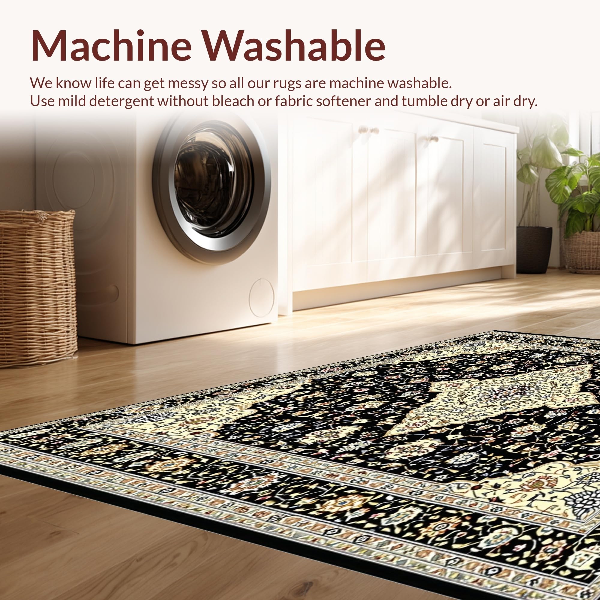- Machine Washable: Our rugs can be easily thrown in the wash machine.
