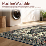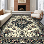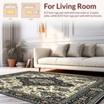 Ultra Soft Area Rug, Non Slip, Stain Resistant, Washable Area Rugs for Living Room, Bedroom, Vintage Inspired Boho Area with Ornate Black and Beige Medallion Motifs(White) Overview: