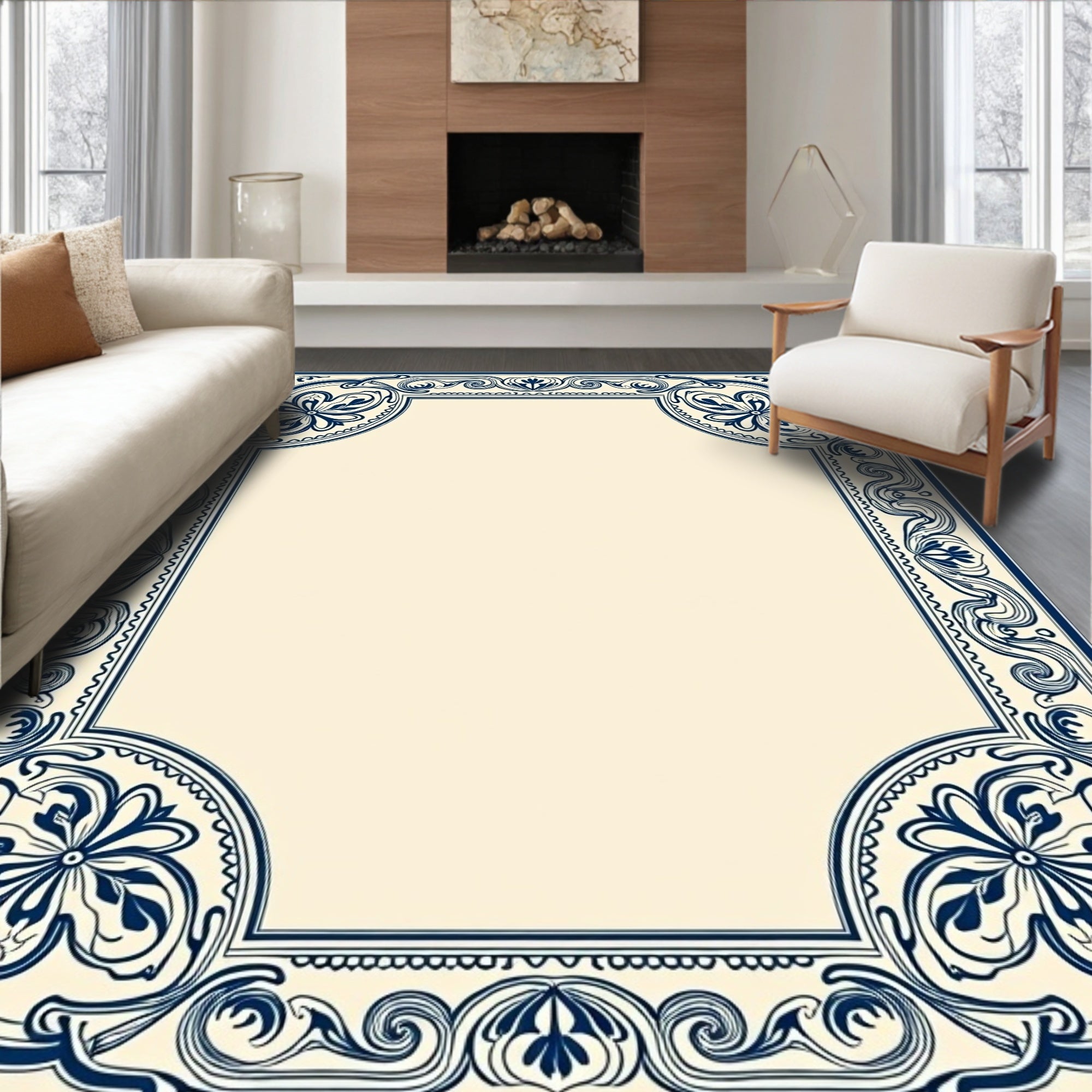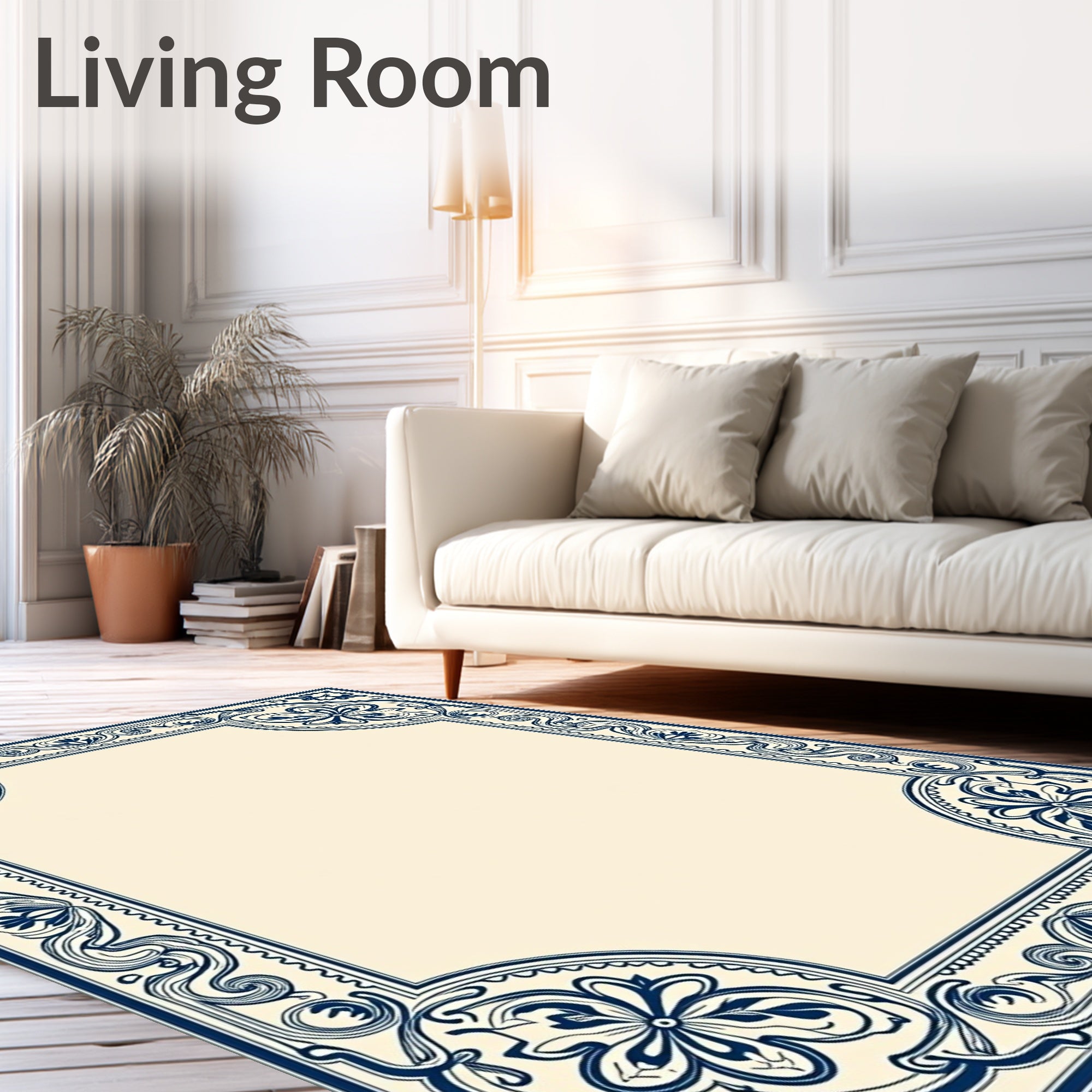 Ultra Soft Area Rug, Non Slip, Stain Resistant, Washable Area Rugs for Living Room, Bedroom, Vintage Inspired Botanical Jacquard Swirl Braided(Ivory) Overview: