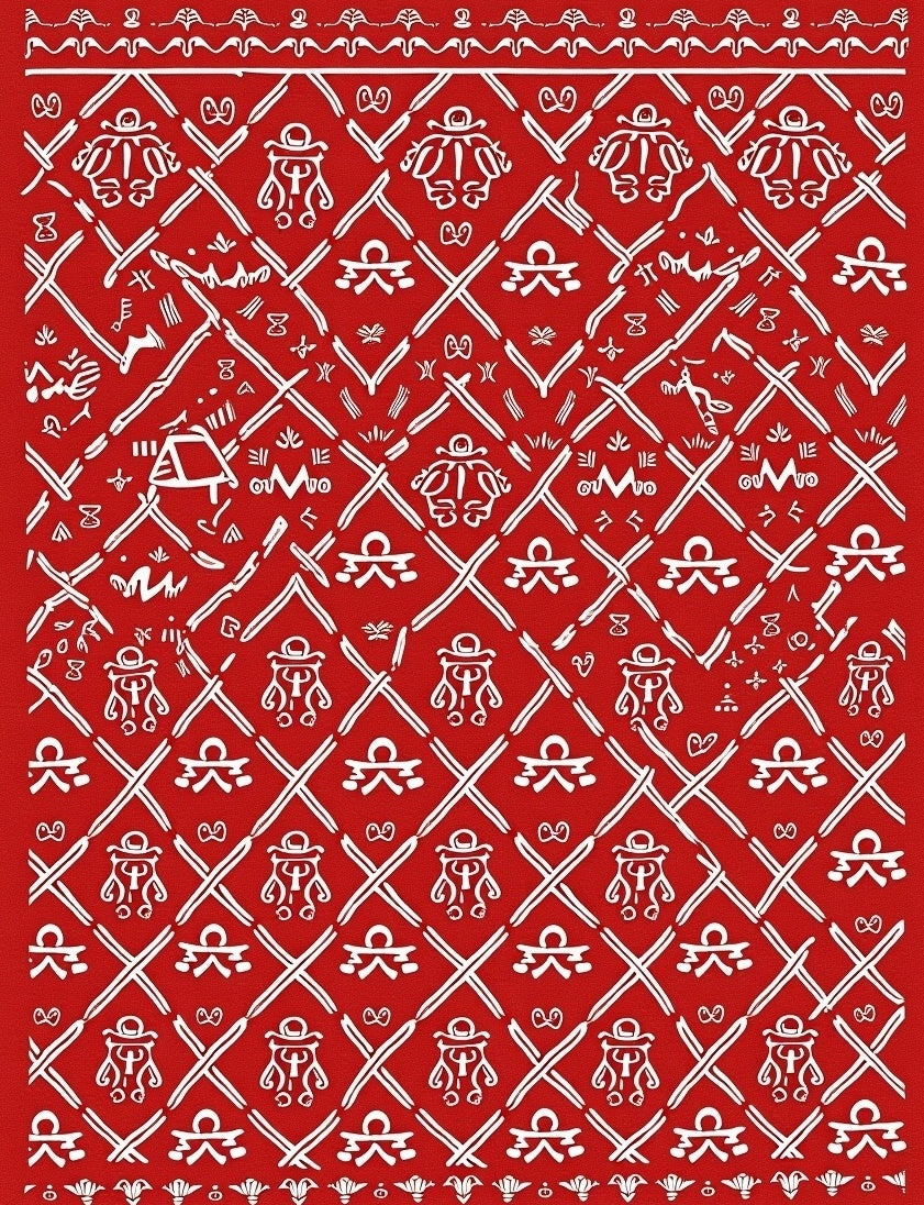 Vintage Inspired Cane Crosshatch with Gingerbread Man Accents(Red)