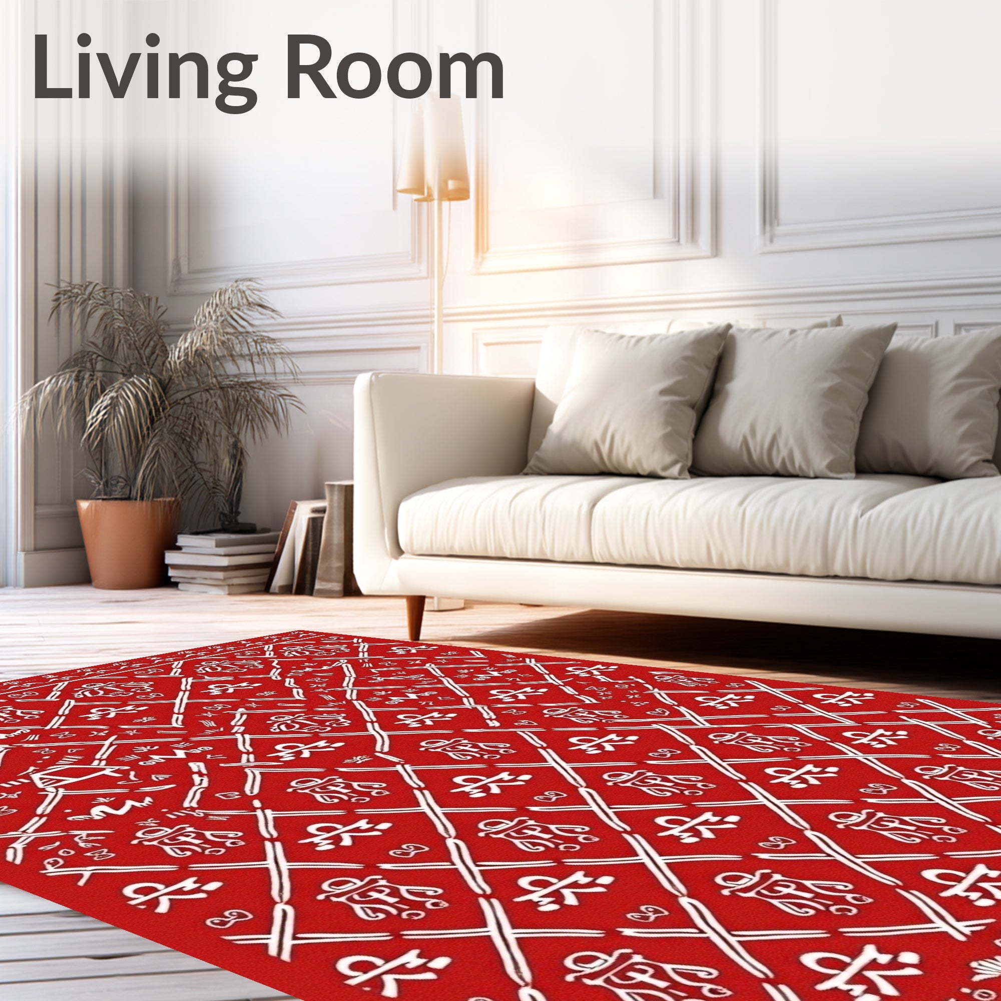 Ultra Soft Area Rug, Non Slip, Stain Resistant, Washable Area Rugs for Living Room, Bedroom, Vintage Inspired Cane Crosshatch with Gingerbread Man Accents(Red) Overview: