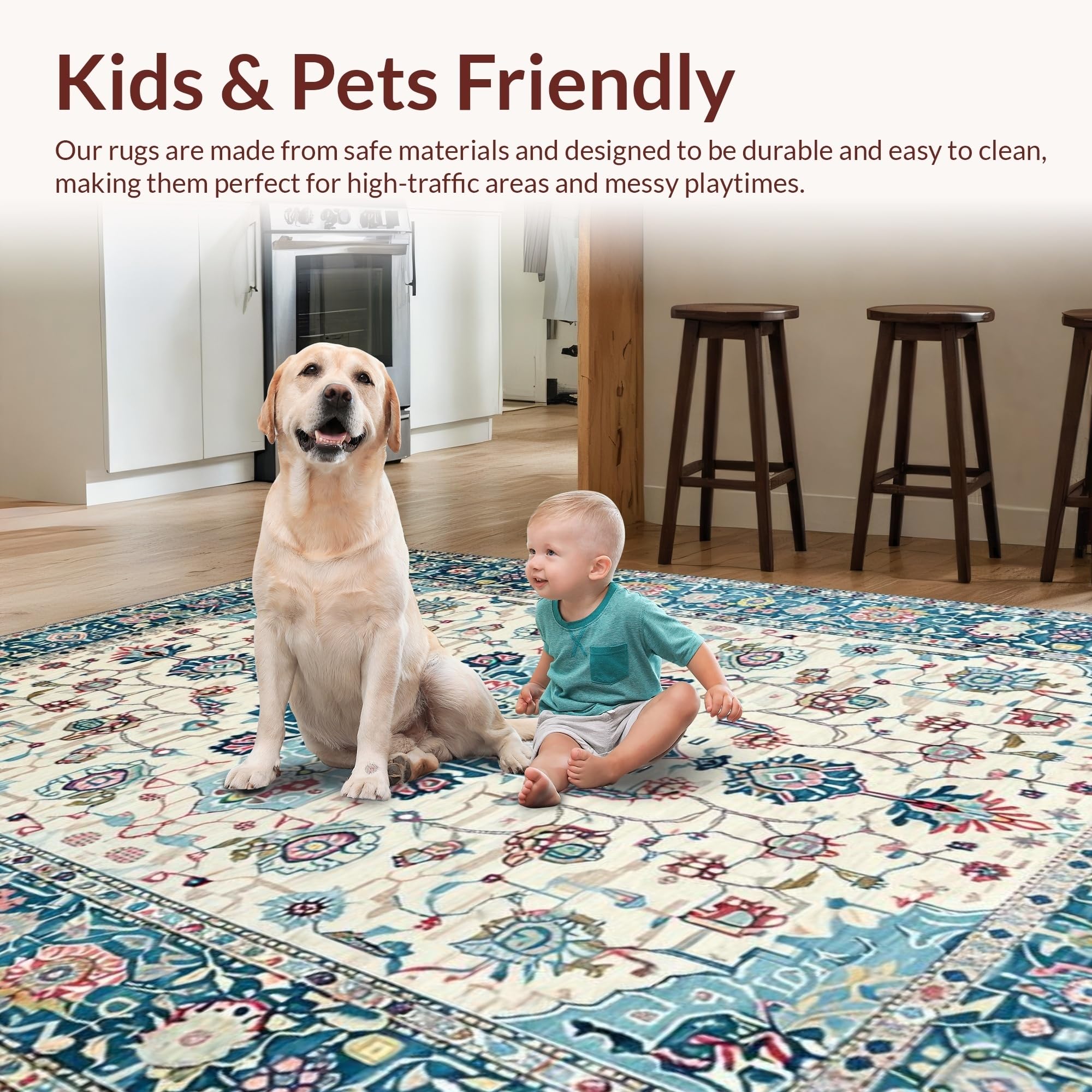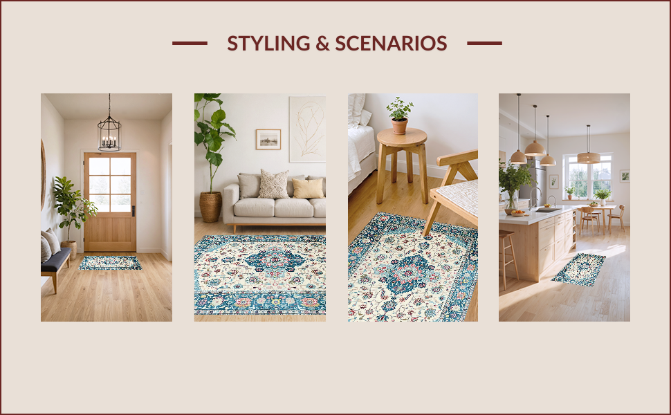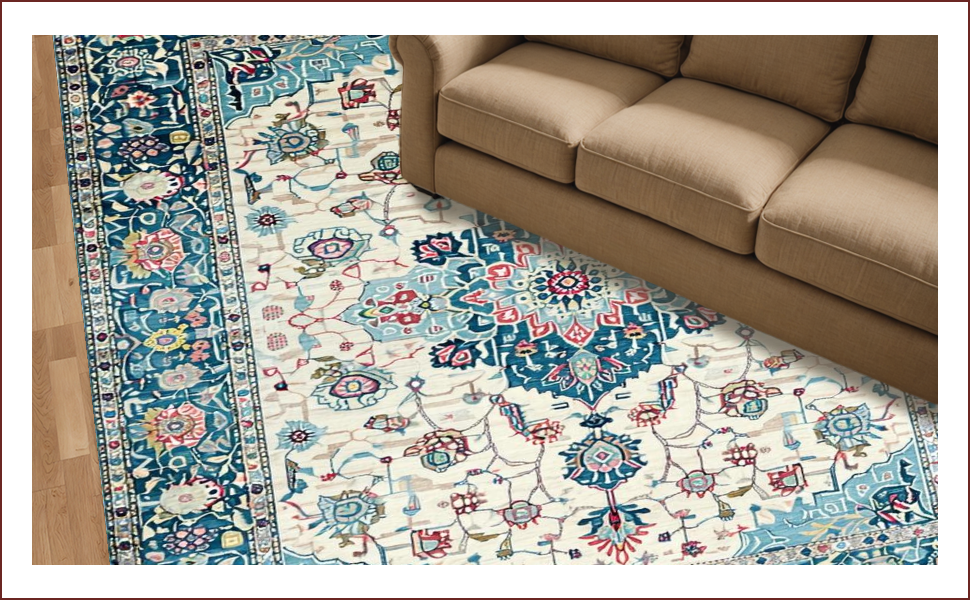 Ultra Soft Area Rug, Non Slip, Stain Resistant, Washable Area Rugs for Living Room, Bedroom, Vintage Inspired Floral Elegance(Beige) Overview:
