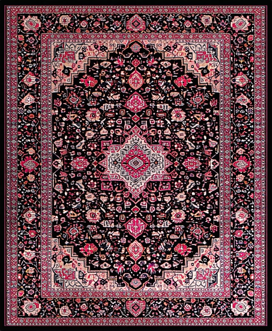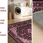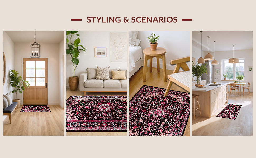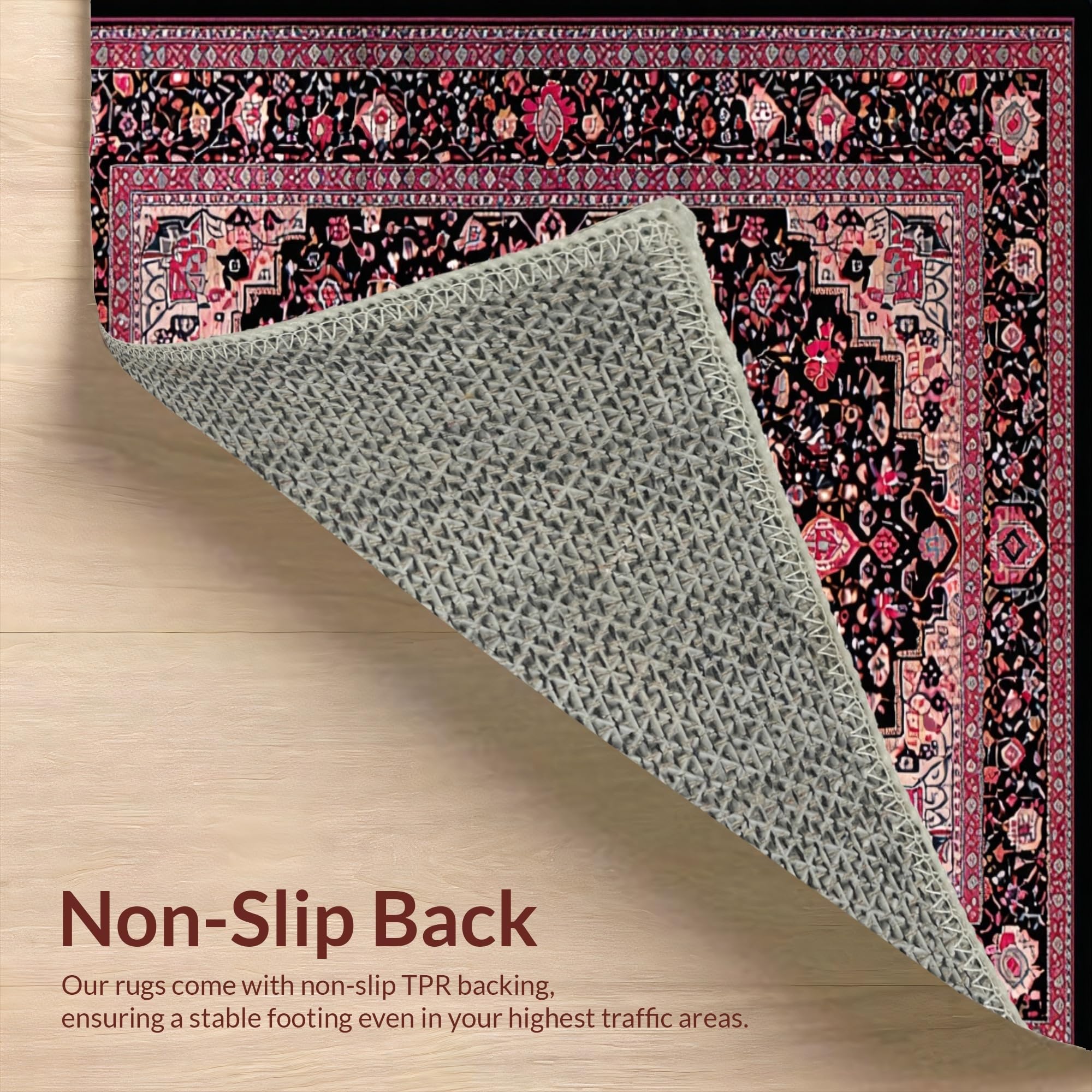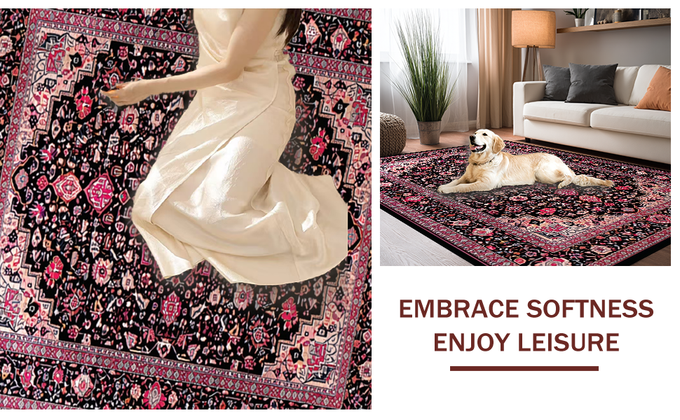 Ultra Soft Area Rug, Non Slip, Stain Resistant, Washable Area Rugs for Living Room, Bedroom, Vintage-Inspired Floral Medallion(Black) Overview: