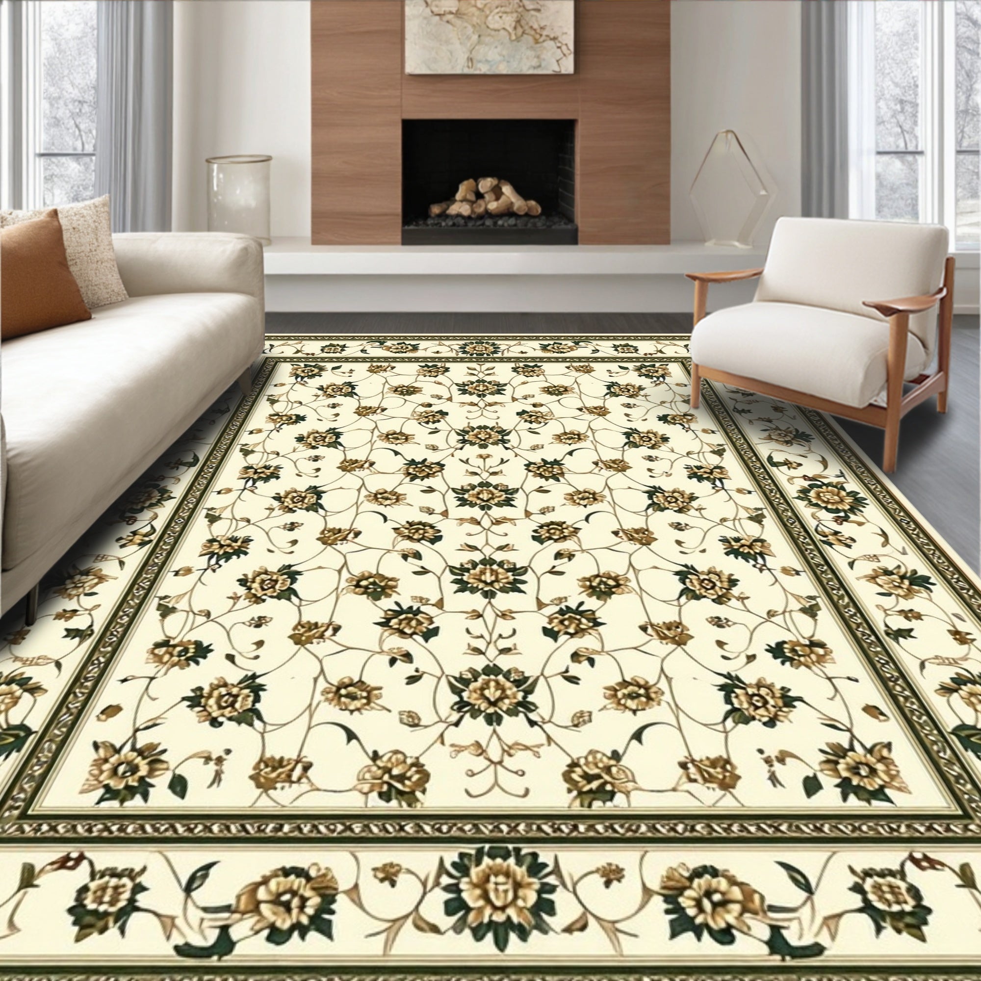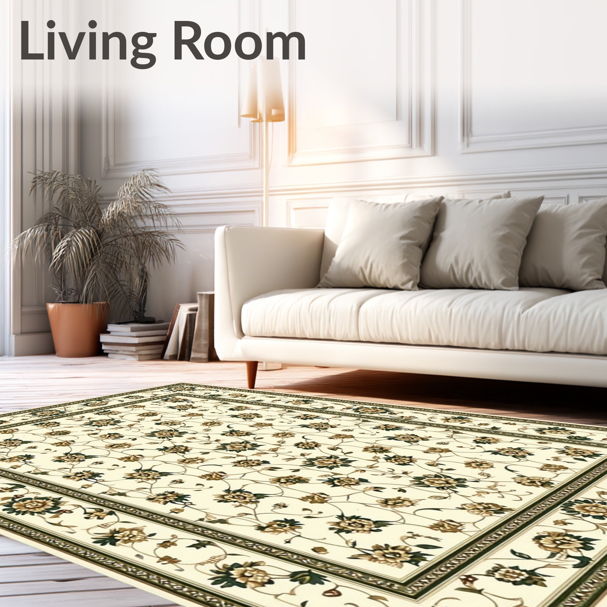 Ultra Soft Area Rug, Non Slip, Stain Resistant, Washable Area Rugs for Living Room, Bedroom, Vintage Inspired Olive Runner with Classic Ornamental(Beige) Overview: