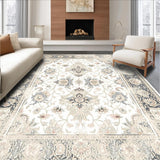 Ultra Soft Area Rug, Non Slip, Stain Resistant, Washable Area Rugs for Living Room, Bedroom, Vintage Inspired Ornate Motifs in Beige and Grey(Beige) Overview: