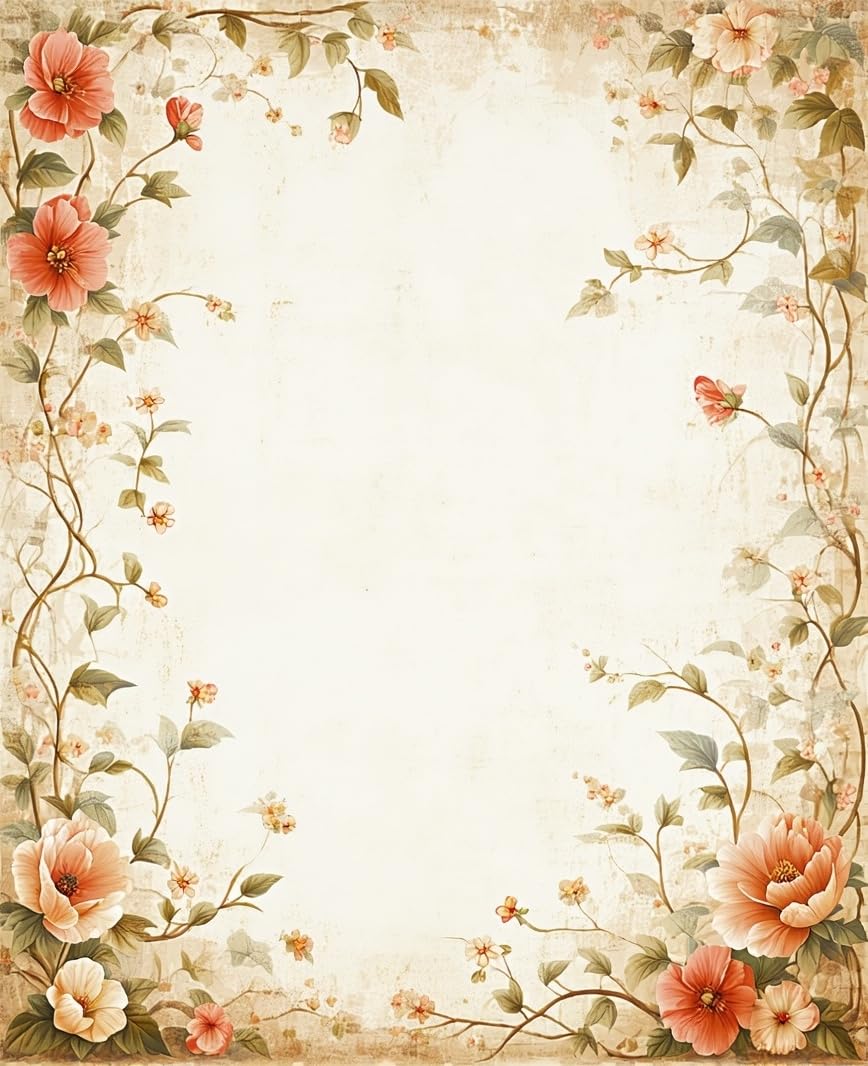 Vintage Inspired Retro Floral Boho Motifs(Beige)