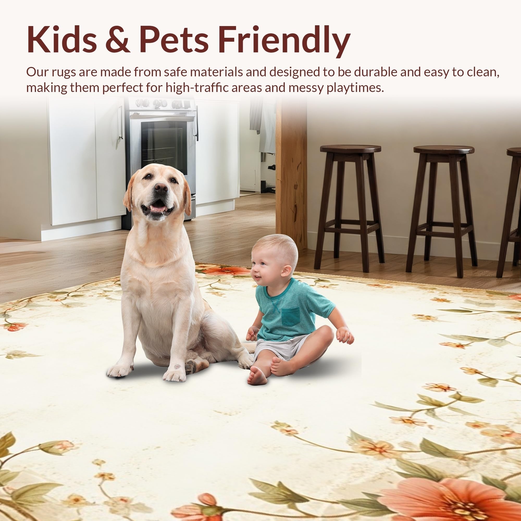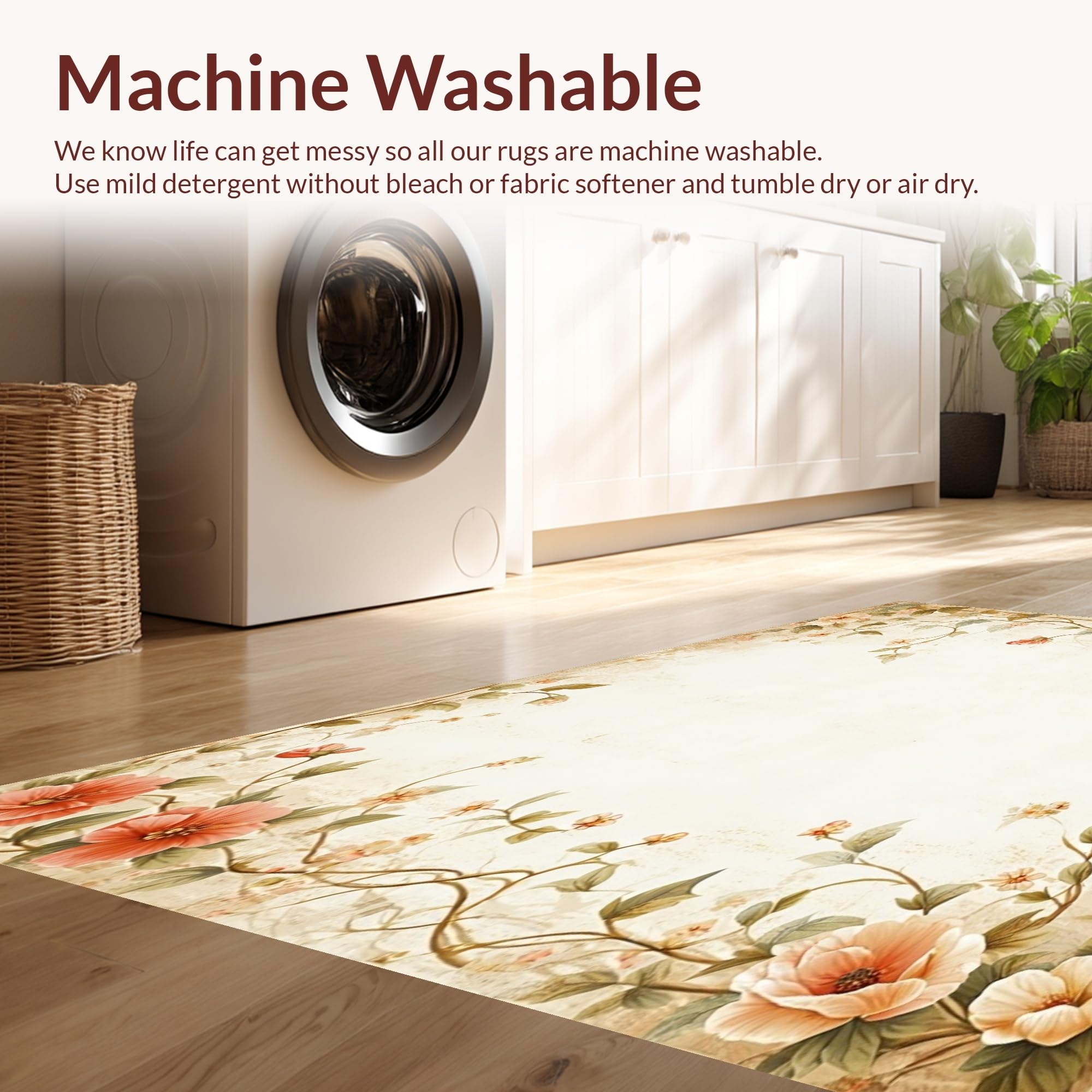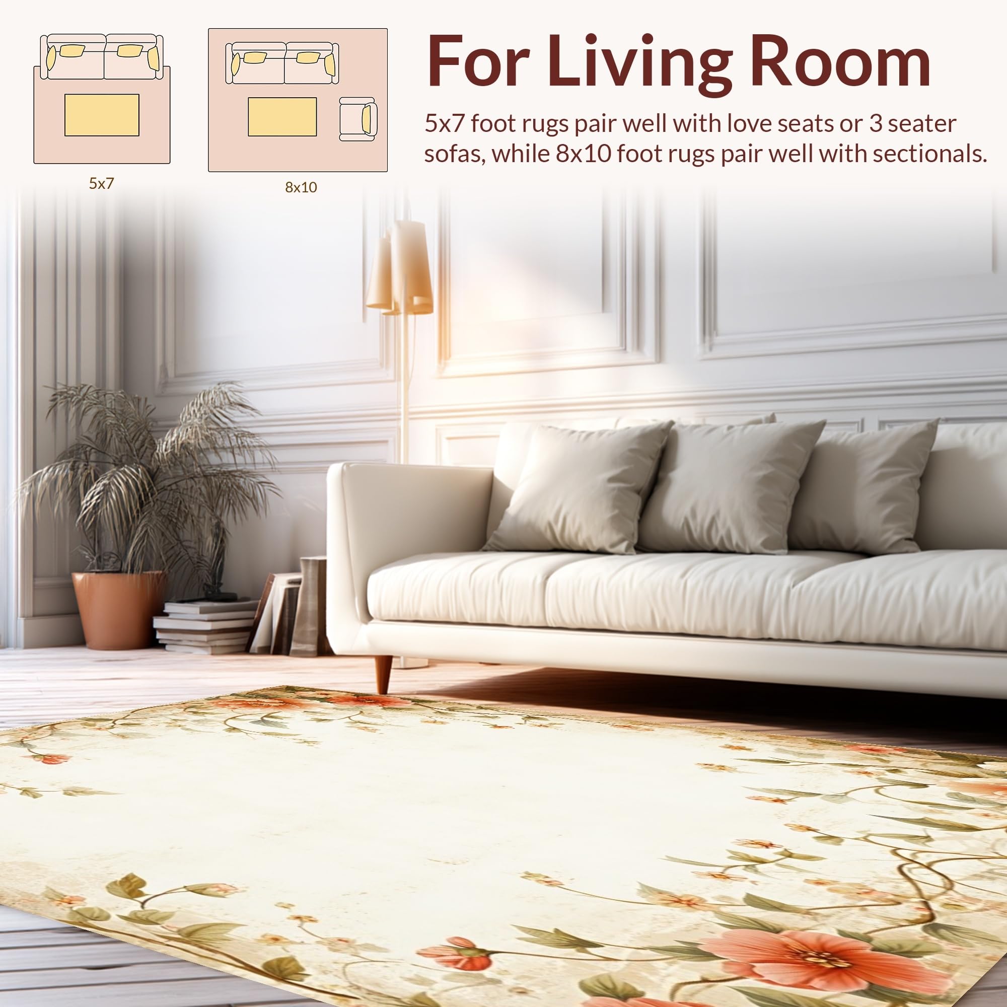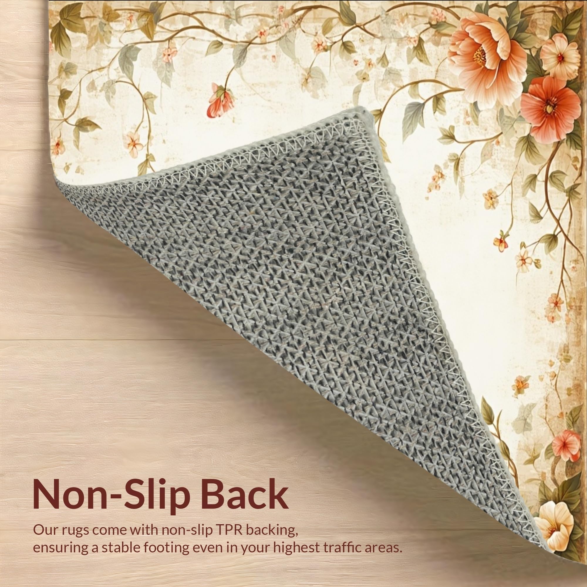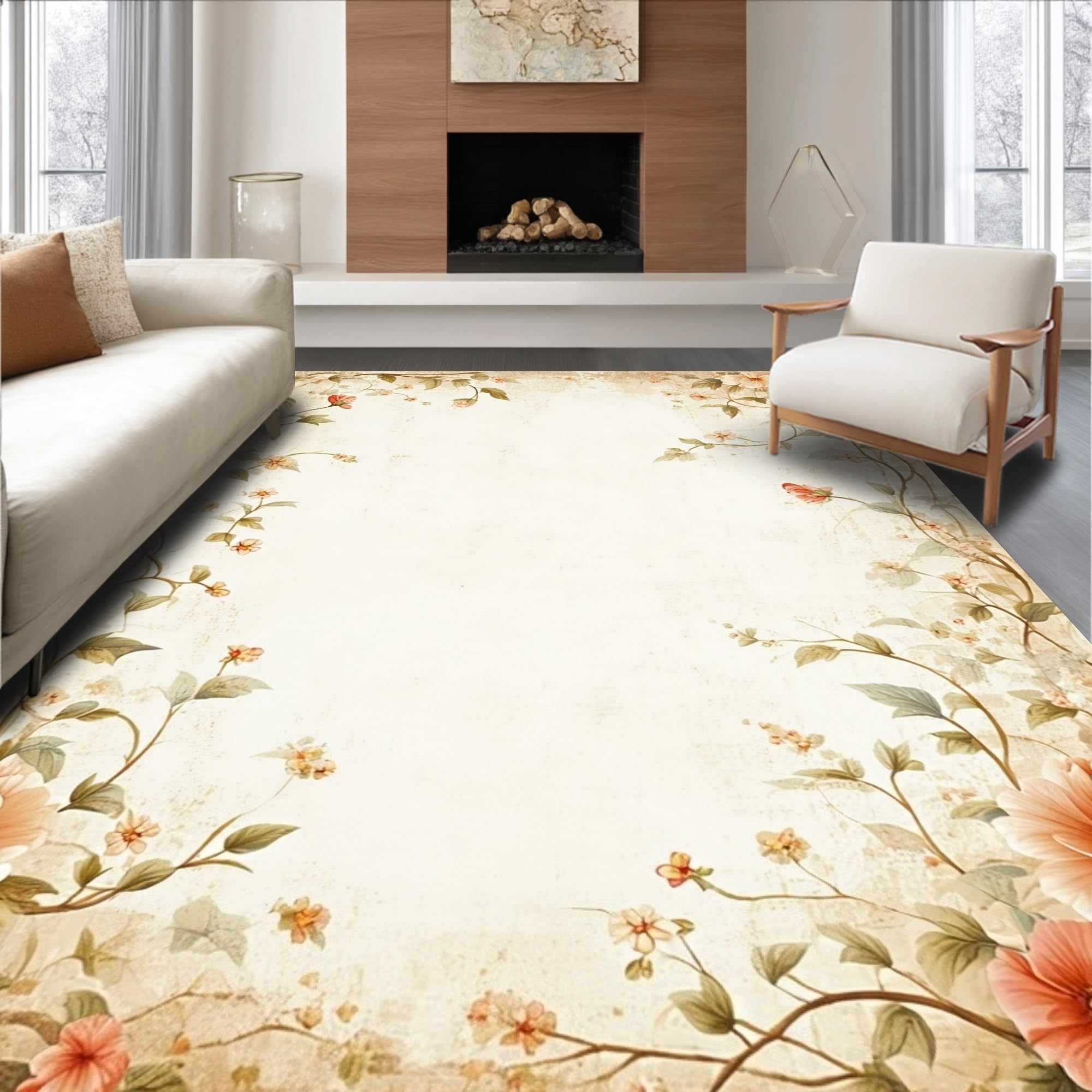 Ultra Soft Area Rug, Non Slip, Stain Resistant, Washable Area Rugs for Living Room, Bedroom, Vintage Inspired Retro Floral Boho Motifs(Beige) Overview: