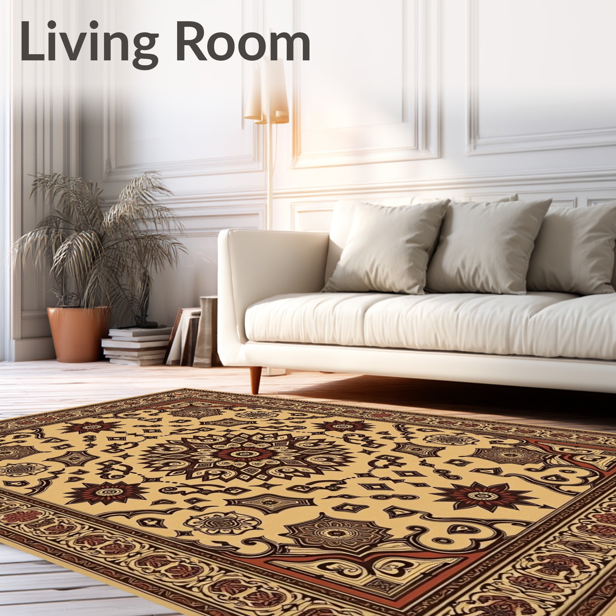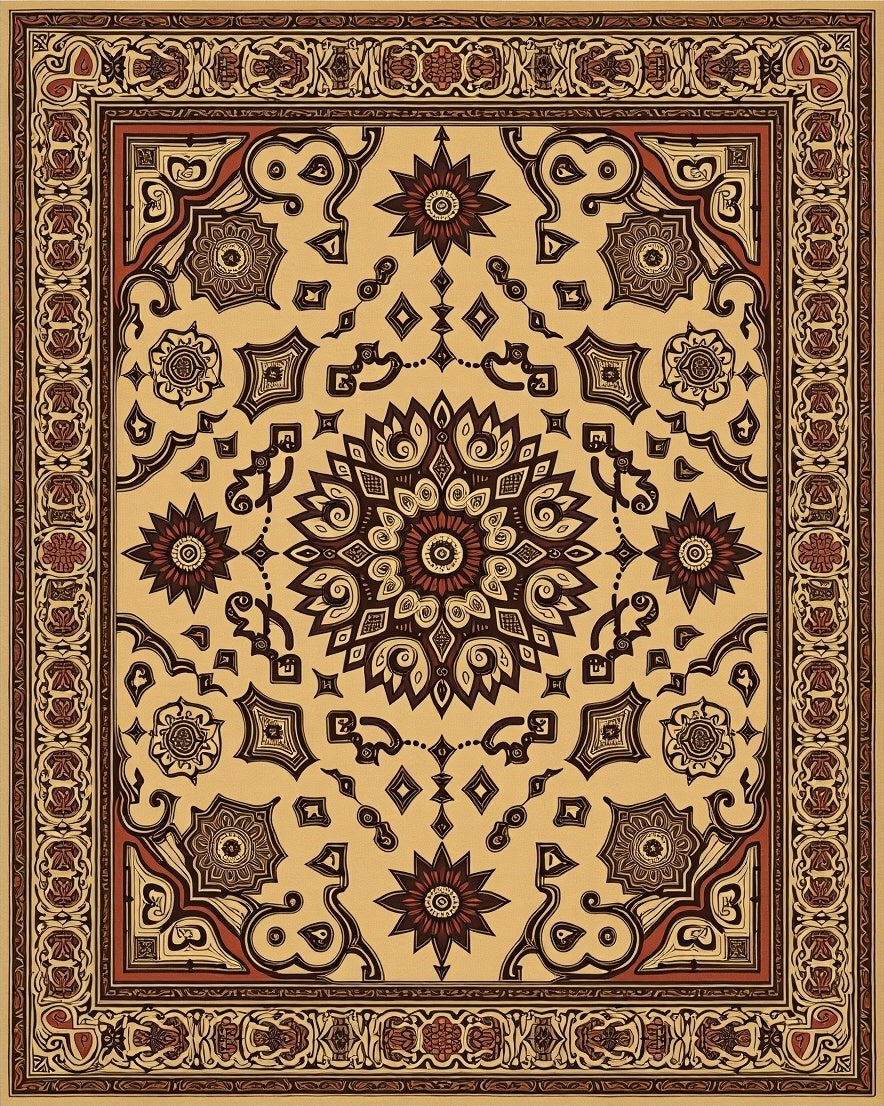 Ultra Soft Area Rug, Non Slip, Stain Resistant, Washable Area Rugs for Living Room, Bedroom, Vintage Interlocking Lattice Medallion Contemporary Boho(Beige) Overview: