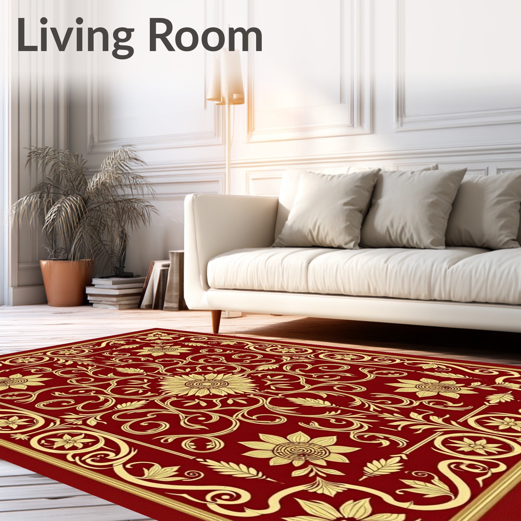 Ultra Soft Area Rug, Non Slip, Stain Resistant, Washable Area Rugs for Living Room, Bedroom, Vintage Jacobean Floral Print Exquisite Luxurious(Red) Overview: